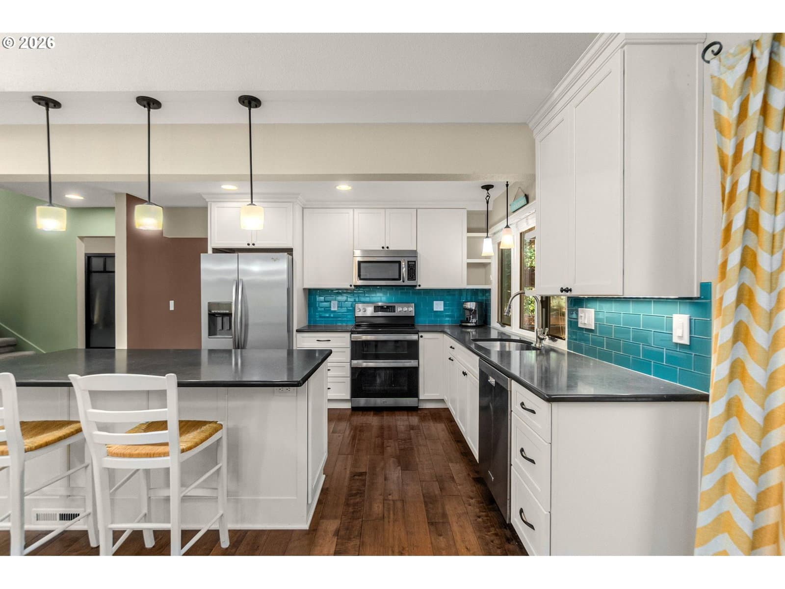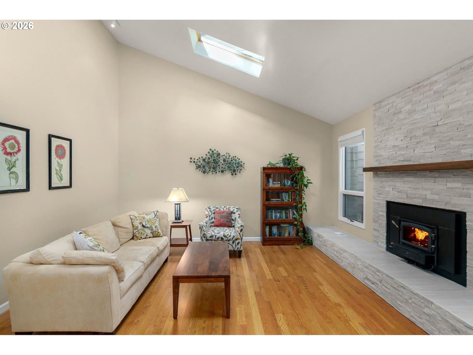 Designed with room to live, work, and gather, this contemporary Mountain Park home sits at the end of a quiet cul-de-sac and offers a flexible layout, abundant natural light, and a private setting with convenient access to Portland and downtown Lake Oswego. Cathedral ceilings elevate the main living spaces, while the main level features formal living and dining areas and a remodeled kitchen with white cabinetry, quartz counters, an island open to the casual dining space, built-ins, and a pull-out pantry, plus direct access to the backyard. All three bedrooms and two full bathrooms are located on the main level. The primary suite includes two closets, including a walk-in, and an ensuite bathroom with a jetted tub, and newer vanity. The secondary bath has updated, and updated bedroom, closet, and front doors add a clean, contemporary feel. Additional living spaces include an upper-level family room with angled windows, built-ins, and a private balcony, a dedicated office with a glass French door, and a lower-level bonus room with legal egress, storage, and built-in wine shelving. The fully fenced backyard features mature landscaping, a deck, small grassy area, and space for garden beds. Enjoy Mountain Park amenities including pools, sports courts, trails, and a recreation center, plus nearby McMurray Dog Park and scenic views from Nansen Summit Park, all within a top nationally ranked school district.