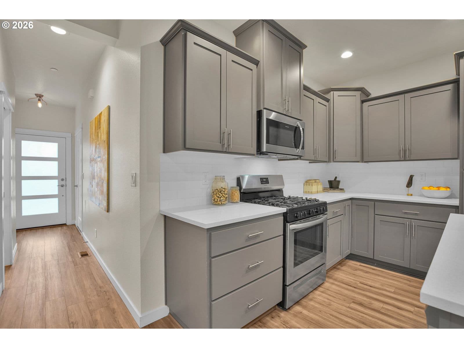 9days on marketModern, move-in-ready townhome-style condo end unit just a stone’s throw from Pacific University! Built in 2021, this well-maintained 3-bedroom, 2.5-bath home with a 1-car garage offers approximately 1,450 sq ft of comfortable living space in a prime location directly across from the neighborhood park. Step inside to an inviting main level featuring a desirable great-room layout with sophisticated LVP flooring throughout. The kitchen is a chef’s delight, complete with a large island, quartz countertops, stainless steel appliances, and a convenient pantry—thoughtfully appointed for both everyday living and entertaining. Upstairs, the spacious primary suite provides a relaxing retreat with a walk-in closet and a private bathroom featuring a walk-in shower, quartz counters with double sinks, and custom built-ins. Two additional bedrooms, a full bathroom, and convenient upstairs laundry offer flexibility for guests, a home office, or additional living needs. Enjoy outdoor living in the fenced backyard with a patio—perfect for relaxing or hosting gatherings. Ideally located near parks, trails, and the shops, restaurants, and amenities of downtown Forest Grove. Just a 20-minute drive to the Tanasbourne area for additional shopping, dining, and major employers. Don't miss this fantastic opportunity to own a newer home in a vibrant and growing community.
