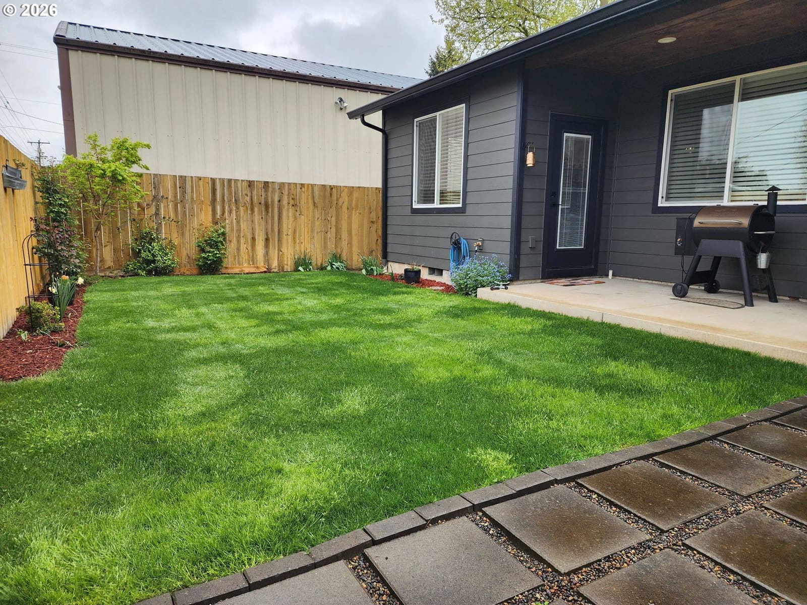 Lovely low maintenance home with all the features and no CC&Rs. Vaulted ceilings, great room with gas fireplace, Primary bedroom located away from the other two rooms and includes large walk in closet and bath. Large kitchen with eating bar, quality cabinets and all the kitchen appliances stay! Walk through the exterior door from the dining area onto the covered porch in the fenced manicured yard. Bonuses include: garden shed, gutter guards and room to garden through the gate in the back. Make this great find your own!