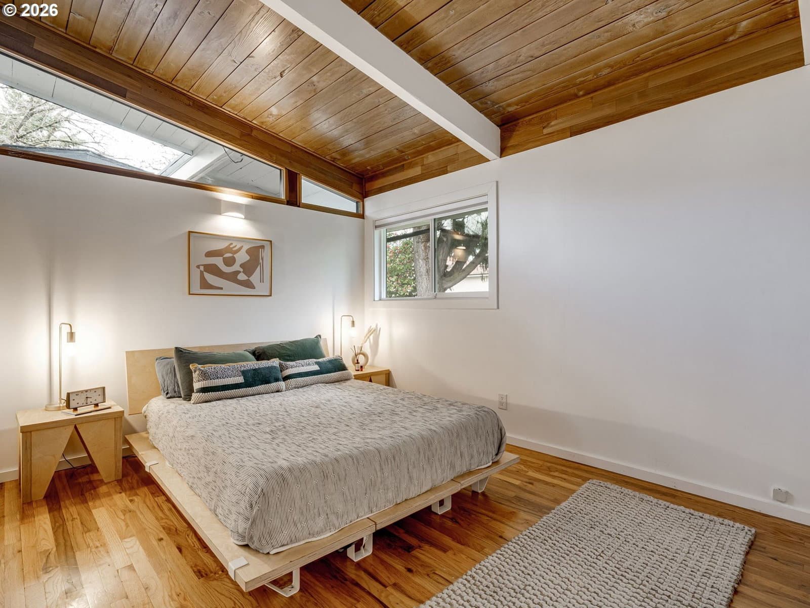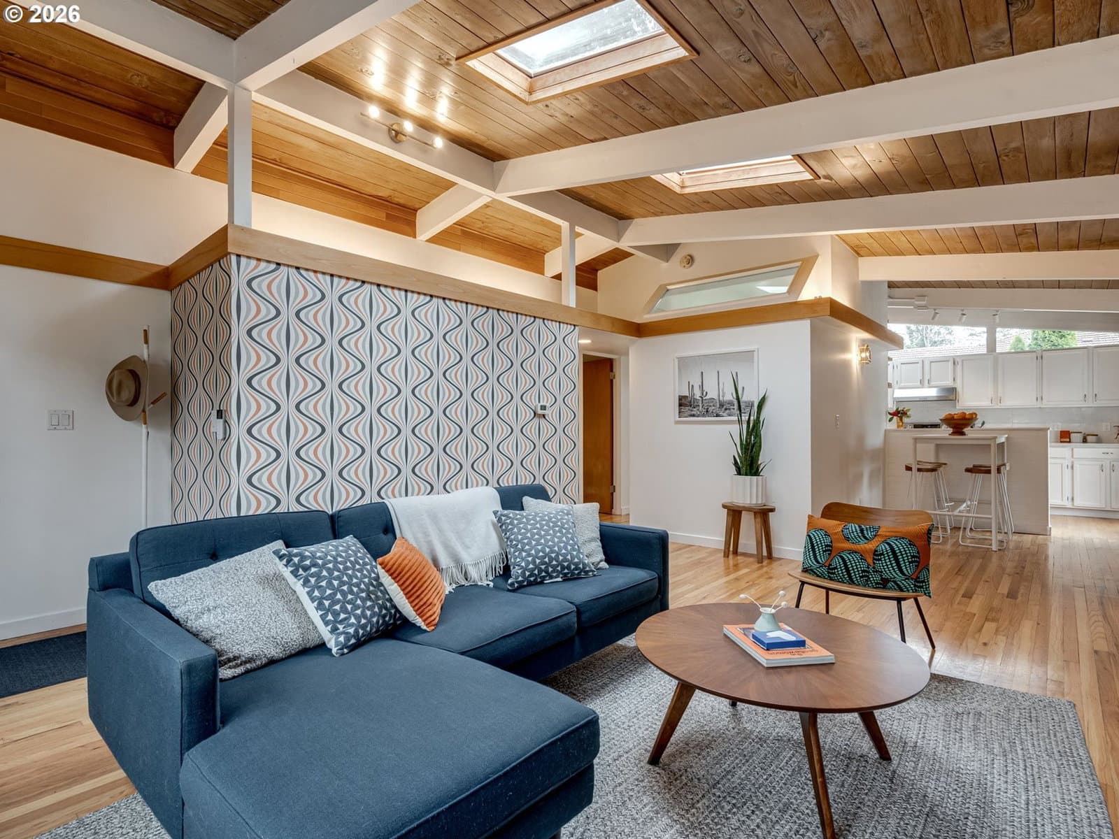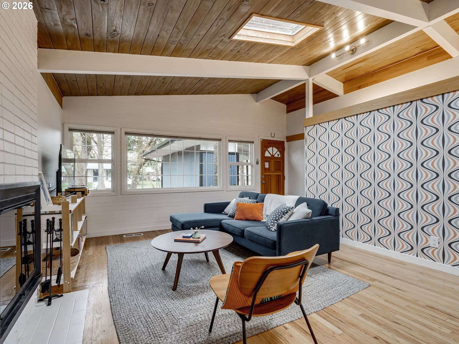 Mid-Century Modern in Hazelwood. Just down the street from Glendoveer Golf Course, this thoughtfully designed single-level home blends classic architectural charm with tasteful updates. Warm natural wood tones, tongue-and-groove ceilings with exposed beams, hardwood floors, and abundant natural light from skylights and clerestory windows create a cozy atmosphere on even the darkest PNW days. The efficient yet spacious layout includes a tastefully updated galley kitchen with modern stainless-steel finishes. Outside, the carport with a covered walkway keeps you dry on rainy days, and the oversized fenced yard offers space to relax and unwind when the sun comes out. Enjoy scenic walking and running trails along Glendoveer Golf Course or take advantage of easy highway access to Mt. Hood, the Columbia River Gorge, and everything else beautiful Oregon has to offer.