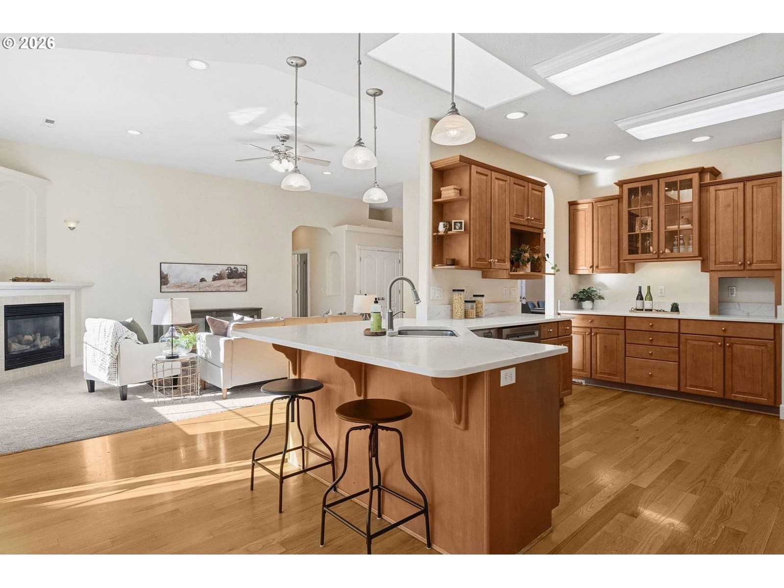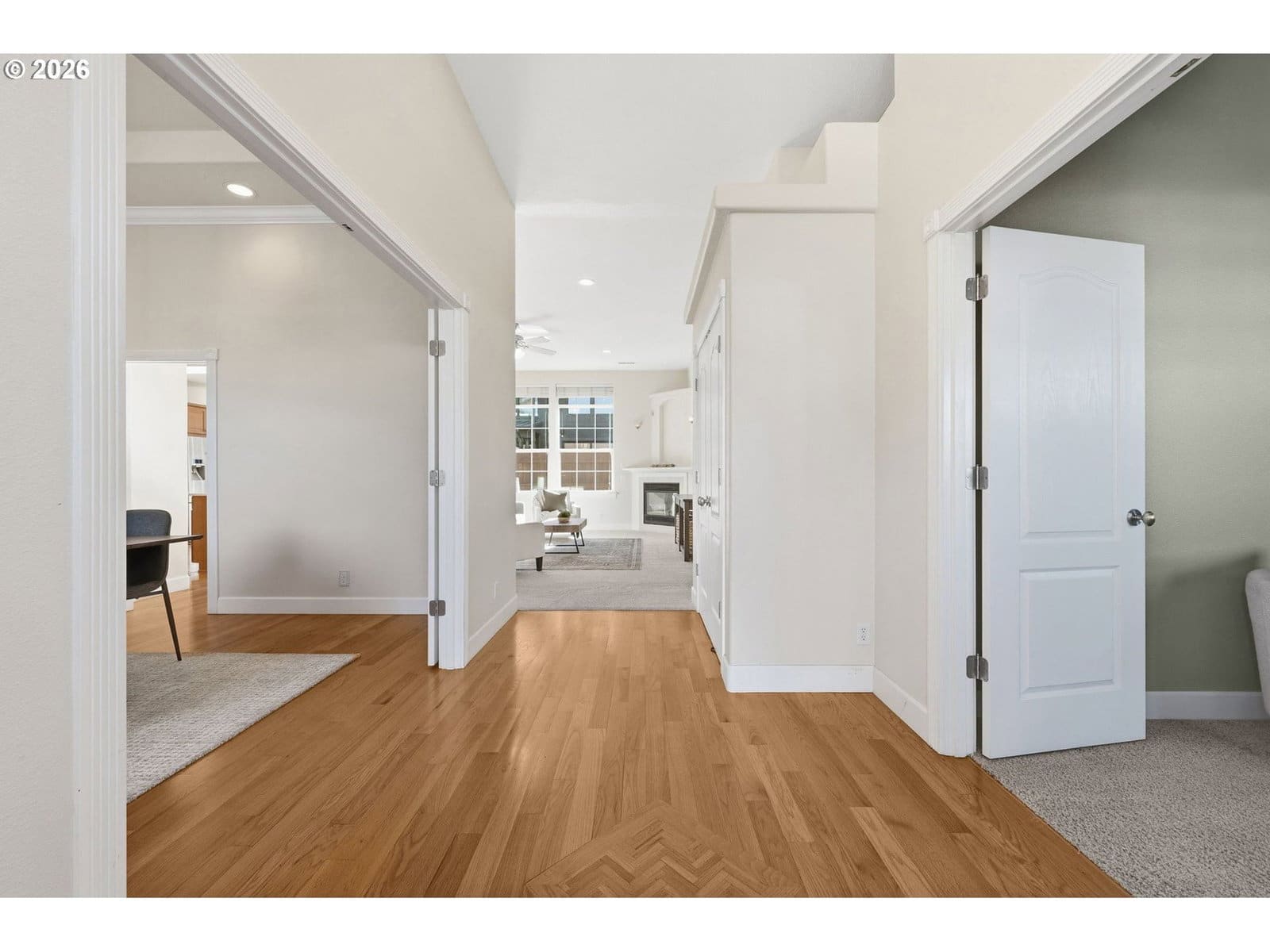 Located in the highly desirable North Gilham neighborhood within Hidden Creek Estates, this rare single-level gem offers comfort, flexibility, and convenience. Just minutes from Gilham Elementary, Cal Young Middle School, Crescent Village, Costco, shopping, and dining.Designed for easy living and entertaining, the home features both a family room and living room with a cozy fireplace, providing generous space to gather indoors and out. The kitchen is well-appointed with quartz countertops, an eat bar, gas stainless steel appliances, a pantry, and both casual and formal dining areas nearby.The spacious owner’s suite opens to the deck through French doors—perfect for enjoying peaceful mornings. The en-suite bath includes dual sinks, tiled floors, and an ADA-accessible soaking tub with a walk-in shower. Two bathrooms feature ADA Kohler walk-in showers for added accessibility and comfort. The second bedroom is accessible from the owner’s suite, ideal for a nursery or home office. The fourth bedroom offers its own exterior entrance, providing flexible living options.Step outside to a private, fenced backyard with lush lawn, a large deck with awning for year-round entertaining, and a spacious storage shed. A wide gated fence allows for convenient RV parking.A rare opportunity in one of Eugene’s most sought-after neighborhoods. OPEN HOUSE has been cancelled.