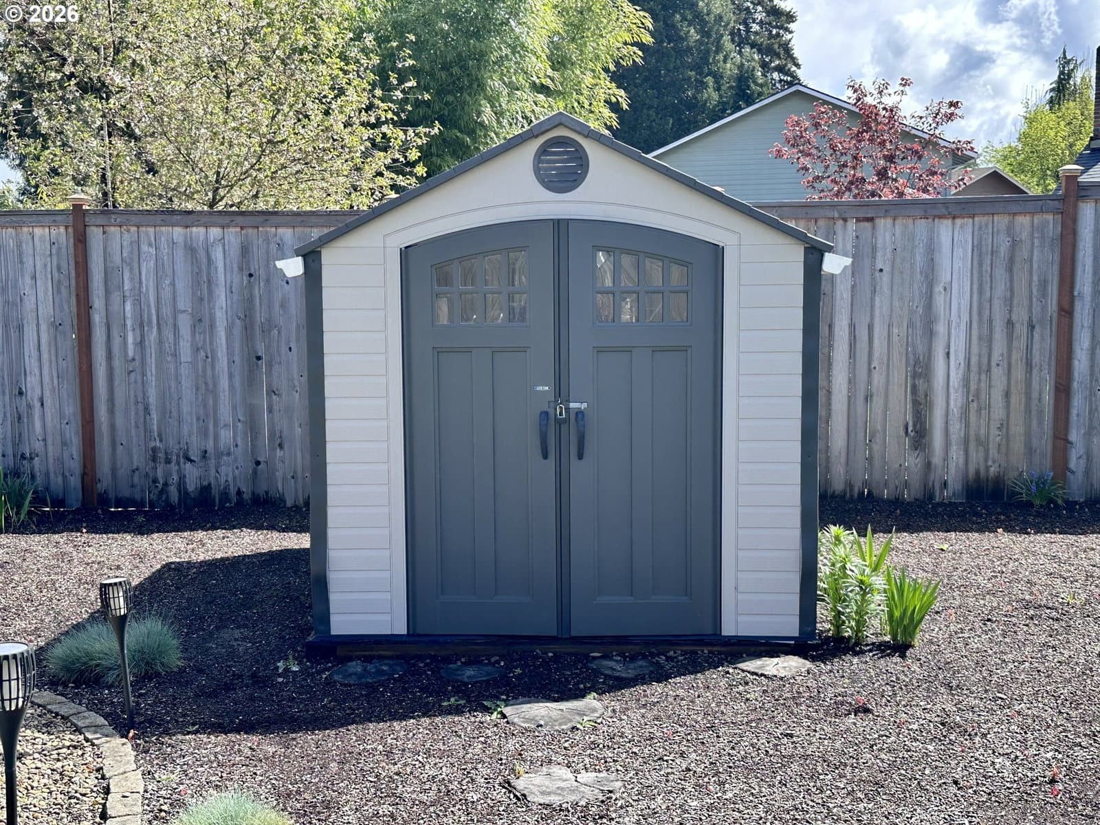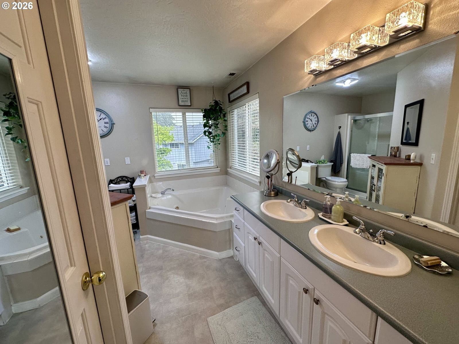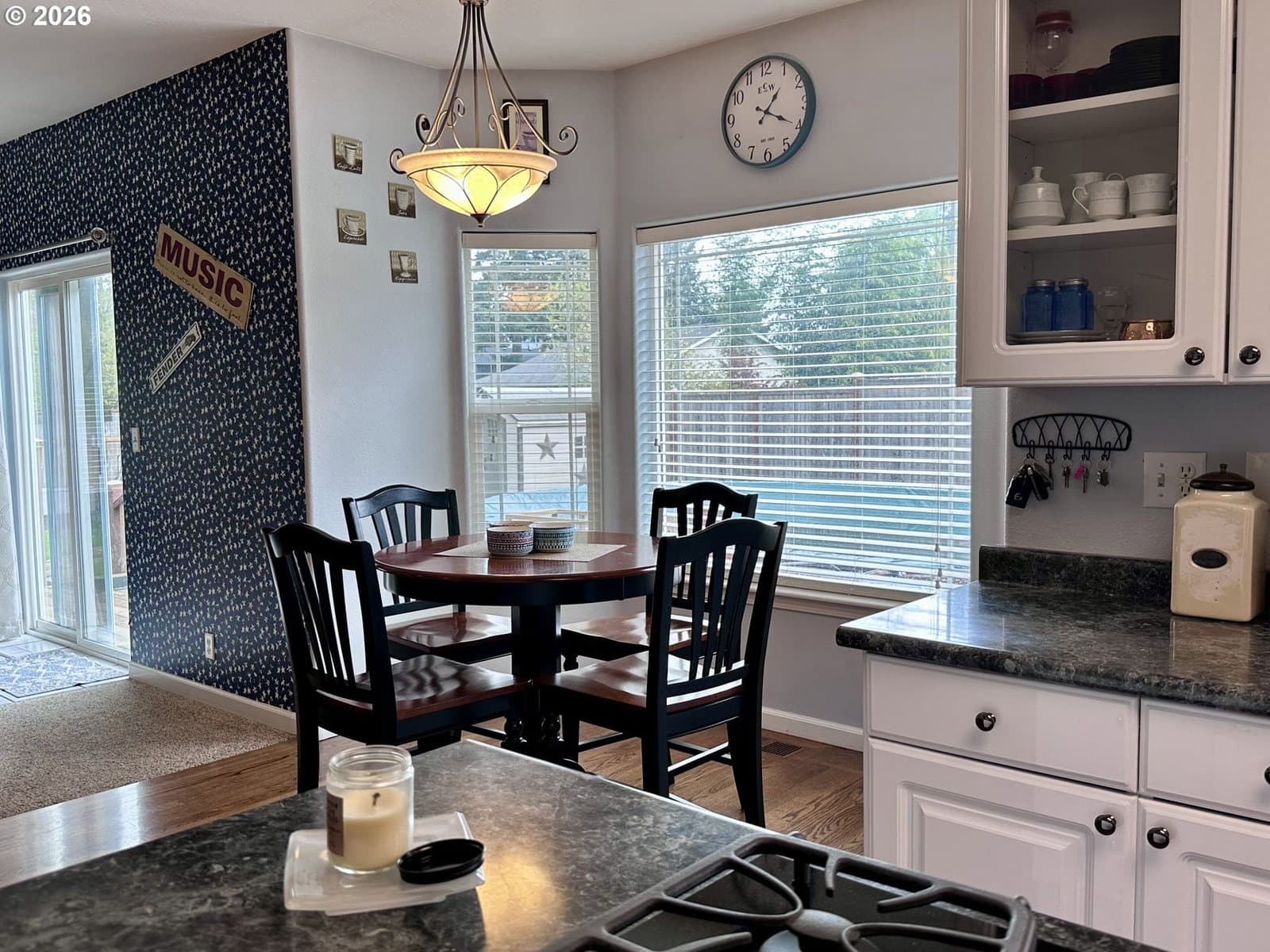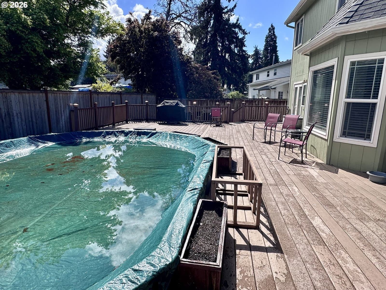 Beautifully maintained 4-bedroom, 2.5-bath custom home in the heart of Thurston. This spacious two-story residence offers over 2,200 sq ft of living space along with meaningful updates, including a new roof (2022), gas furnace and A/C (2022), and water heater (2023). The upstairs bathroom was tastefully remodeled in 2023, and all toilets have been updated. The main level features rich hardwood floors that create a warm, inviting atmosphere ideal for both everyday living and entertaining. Two gas fireplaces add comfort and character, one in the living room and another in the primary suite. A dedicated main-floor laundry room adds convenience. The kitchen is well-equipped with a gas cooktop island, built-in oven, garden window, and ample storage, offering both functionality and charm. Upstairs, the spacious primary suite serves as a true retreat with a double vanity, jetted soaking tub, separate shower, and its own fireplace. The layout offers a great balance of formal and casual living spaces, providing flexibility for a variety of lifestyles. Step outside to enjoy beautifully manicured front and back yards, a large private deck, and a gas-heated above-ground pool. Additional outdoor features include 2 storage sheds, fire pit area, and a dog kennel with direct access through a family room dog door. Situated on an oversized lot, the property also includes RV parking and an attached two-car garage with keypad entry. All of this in a quiet, desirable neighborhood.