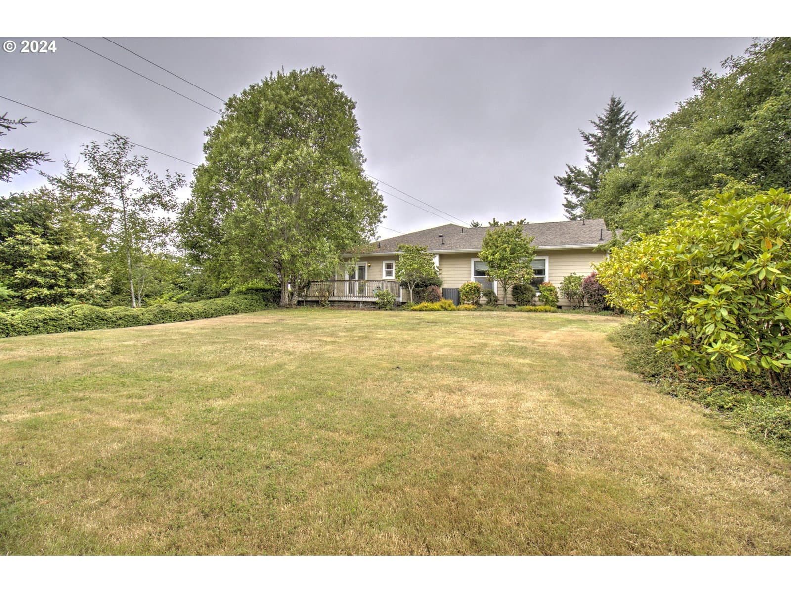 Motivated Seller! Discover the serenity of this custom one-level ranch-style home nestled on a generous 3.26 acres, featuring two separate tax lots. Located at the top of the hill and near the end of the road, this peaceful retreat offers stunning views of the Pacific Ocean and the charming town of Brookings. Enjoy year-round sunsets and remarkable vistas, all while being situated above the tsunami zone and usually above the fog line.The property boasts a beautifully maintained, level, lush yard adorned with mature shrubbery, providing plenty of space for pets and outdoor activities. The gorgeous new deck invites you to relax and soak in the breathtaking surroundings.Inside, you'll find high-end finishes throughout, including elegant wood,tile & luxury vinyl plank floors, along with granite & tile countertops throughout. The chef's kitchen is a dream come true, featuring a brand-new stainless steel double oven, perfect for entertaining, a grand island for prep and room for more than one chef to work together.With 3 spacious bedrooms and 3.25 luxurious baths, as well as an attached 2-car garage, this home is designed for comfort and convenience. Plus, the additional 1.9-acre parcel is included—an incredible bonus!Don’t miss out on this exceptional buy. Schedule your showing today!