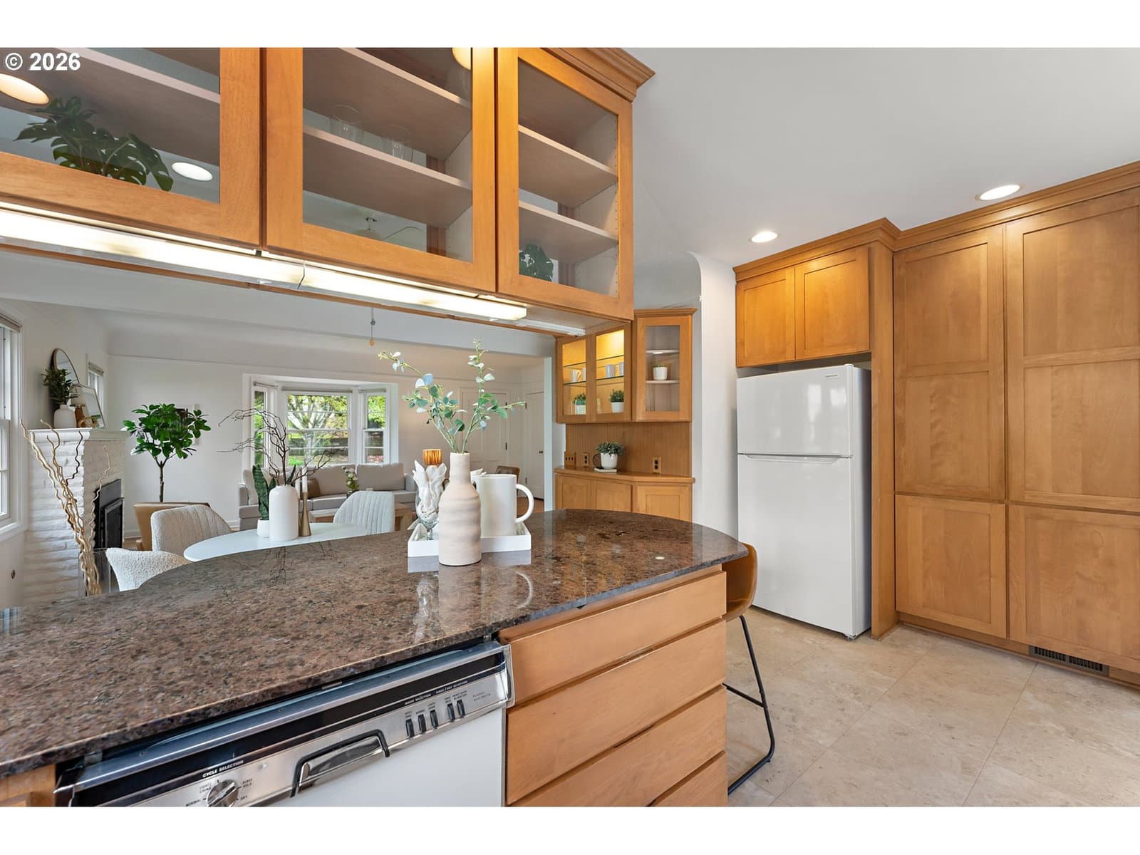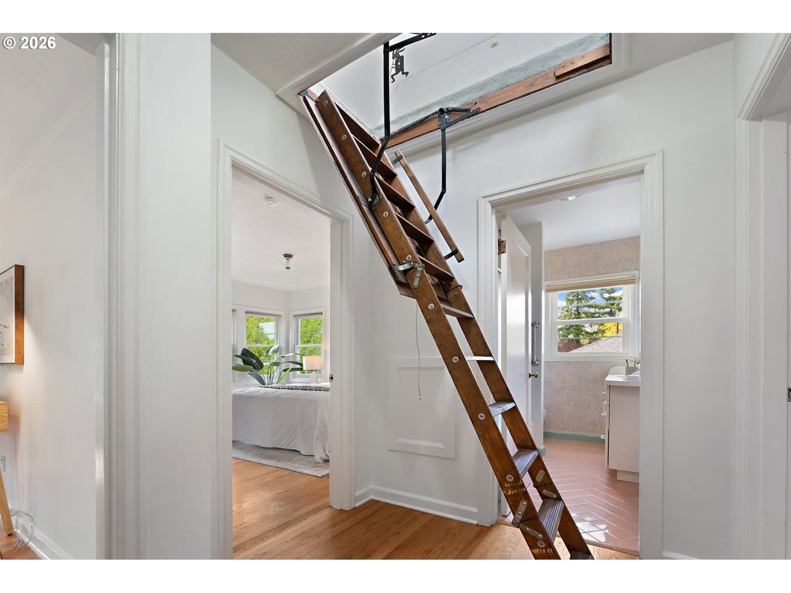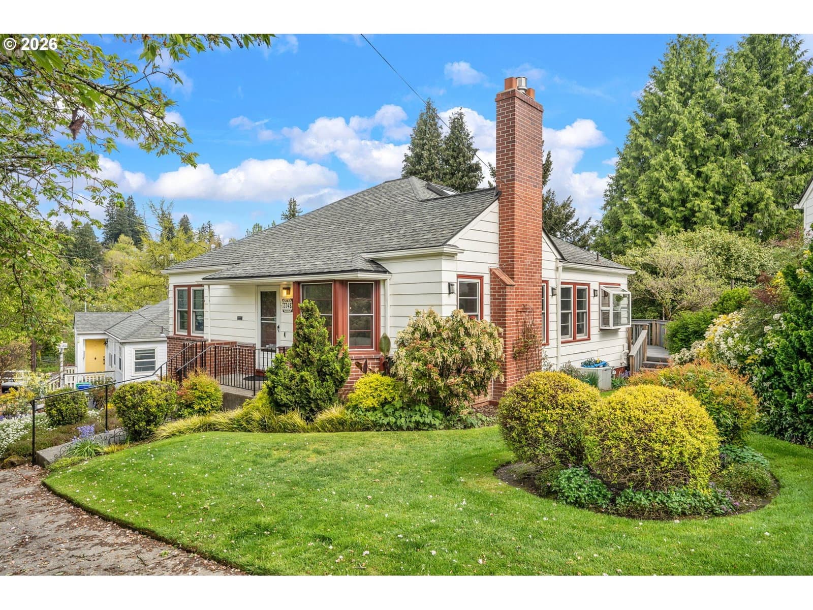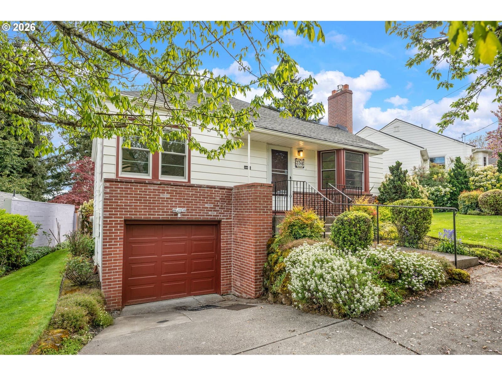 Welcome home to this 1947 classic! This house exudes the charm and simplicity of the late 1940's, with all the modern amenities you desire. The large living room features a bay window, hardwood floors and a gas fireplace. The living room flows into the dining room with a large picture window and built-in hutch. The tastefully remodeled kitchen has granite counters with eating bar, custom cabinets and lots of storage. Don't forget to pull down the attic ladder to find a very special bonus space, filled with skylights. Yoga space? Office? Two bedrooms on the main with hardwood floors. The basement is full of possibility. Tall ceilings, and second fireplace, are just begging you to finish this space. Imagine the fun you will have entertaining on the trek deck overlooking the beautiful fenced yard. Tuck under oversized garage. Air conditioning, newer waterline & sewer line, Anderson windows. All this convenient to downtown, freeways, markets, restaurants, parks and more. [Home Energy Score = 1. HES Report at https://rpt.greenbuildingregistry.com/hes/OR10246082]