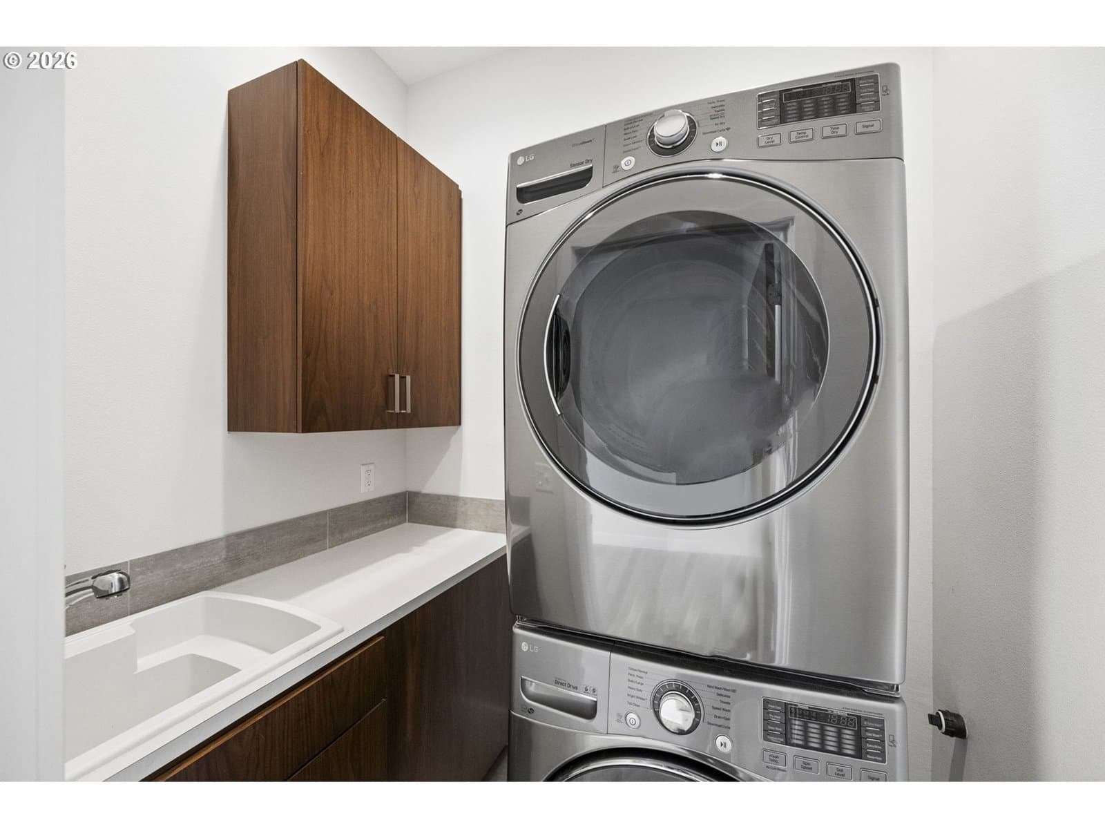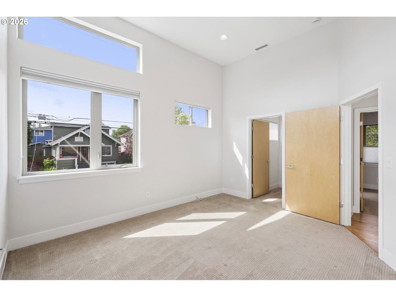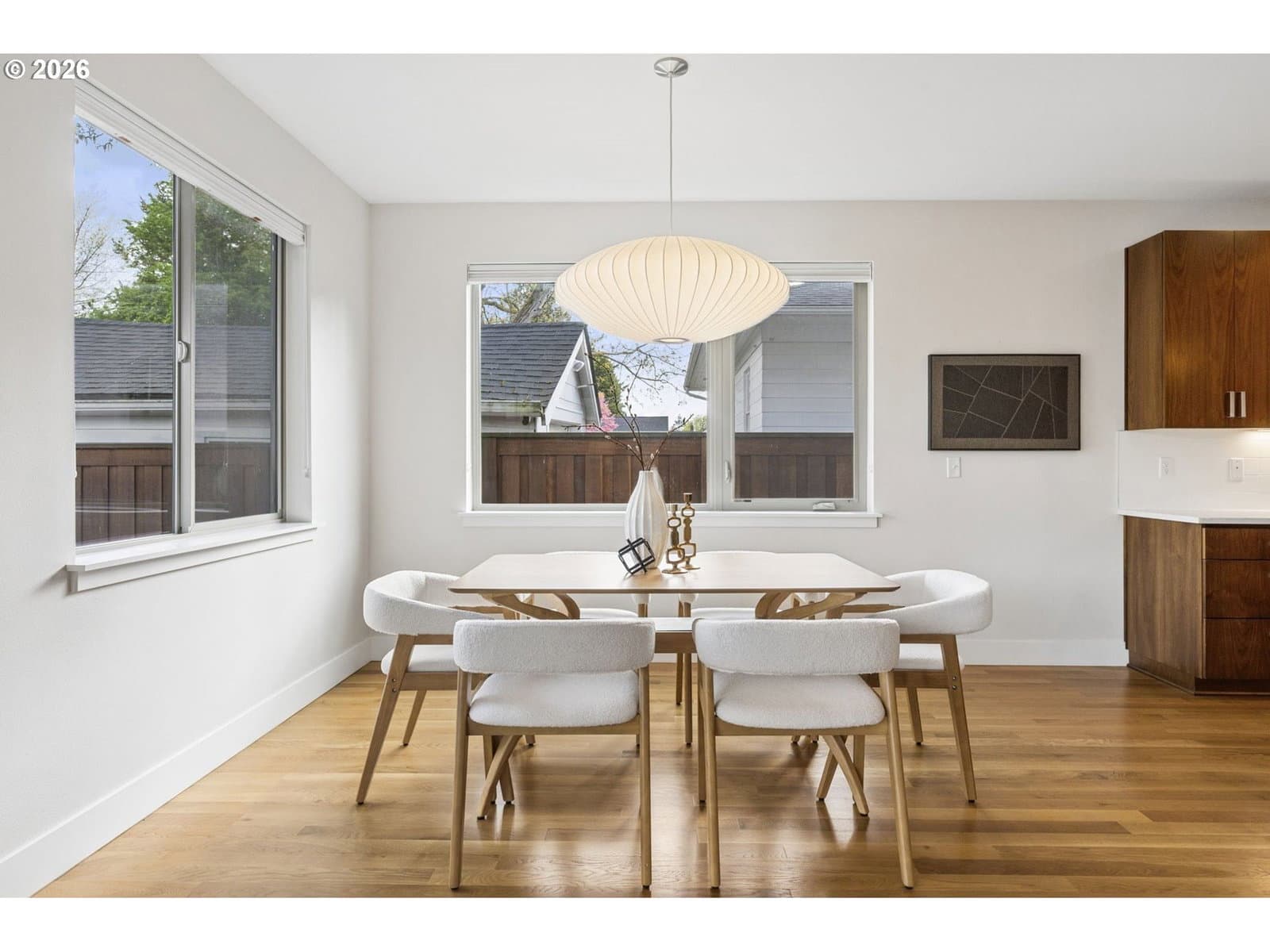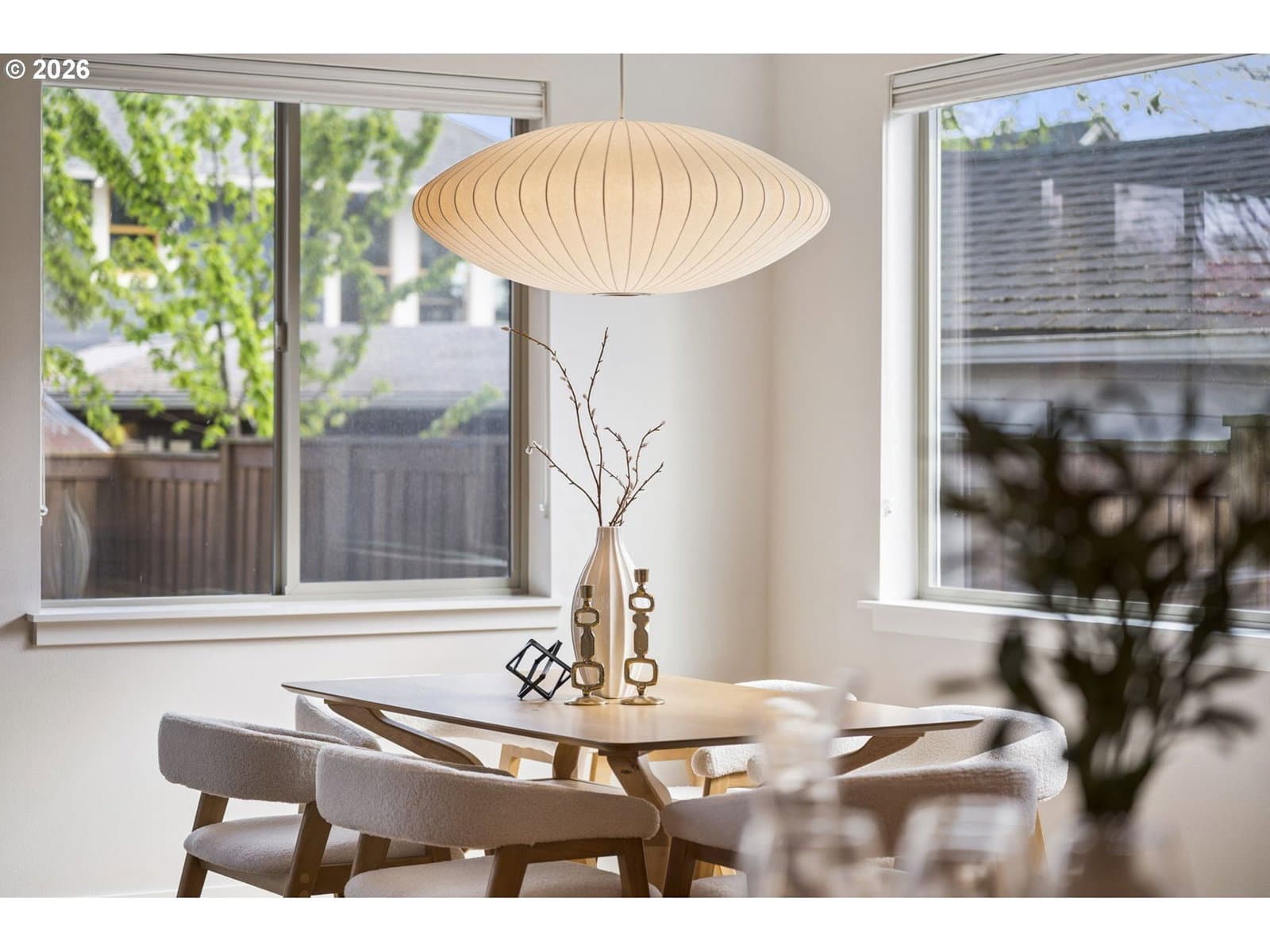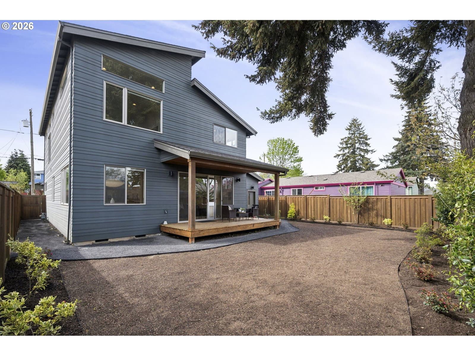 Immaculate modern masterpiece just steps from Dekum’s vibrant dining scene. This light-filled home features a spacious Great Room layout with soaring ceilings and beautifully finished hardwood floors—perfect for both everyday living and entertaining. A grand entry welcomes you with a generous foyer, private office/den, and striking staircase. The chef’s kitchen shines with rich walnut cabinetry, Caesarstone countertops, and a large island with seating—ideal for morning coffee or casual gatherings. The living room is anchored by a sleek gas fireplace, while floor-to-ceiling double doors open to a covered deck and fully fenced backyard—perfect for year-round outdoor enjoyment. Statement George Nelson pendant lighting elevates the dining area and stairwell. Upstairs, the vaulted primary suite offers a true retreat with a spa-inspired ensuite featuring a soaking tub, expansive walk-in rain shower, double vanity, and a spacious walk-in closet. Meticulously maintained and feeling like new construction, this home is complemented by a professionally landscaped yard—ready to enjoy from day one.