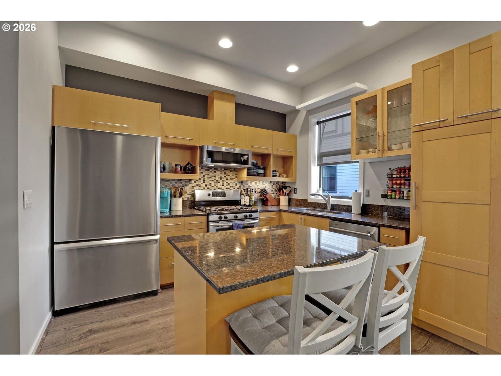 This Slabtown gem blends modern design with classic brownstone walk-up vibes in one of Portland’s newest and most vibrant neighborhoods. Inside, clean and contemporary finishes create a warm and inviting atmosphere. The open-concept main level features high ceilings, engineered wood flooring, and a gas fireplace, with seamless flow between the kitchen, dining, and living areas. Step outside to the south-facing patio—perfect for relaxing or entertaining. The entry-level den/office offers exceptional flexibility with abundant custom built-ins and a Murphy bed, making it an ideal guest space. Upstairs features Hickory hardwood flooring thru-out. The spacious primary suite includes a large walk-in closet, and the second bedroom features additional custom built-ins for impressive storage. An upper-level laundry area includes newer washer and dryer units for added convenience. A rare find in the city, the home also offers a spacious attached 2-car garage with built-ins and ample storage. Located within a secure, gated community, this home offers an unbeatable location—just steps from New Seasons Market, Besaws, G-Love, Grassa and the new Northwest Library. Across from the anticipated Slabtown Park project & just a short stroll to NW 23rd Avenue’s shopping and dining. Walk Score 98 | Bike Score 88 [Home Energy Score = 9. HES Report at https://rpt.greenbuildingregistry.com/hes/OR10243726]