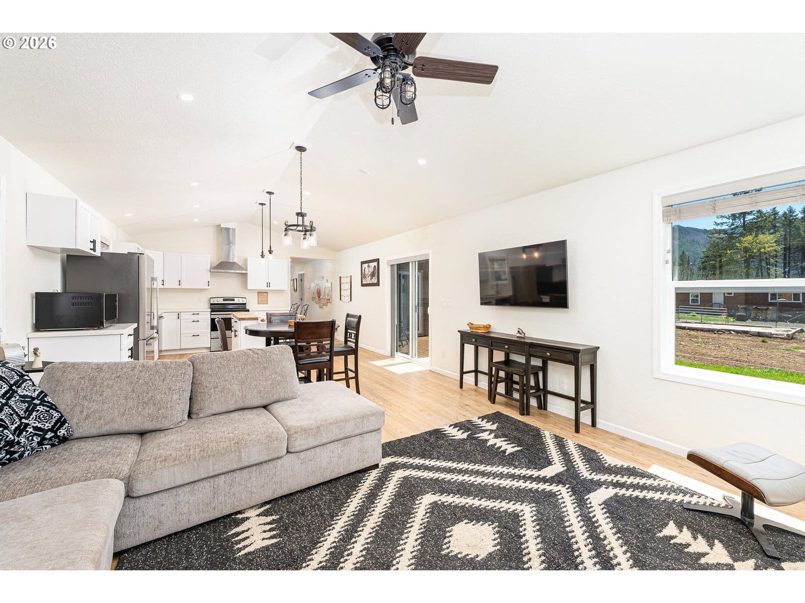 This charming home features a modern design, picturesque views of Detroit Lake and the Santiam Mountains, and a prime location near outdoor recreation and amenities. The main floor includes a spacious primary suite with a walk-in shower, double sinks, and a large walk-in closet. A convenient laundry room and a second full bathroom on this level add functionality. Upstairs, a cozy loft leads to two additional bedrooms and a third bathroom. Enjoy breathtaking views of Detroit Lake and the Santiam Mountains from the second floor, providing a serene backdrop to your everyday life. The kitchen shines with quartz countertops, a butcher-block island, and stainless steel appliances, perfect for cooking and entertaining. The adjoining great room boasts vaulted ceilings and a wood stove, creating a warm and inviting atmosphere. Step outside to the patio, ideal for gatherings and outdoor activities. This home is just 45 minutes from Hoodoo Ski Resort for winter adventures, 90 minutes from Old Town Bend for fine dining and entertainment, and an hour to Salem, Oregon’s capital, for urban amenities.