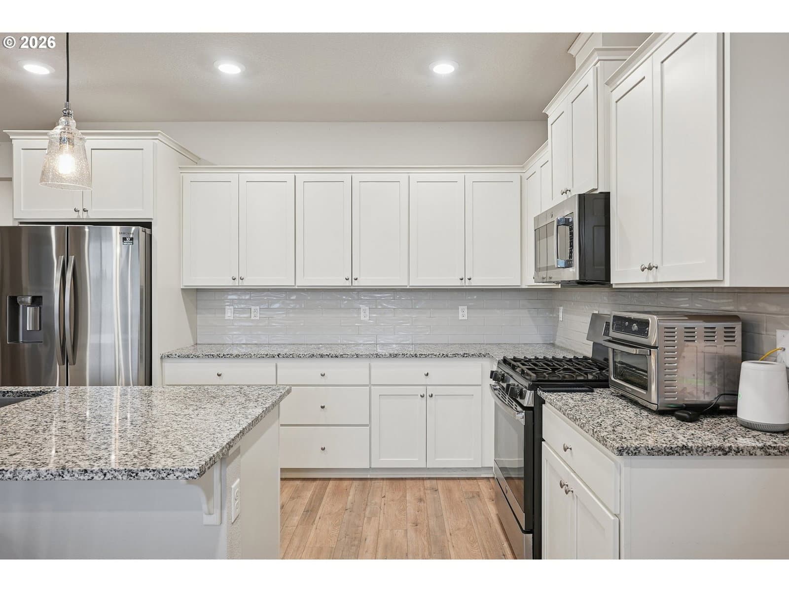 Beautiful one-level home in Ridgefield’s highly sought-after Kennedy Farm community. This move-in-ready property offers comfortable single-level living with a level driveway, thoughtful upgrades, and a bright, open layout filled with natural light. The kitchen features white cabinetry, a large granite island, stainless steel gas appliances, and seamless flow to the dining and living areas, where a cozy gas fireplace creates a warm gathering space. Laminate floors, double-pane vinyl windows, and forced-air heating with central A/C add everyday comfort and efficiency. Tankless water heater and Wi-Fi-certified features provide modern convenience.The spacious primary suite includes a spa-like bathroom with a soaking garden tub and walk-in shower. Exterior highlights include front and back landscaping, sprinkler system, deck, fenced backyard, and window blinds already in place—truly ready for you to move right in.Located in one of Ridgefield’s most popular neighborhoods- schedule a tour today!