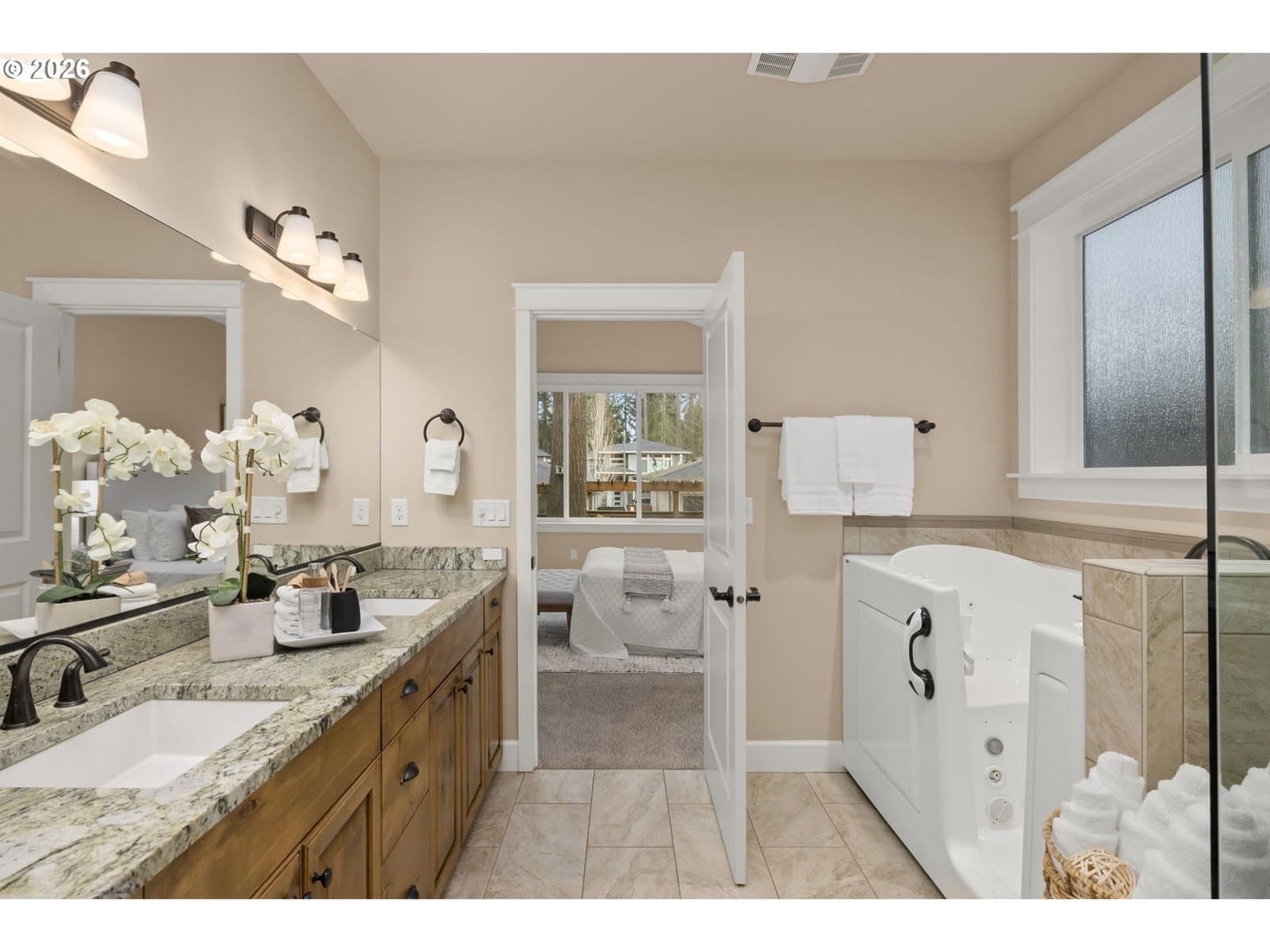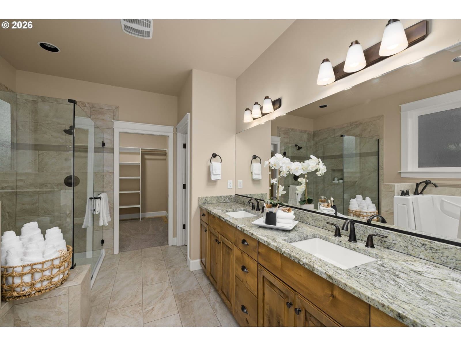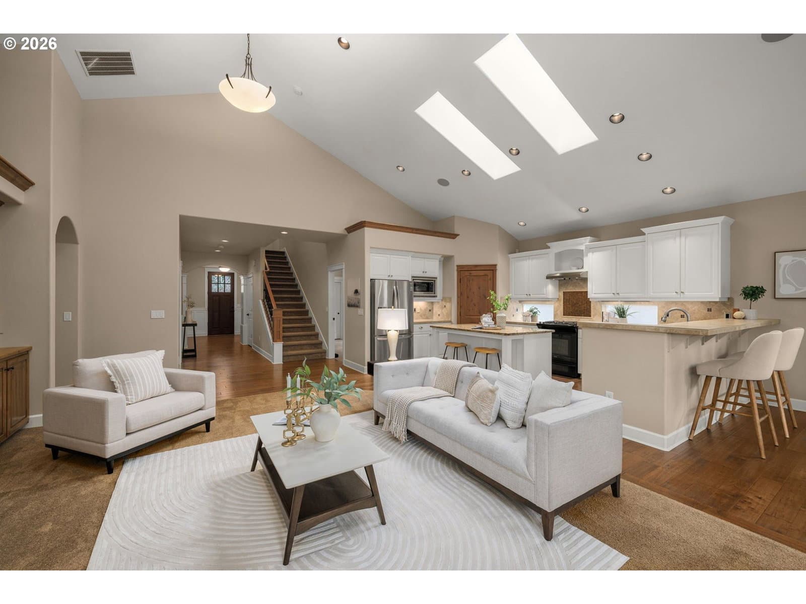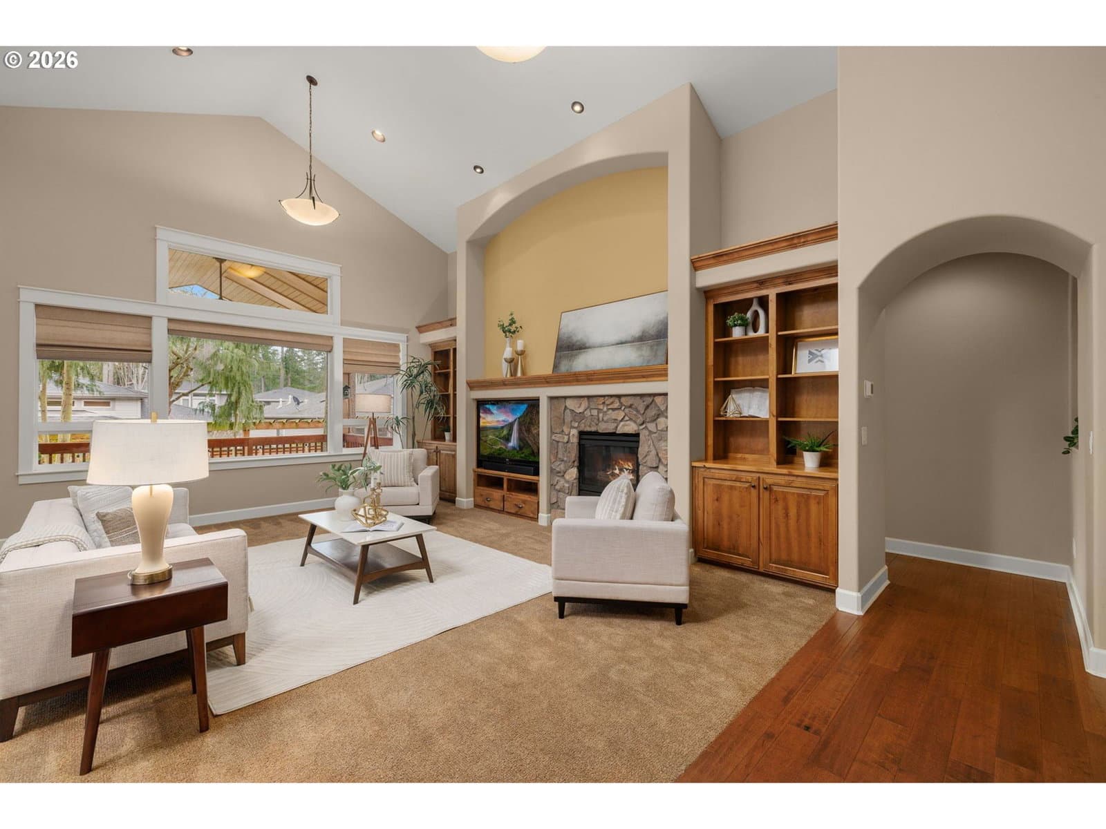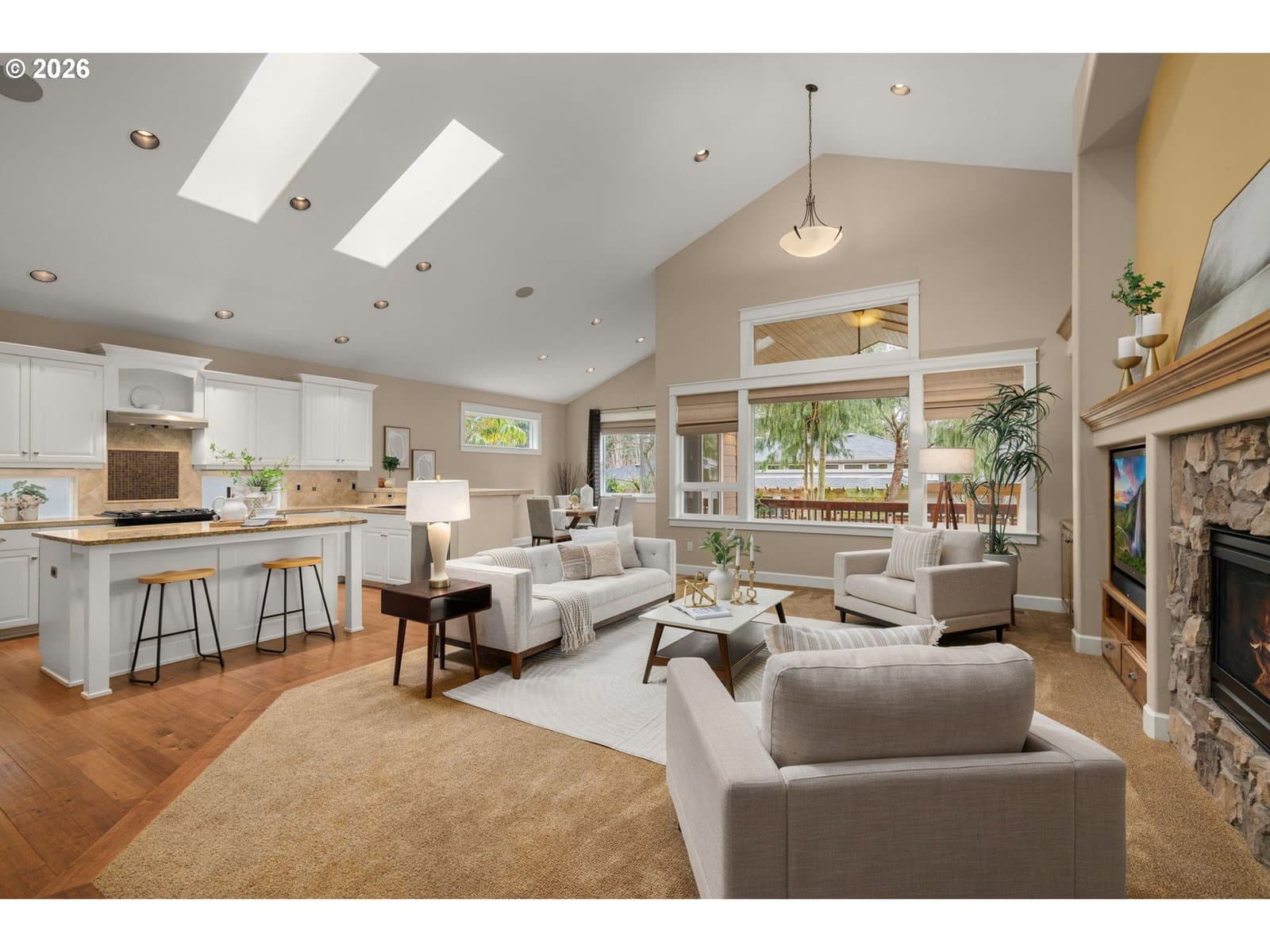 True single-level living defines this beautifully designed custom residence by Pahlisch Homes, featuring a primary suite and two additional bedrooms on the main floor, plus a flexible bonus room upstairs.The vaulted open living area seamlessly connects the kitchen, dining, and living room -which is anchored by a stone surround gas fireplace with custom built-in cabinetry.The kitchen offers modern white cabinets, a large granite island, gas range, built-in microwave, pantry, and distinctive raindrop-glass windows beneath the cabinetry that bring in natural light while maintaining privacy. The dining area opens directly to a covered cedar deck, creating an easy and inviting indoor-outdoor connection.The main-level primary suite features a frameless glass step-in shower, walk-in tub, granite double vanity, and large walk-in closet. Two additional main-level bedrooms share a full bathroom, with one bedroom showcasing custom floor-to-ceiling built-in shelving and a rolling ladder, which doubles as a great home office.Upstairs, the fourth bedroom or bonus room sits behind French doors and offers vaulted ceilings, skylights, a built-in projector and screen, workstation, window seat, full bathroom, and additional storage—an ideal media room/play room or guest suite.Additional highlights include a laundry room off the garage—perfect for a drop zone, a hall closet with wine storage, centralized lighting and sound controls, EV charging, a tankless water heater, and a fully fenced, low-maintenance yard with pavers and a rock garden.Conveniently located near Scholls Ferry and Hwy 217 with easy access to Beaverton, Portland, the westside tech corridor, parks, dining, and Washington Square Mall. This well-maintained beauty is light and bright with a great functional floorplan and everything you need to move right in!