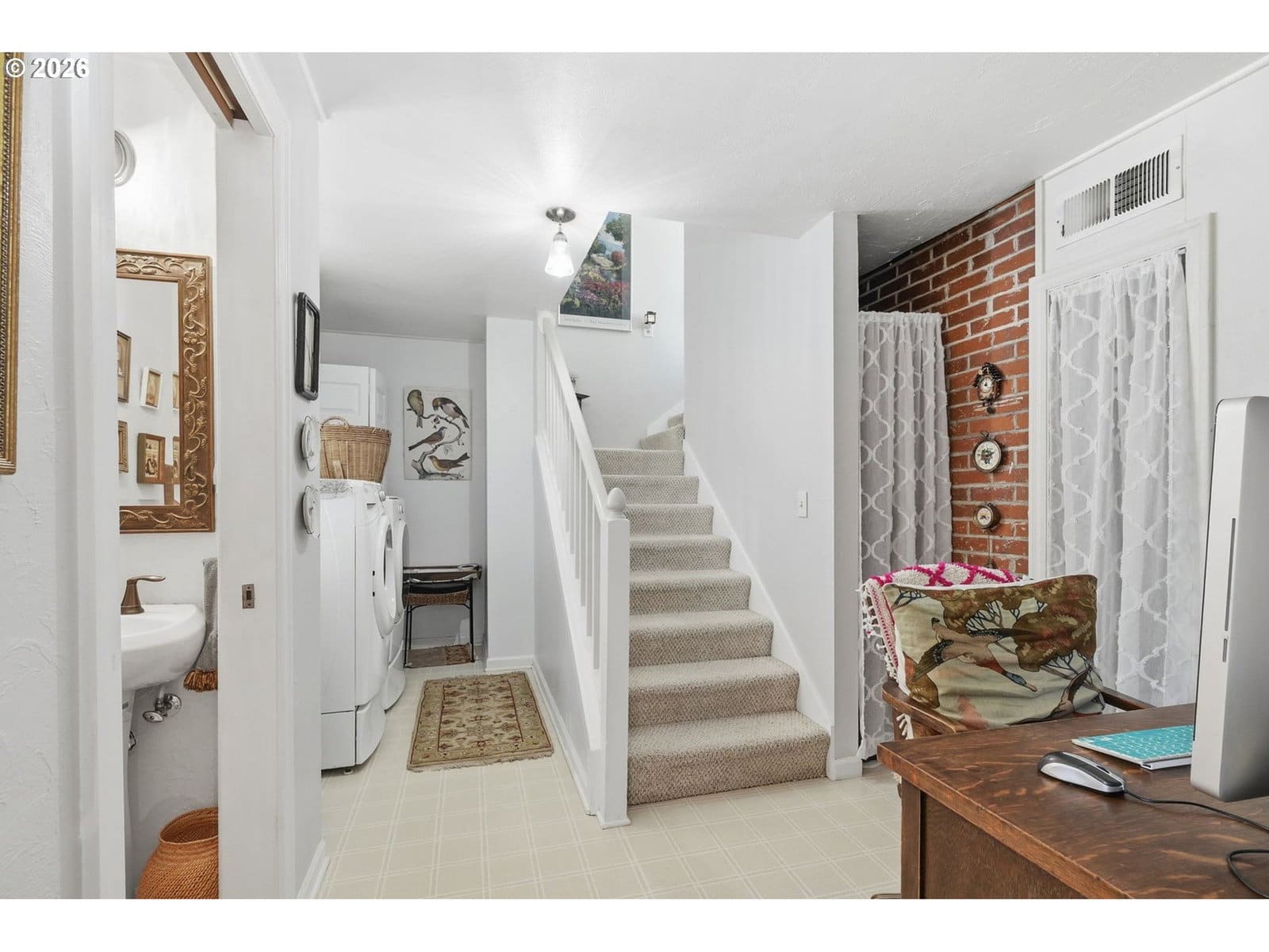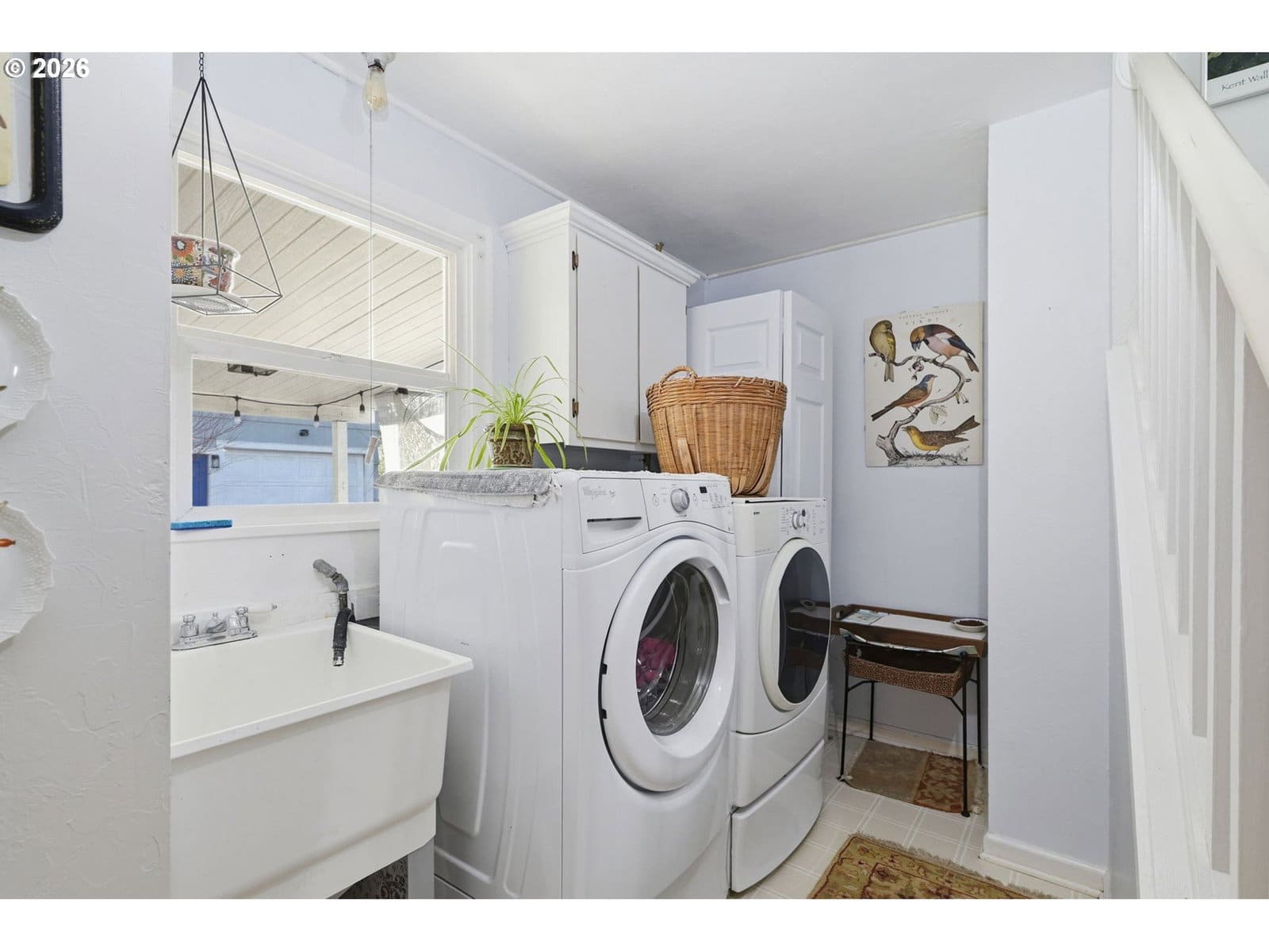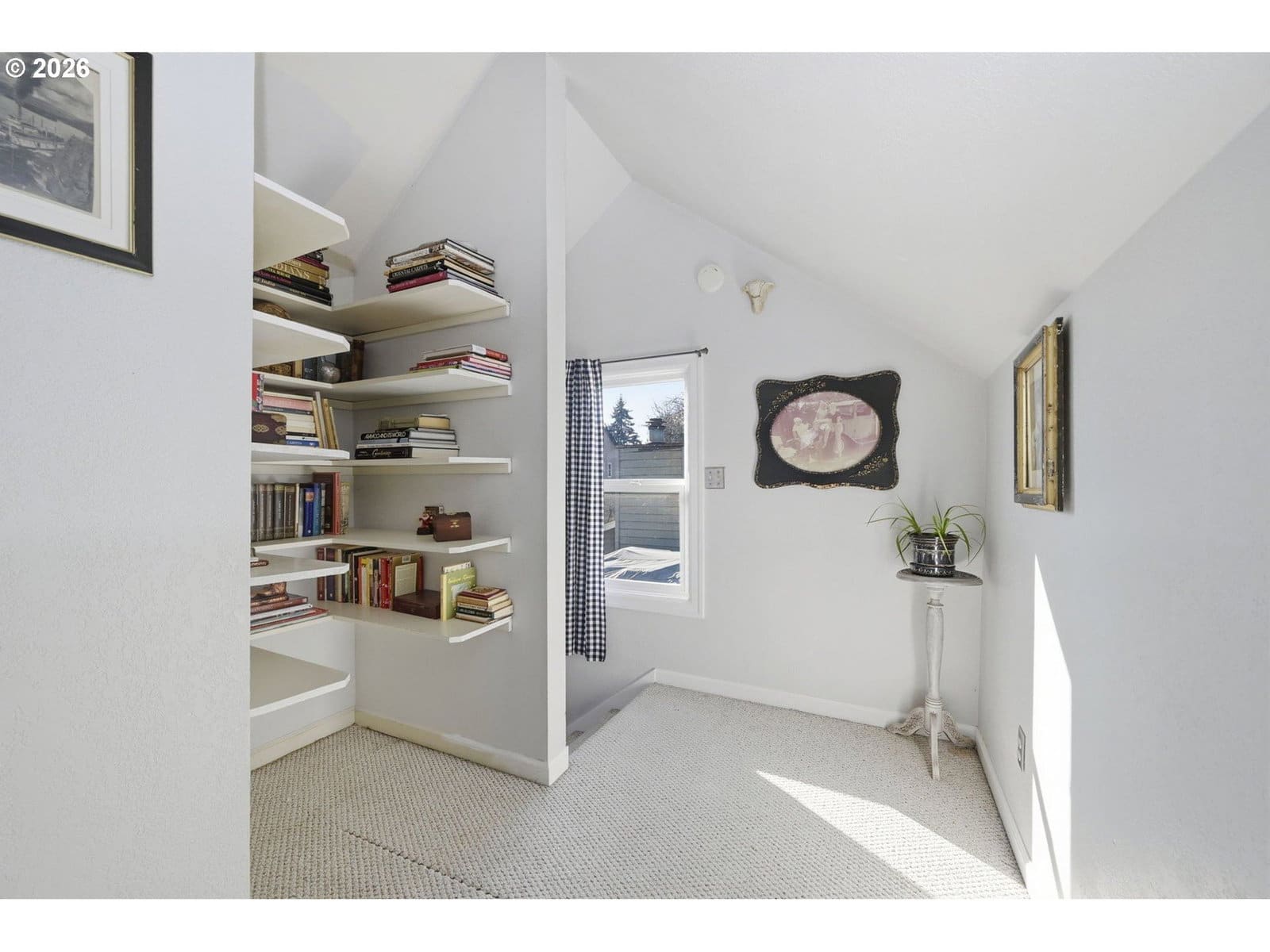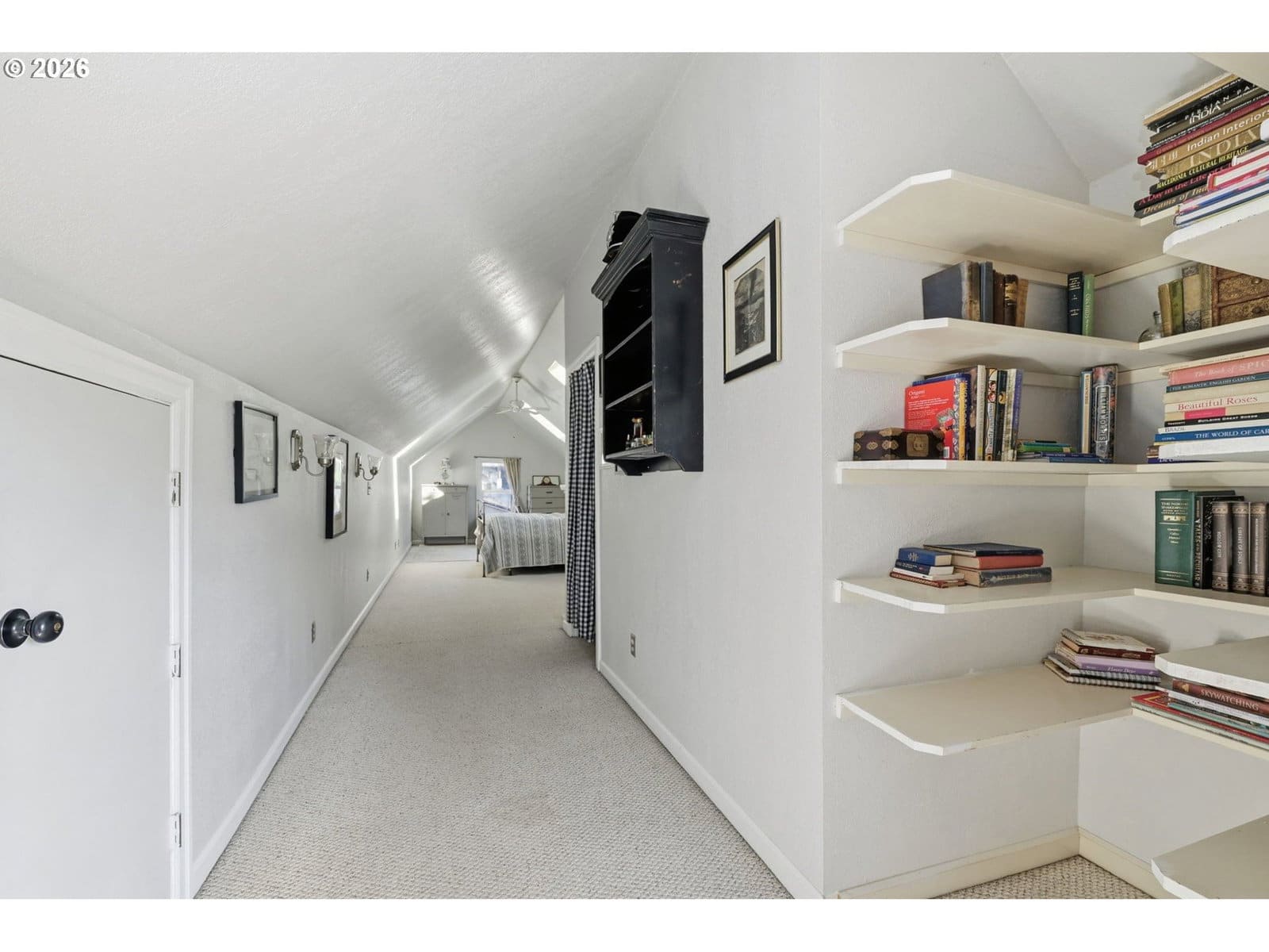 Set on an oversized 0.33-acre in-town lot, this 1948 Cape Cod offers timeless character, space to breathe, and a truly special setting. The sellers have thoughtfully preserved the home’s vintage appeal, featuring original hardwood floors throughout the main level and two main-floor bedrooms, all in excellent condition. The upper level has been converted into a spacious bedroom with a walk-in closet—perfect as a primary suite, third bedroom, or bonus room. Classic details include coved ceilings and walls, arched doorways, and a charming country kitchen with abundant cabinetry and storage and a free standing gas range to cook on. A separate, generously sized dining room adds to the home’s comfortable flow. Recent interior and exterior paint has brightened the home beautifully, while double-pane vinyl windows (installed prior to current sellers) provide improved efficiency. A newer roof was installed approximately two years ago, at which time the attached carport structure was also repaired. Original cedar shake and shingle siding adds to the authentic character. A detached garage and long driveway provide ample parking. The park-like backyard is a standout feature—lush, private, and alive with nature. Mature plantings include a Japanese maple, fig trees, hazelnut trees, kiwi, crab-apple and more, creating a peaceful haven that attracts a wide variety of birds, from blue jays to robins. A large garden area and greenhouse (included) make this an ideal property for gardeners and nature lovers alike. Additional features include a utility room with laundry, half bath, and utility sink. Conveniently located near shopping and bus lines, with the added bonus of low taxes, this home offers vintage charm, modern livability, and an exceptional size lot.