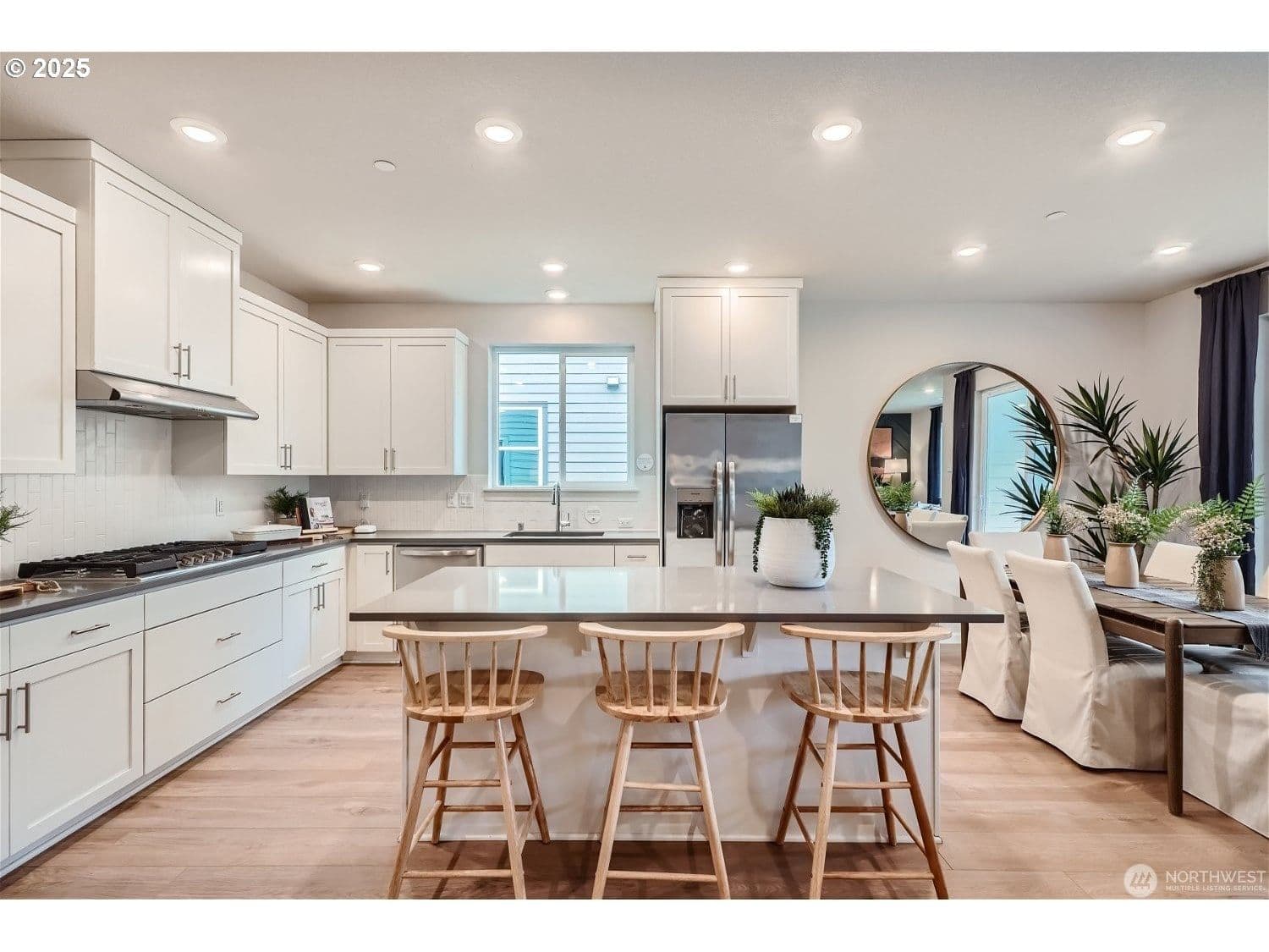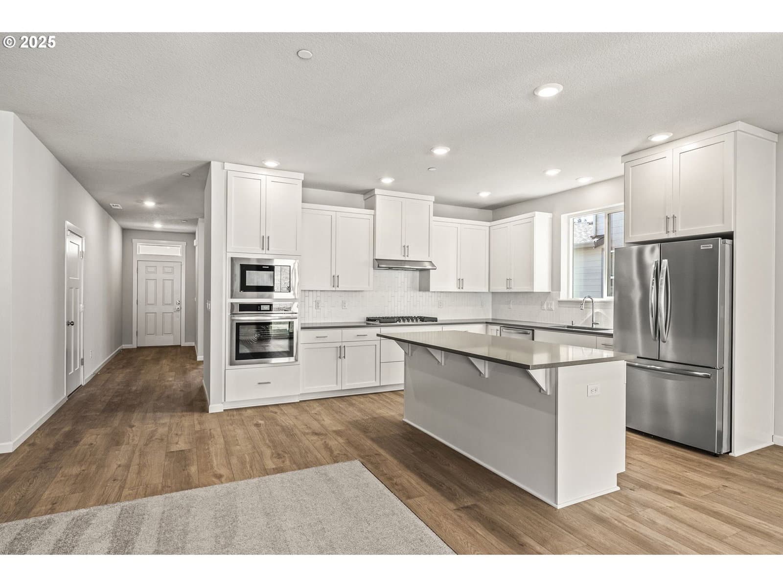 Stunning single-story Lennar's model home that has never been lived in.Move-in ready, all appliances included, w/spacious 3 bay garage, 5 car parking,ample lighting, and room for your toys! Step into the 9-foot-tall foyer graced with/wide hallways that lead to double door bedroom#2, a full bathroom with quartz counters, and bedroom #3 up front with a sunny southern-facing window. Modern quartz kitchen, white shaker cabinets, with stainless steel refrigerator, gas cooktop, and built-in convection oven, overlooks spacious great room with gas fireplace. Just around the corner is the lavish primary suite with a gorgeous bathroom, tiled shower, tiled soaking tub, and a large walk-in closet with wood shelving. Large pantry area with built-in shelving, Ring doorbell, and alarm system.. Very private brand new backyard. Community features walking trails, a basketball court, and play area. 1.7 miles to In-N-Out Burger and Costco. Ask about the closing cost incentive using the preferred lender...