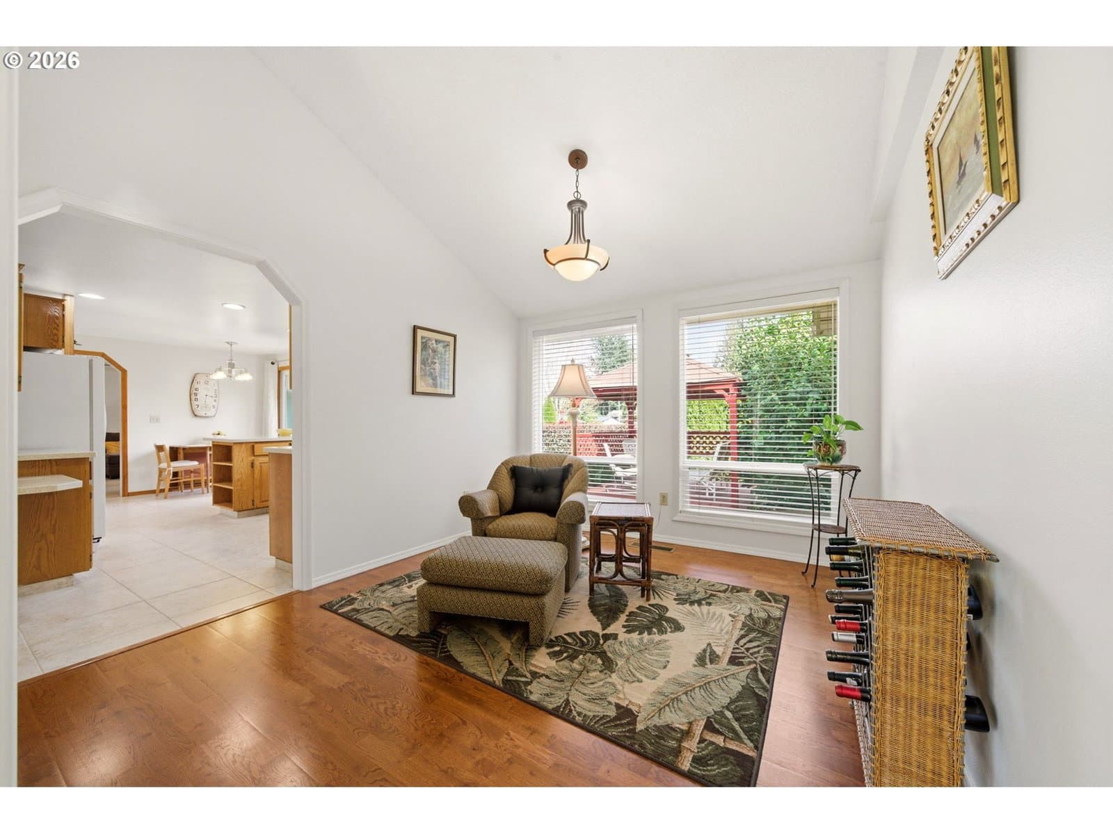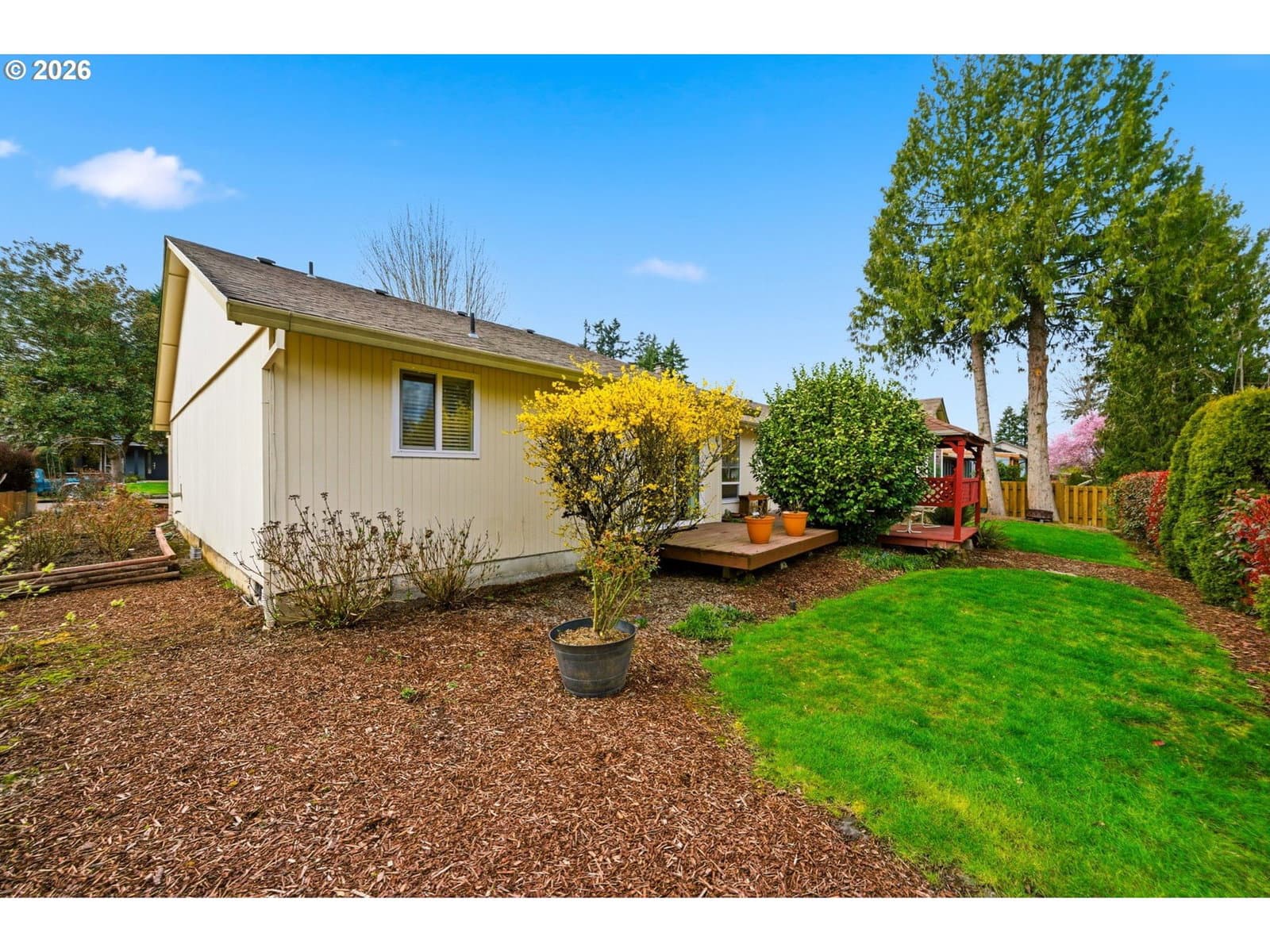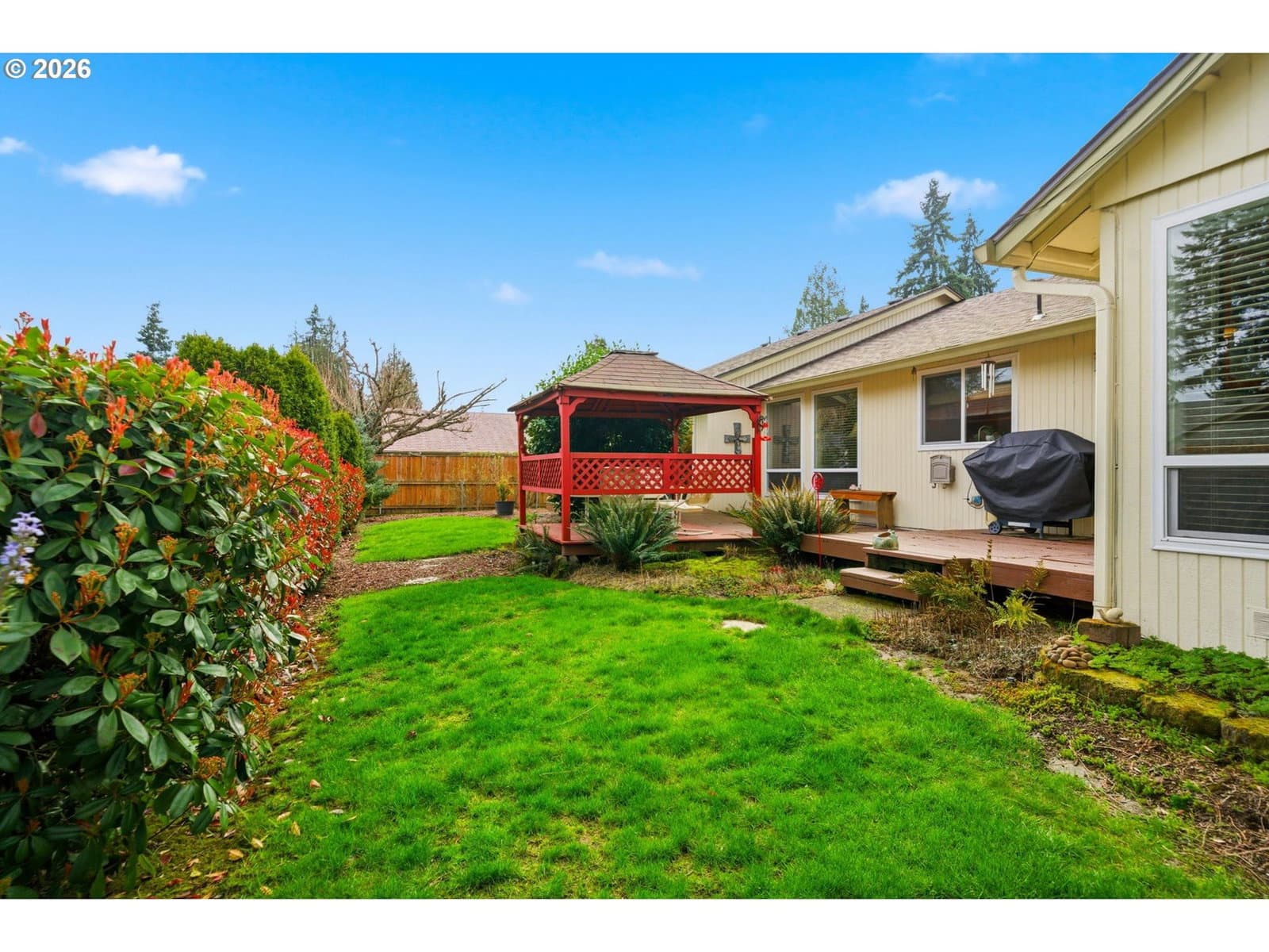 This is the kind of home you walk into and just feel it. A well-loved, single-level ranch that has been cared for with genuine attention over the years. The primary bedroom is generously sized with exterior access to the back deck and an ensuite bath and walk-in closet. Oversized windows throughout the main living spaces bring in an abundance of natural light, a full wall of built-ins in the family room adds storage and style, and garden windows in both front bedrooms add a bright, cheerful touch that carries through the whole home. All windows and trim were replaced in 2023 with upgraded Milgard windows, a $30K investment that adds both beauty and efficiency. And the 3-car garage is the kind of bonus that is genuinely hard to find at this price point. The outdoor spaces are just as welcoming. Mature trees, established shrubs, and lush plantings fill both the front and back yards, alongside a dedicated rose garden on the side of the home. Spend an evening on the large back deck under the gazebo, surrounded by all of it, and you will not want to go inside. Add in no HOA, a quiet and established neighborhood, and quick access to I-205 and everything the area has to offer, and it is hard to find a reason not to love it.