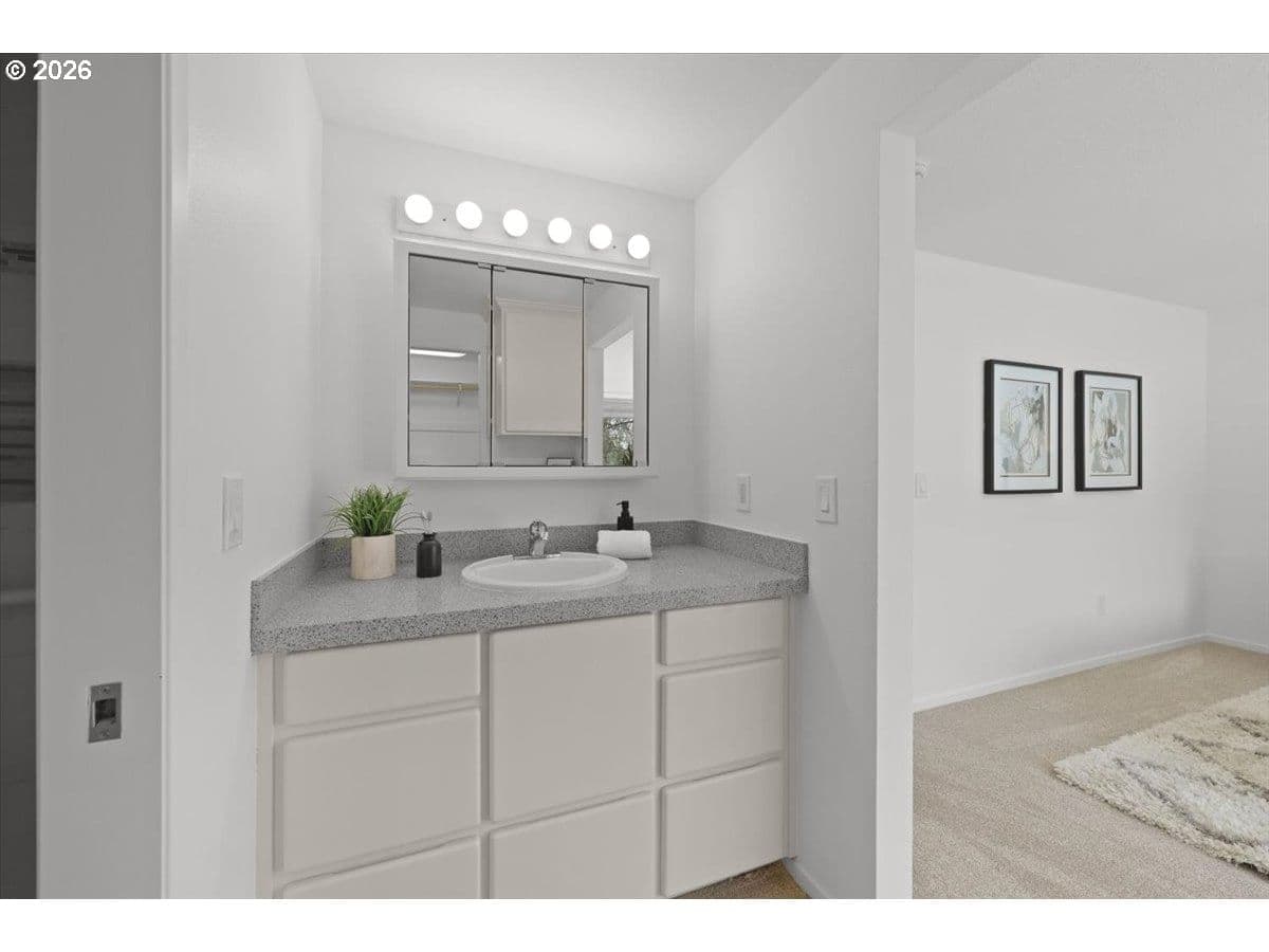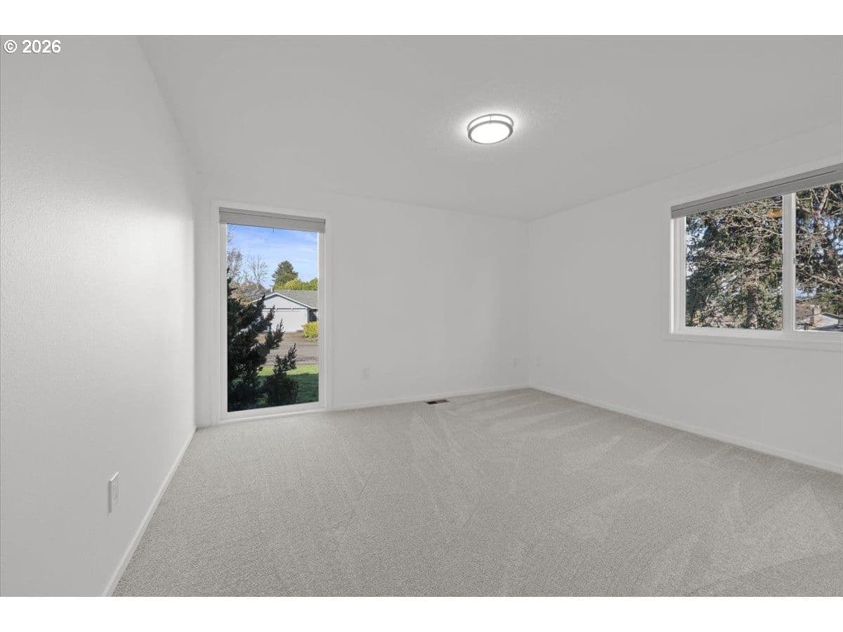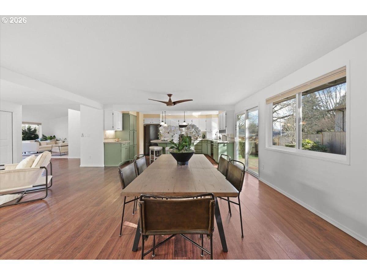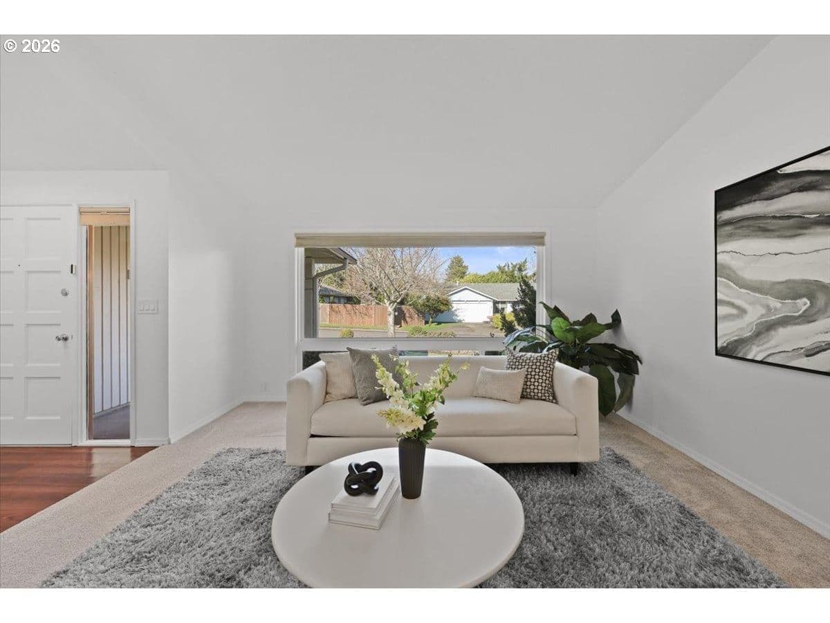 Offers due 3/18 5pm. Spacious one-level living just moments from beloved Greenway Park! This generously sized home just under 2000 sq ft. offers room to spread out while enjoying one of the neighborhood’s biggest perks: 2 blocks from 87 acres of trails & the scenic Fanno Creek Trailhead. The living room & great room complement today’s lifestyle—a cozy retreat to relax + an open space that seamlessly blends living, dining & kitchen so everyone stays connected. The expansive kitchen features a charming garden window, easy-care laminate flooring & granite island w/seating—perfect for coffee, meal prep, or entertaining. Light pours in the large slider & south facing windows! The primary suite offers a peaceful retreat w/walk-in closet & a private bath w/a glass & tile step-in shower. Two additional bedrooms flex easily as guest rooms, offices, or creative spaces, each updated w/new lighting, carpet & paint! Laundry & a full hallway bath sit conveniently nearby. Step outside to a spacious private patio built for BBQs, play & relaxation.You’ll find a handy dog run—great for pets or simply keeping bins tucked out of sight. Mature landscaping including a thoughtfully chosen mix of trees from a stunning flowering cherry to a pom pom tree makes this corner lot pop with beauty. The garage includes plenty of space for projects. Stroll the sidewalks of this friendly community & find the beloved Greenway Park just around the corner, a local favorite for trails, picnics, concerts & more.Pride of ownership shines throughout! Major 2026 updates include a new roof, interior paint & carpet, HVAC & fireplace systems serviced, & landscape refresh. 2015 AC,'23 Furnace,'25 Hot Water Heater and more! Request the whole list! Pre-inspection completed & repairs made for peace of mind. Unbeatable location: Minutes to Hwy 217, Washington Square, St. Vincent, & Beaverton shopping & dining. For park lovers, right-sizers, or anyone craving easy one-level living—this turn-key home is ready to love.