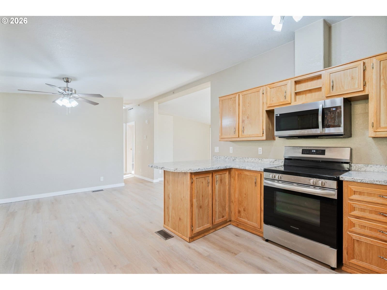 Beautifully maintained home with commanding territorial views on 5.95 gated acres! Quiet country living in this "1997" manufactured home boasting 1,560 SF, 3bdrms, 2 full bthrms, primary bedroom w/ensuite and walk-in closet, great room floor plan w/vaulted ceilings and new LVP plank flooring, large light filled living room with stunning view windows, dining rm w/ceiling fan, spacious kitchen w/eating bar-SS appliances-wood cabinetry-deep fiberglass sink