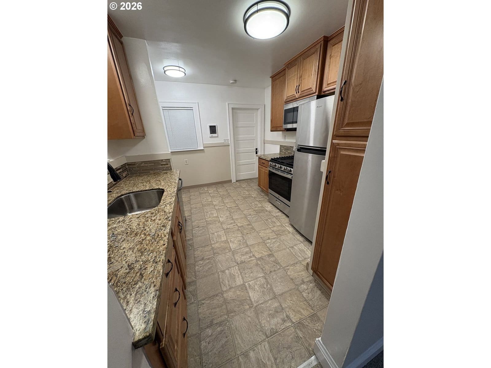 This charming, move-in-ready 2-bedroom home has been thoughtfully remodeled throughout. Updates include new flooring, kitchen cabinets, granite countertops, a new gas stove, and updated lighting in every room. The home also features a large unfinished basement, new attic insulation, and a single-car garage with an oversized driveway offering additional parking.Enjoy a pleasant view of the hills from the kitchen windows and relax on the cozy front porch. The large, fully fenced corner lot sits directly across from Lents Elementary and just two blocks from Bloomington Park. The location is ideal—close to the Boys & Girls Club and within walking distance to MAX and bus routes.A one-year home warranty is included with the sale.Don’t miss the opportunity to make this wonderful home yours.