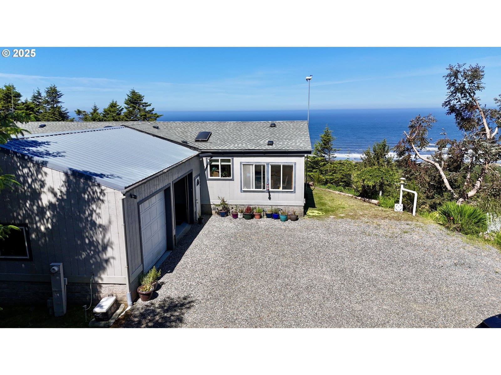 Starry Nights in the evening and On Top of the World expansive 27 Mile Ocean Views during the day! A once-in-a-lifetime opportunity to own nearly 25 acres of manicured, secluded paradise perched above the Pacific Ocean. This rare coastal gem boasts sweeping, unobstructed views of iconic landmarks including Sisters Rock, Cape Blanco Lighthouse, and the quaint harbor of Port Orford plus millions of stars surrounding you each night. Surrounded by nature and alive with wildlife—including whale watching right from your deck—this private retreat offers unmatched serenity, making it the perfect escape or dream full-time residence.The well cared for 3-bedroom, 2-bath home features a bright, open layout designed with comfort and functionality in mind. Enjoy:New stainless appliances and slide-out kitchen shelves.Skylights for natural light and cheerful ambiance. Luxury vinyl flooring throughout.A spacious primary suite with jacuzzi tub. Thoughtful upgrades including R30 insulation and clean, concealed wiring in the crawlspace. Double pane Argon gas filled double pane windows. Hi speed internet and Direct TV/Satellite. City water w/ a 1200 gallon holding tank. New Roof.An oversized attached 2 car garage, ideal for storage, a workshop, or all your coastal adventure gearThe property includes towering mature trees, with potential merchantable timber value, adding to its appeal as a long-term investment or development opportunity.Whether you're dreaming of a private sanctuary, a vacation getaway, or exploring future possibilities, this property delivers on all fronts. Don’t miss your chance to own a truly spectacular slice of the Oregon Coast.