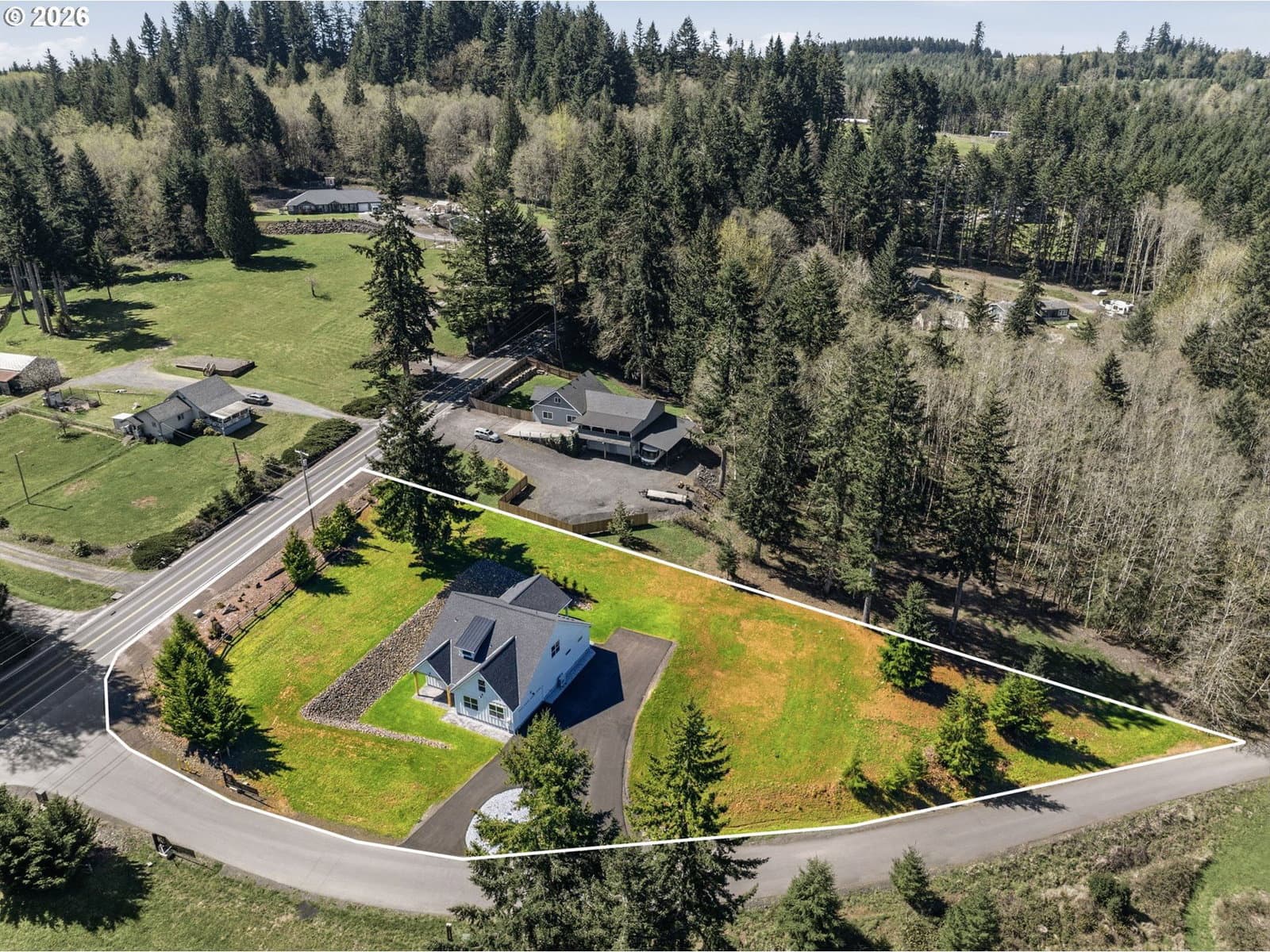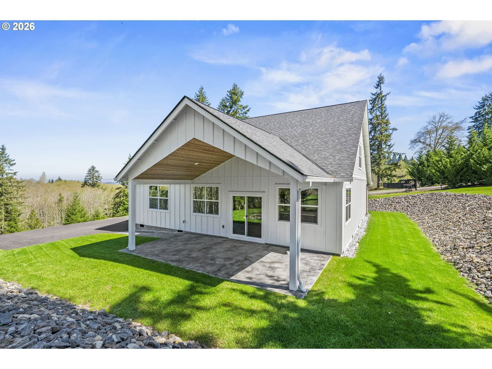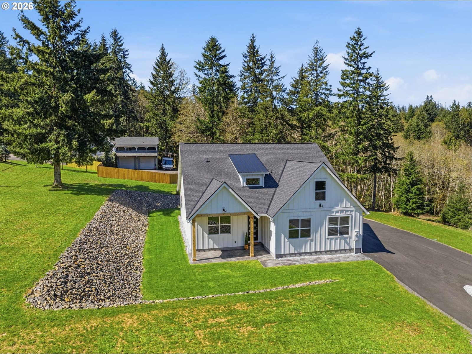 Beautifully designed modern farmhouse...new construction on 2 acres, offering the perfect blend of contemporary style and peaceful rural living. This four-bedroom, three-bath home is filled with natural light, highlighted by a vaulted open-concept living space and expansive windows.The deluxe kitchen features ample cabinetry, quartz countertops, stainless steel appliances with warranties, and a fully functional walk-in pantry complete with additional counter space and outlets. The great room seamlessly opens to a covered patio—perfect for outdoor dining and entertaining.The luxurious main-level primary suite includes a private bath with double vanities, a walk-in closet, and convenient access to the laundry room. An additional bedroom with a walk-in closet is also located on the main level.Upstairs, you’ll find two more spacious bedrooms and a vaulted bonus room, offering flexibility for a variety of needs.Outside, enjoy scenic views and plenty of space to roam on the 2-acre property. The large turnaround driveway provides ample parking, including room for an RV. Plus there is plenty of room for a shop. Located just minutes from the charming downtown area of Castle Rock, with local dining, shops, and amenities nearby, this home offers the perfect balance of small-town living and modern convenience.Schedule your private tour today—this exceptional property has everything you’re looking for.