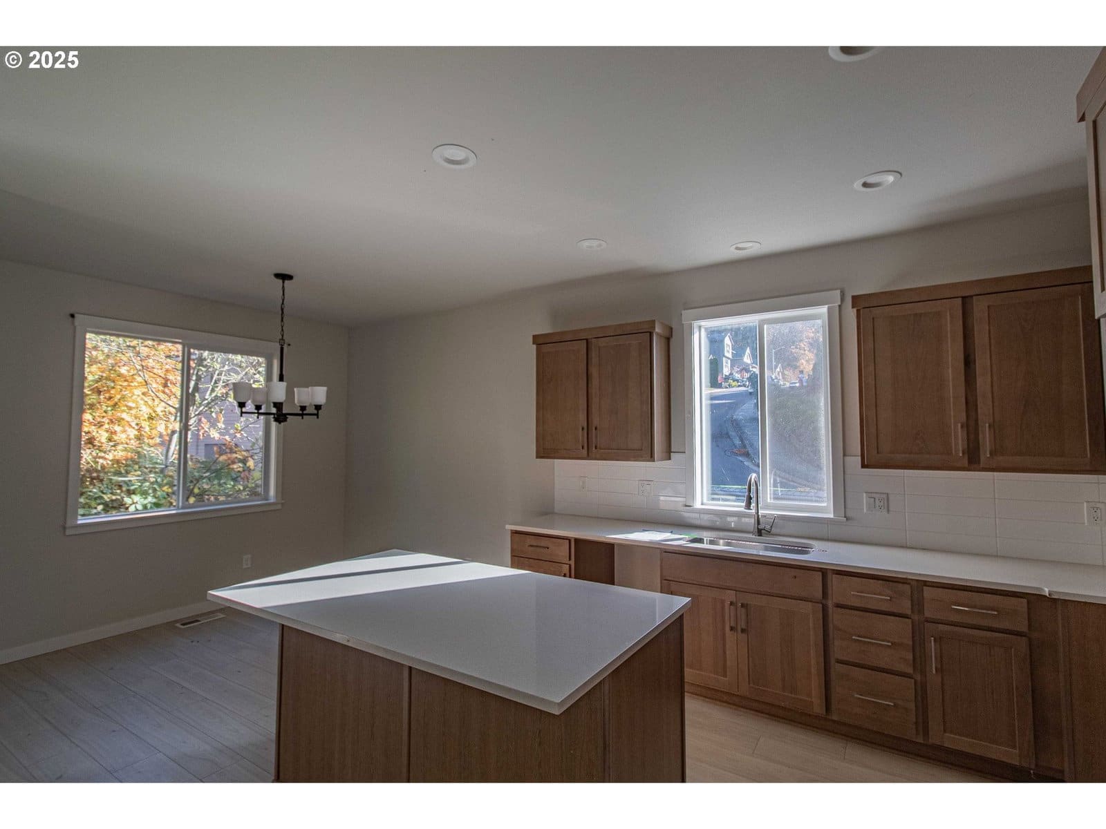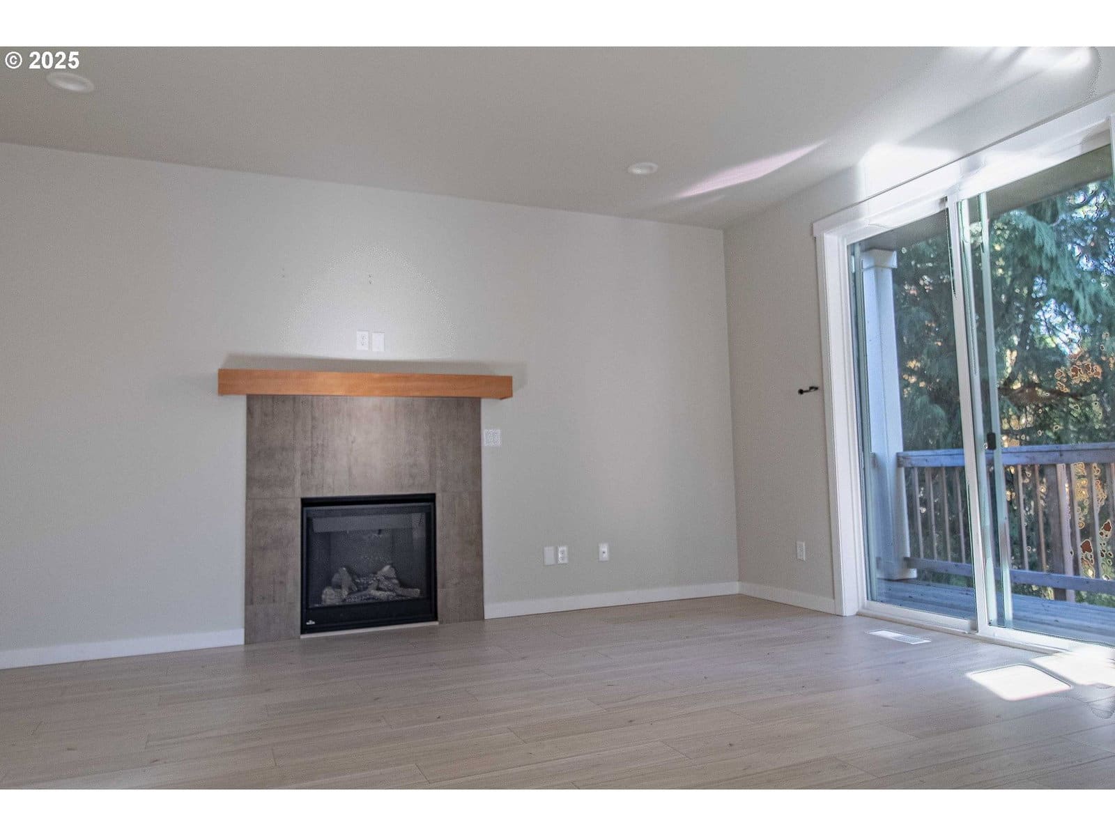 Welcome to this beautifully designed 4-bedroom, 2.5-bath home that effortlessly combines modern style with everyday comfort. The spacious kitchen showcases sleek quartz countertops, a large undermount sink, generous island w/eat bar, and contemporary cabinetry which flows seamlessly into the inviting living room with a cozy gas fireplace and a slider to the private deck. Upstairs, the primary suite features a vaulted ceiling, elegant wall sconces, a walk-in closet, and an ensuite bath with a double vanity. Three additional bedrooms, a second full bath, and a conveniently located laundry room complete the upper level. Backing to a tranquil greenspace, this home offers exceptional privacy and a serene natural backdrop—perfect for peaceful living.