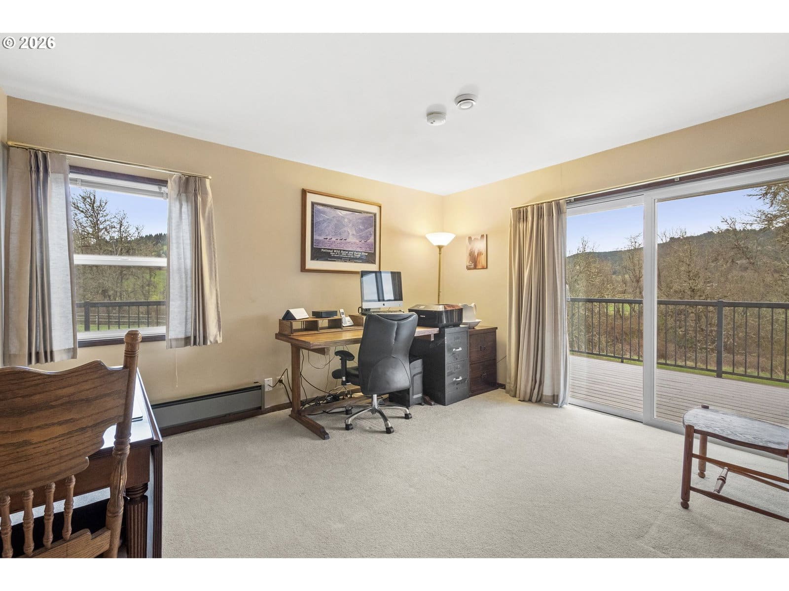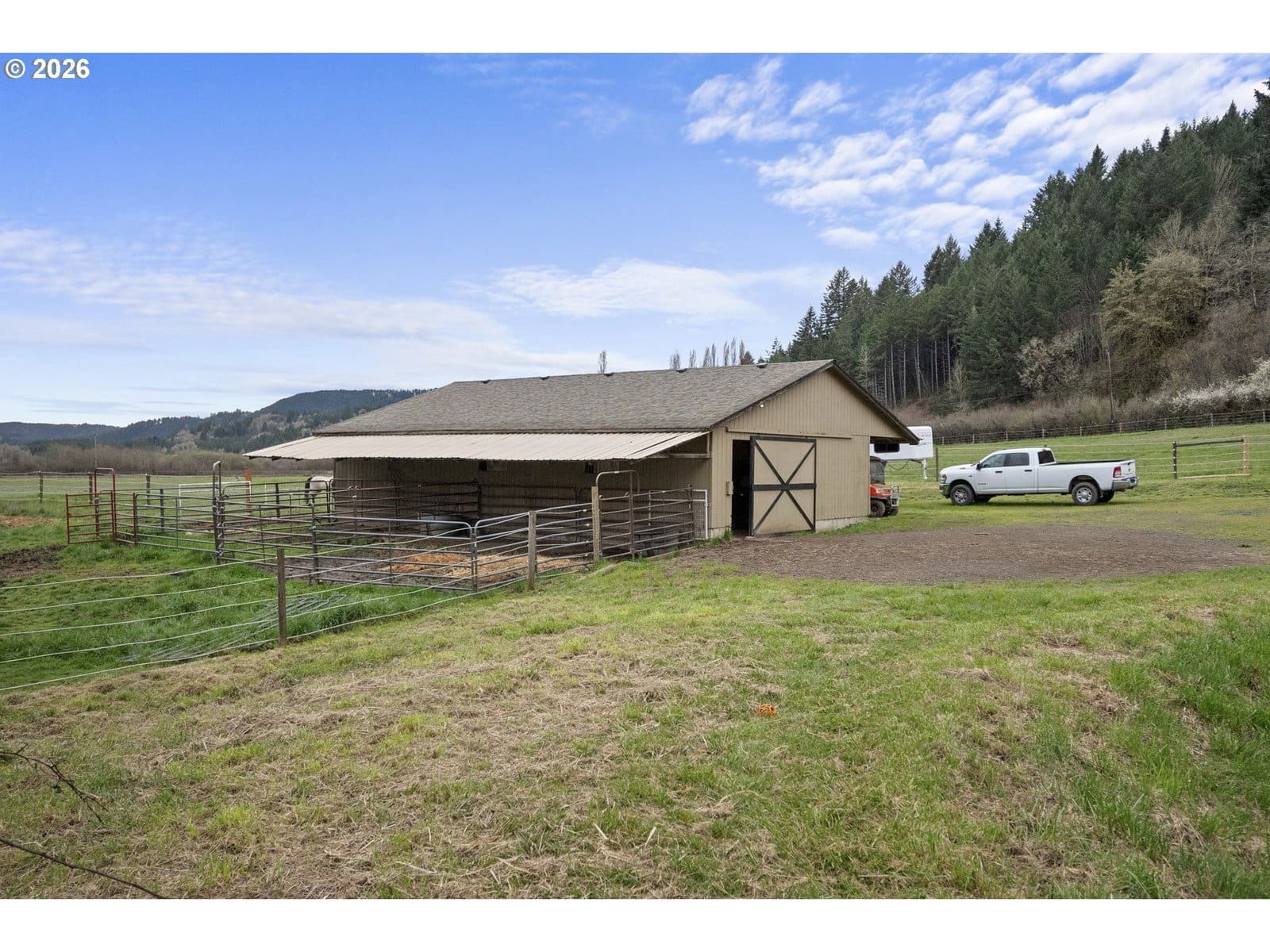 20-acre Sheridan stunner w/ premier equestrian setup — round pen, 3-stall barn, tack room, corrals & cross-fenced pastures w/ creek-fed irrigation rights. Grohe Creek frontage + on-site pond. Sweeping valley & mountain views from every room. Ranch home boasts grand stone fireplace, exposed beams, vaulted primary suite w/ deck access & separate living quarters. Island kitchen, 2-car garage & RV/trailer parking. True horse property in the heart of Yamhill County wine country.