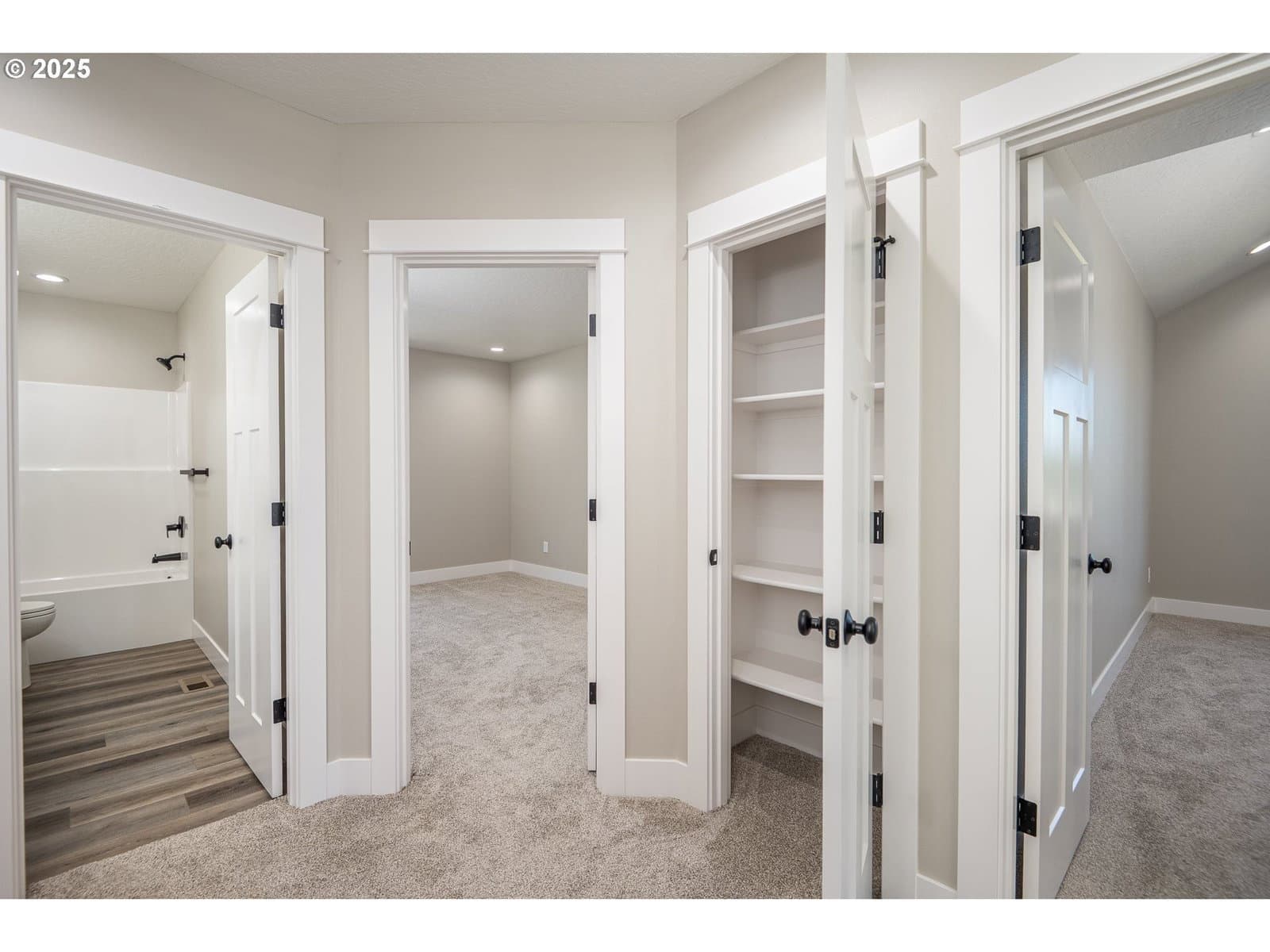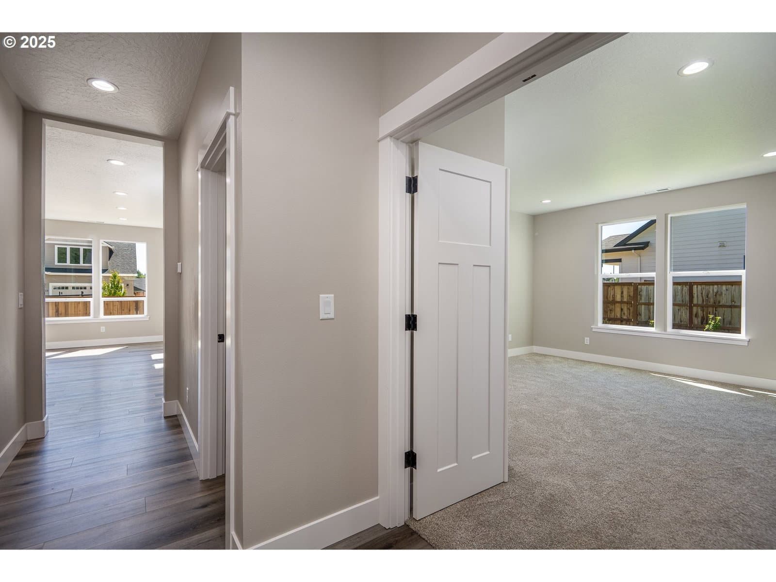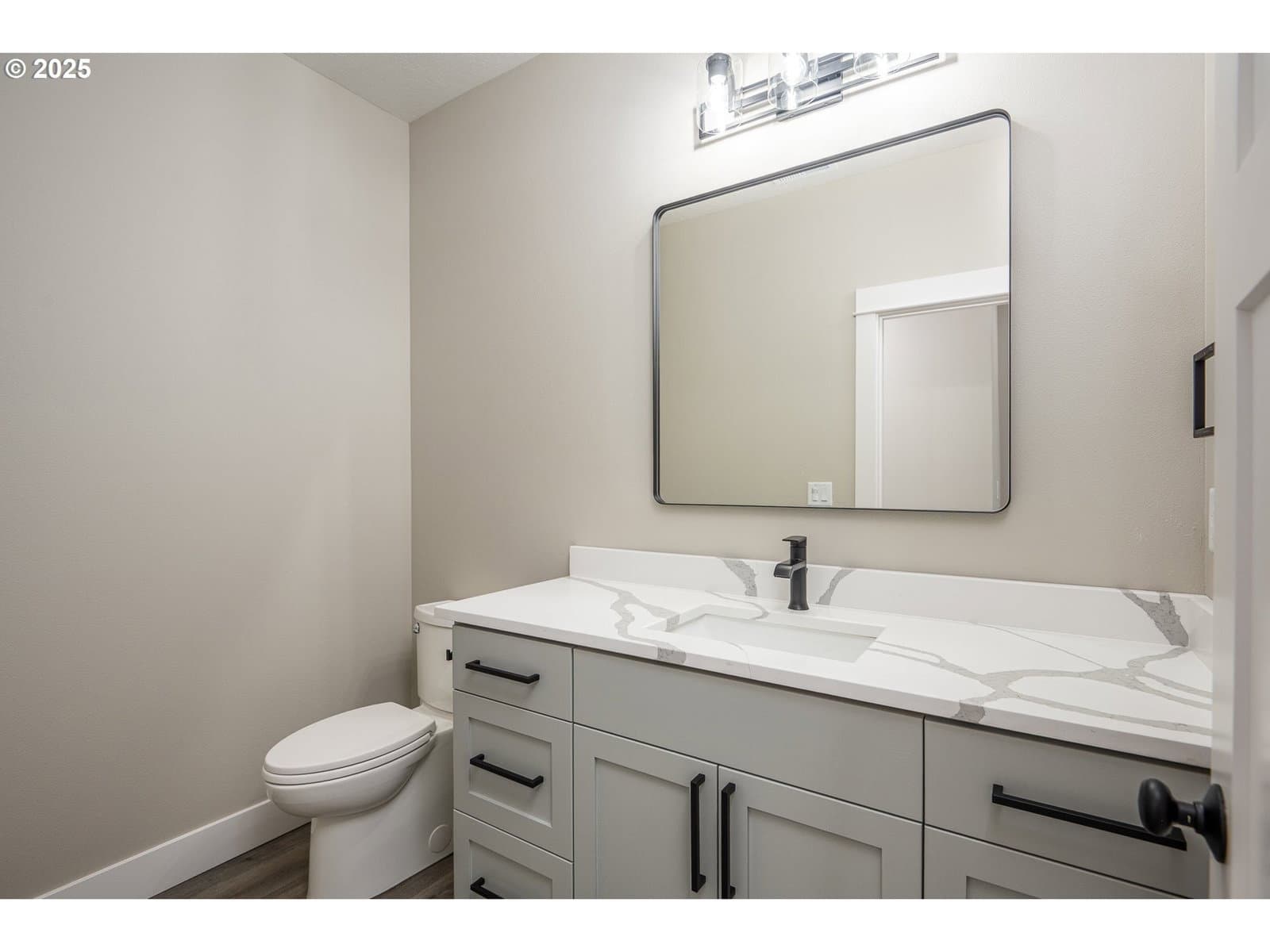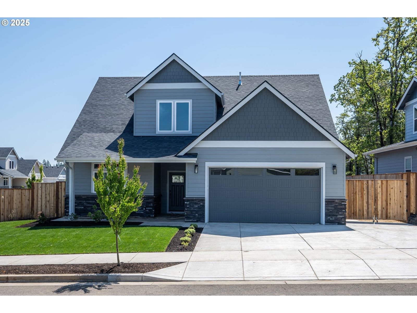 Check out this popular floorplan, it has 4 bedrooms | 2 1/2 bathrooms | 2074 sq ft with a main level primary suite and three bedrooms upstairs. The nice open kitchen has white quartz countertop, gray cabinetry, and a large pantry. Stainless steel appliances with gas cooking, a built-in microwave, and a large refrigerator. Light and bright throughout with lots of windows and can lighting. The living room has a vaulted ceiling with a stacked stone gas fireplace, an oversized sliding glass door to a patio, and a fenced & landscaped backyard. The primary bedroom has a custom tiled shower, a large walk-in closet, and a double quartz vanity. The main level laundry room has cabinetry for extra storage. 3 nice-sized bedrooms share a large bathroom with a double quartz vanity and bathtub upstairs. 2-car attached garage & gated RV space. The propane tank feeds the fireplace, gas range, and tankless water heater. Come check out Madrone Ridge and JW Construction's new homes!