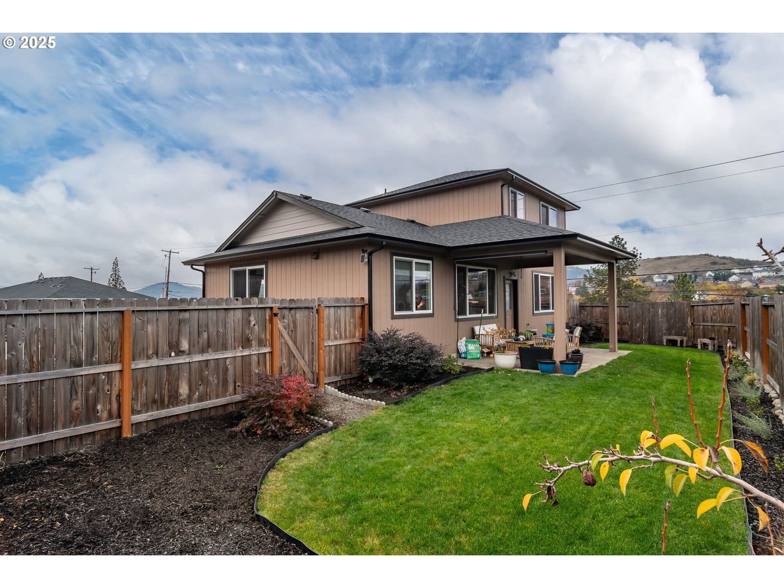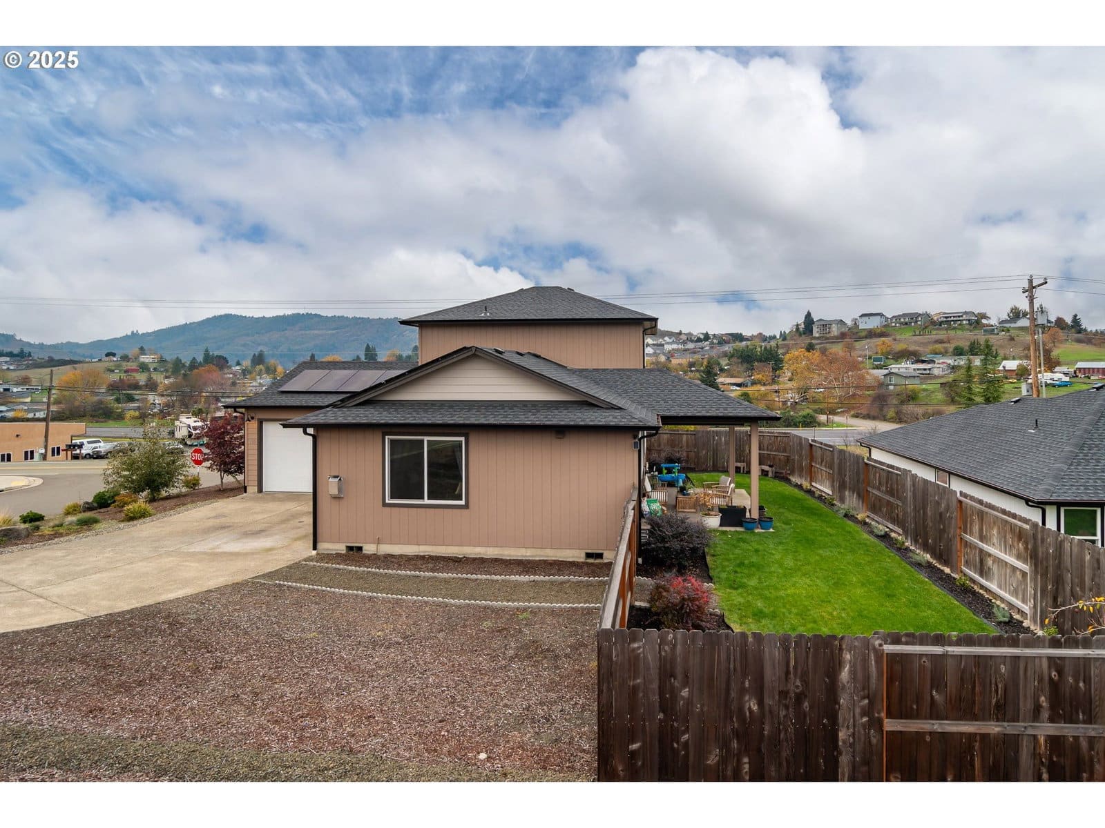 Beautiful 2021-Built Home with Modern Comfort & Energy Savings.Welcome to this stunning 3-bedroom, 2.5-bath home perfectly situated on a desirable corner lot in a conveniently located, newer neighborhood.. Built in 2021, this residence showcases contemporary style, thoughtful design, and premium finishes throughout.Step inside to an inviting open layout featuring luxury vinyl flooring, high ceilings, and a cozy gas fireplace. The kitchen is a true highlight with granite countertops, alder cabinetry, and excellent storage—ideal for cooking and entertaining alike.The primary suite on the main level offers comfort and convenience with a spacious walk-in closet, walk-in shower, and double sinks. Upstairs, additional bedrooms provide flexibility for family, guests, or a home office. Enjoy outdoor living on the covered patio overlooking a low-maintenance fenced backyard, perfect for relaxing while taking in picturesque mountain views. Extra parking adds ease for visitors, toys, or additional vehicles.Built with Energy Trust of Oregon high-performance features and equipped with paid-in-full supplemental solar panels, this home delivers exceptional energy efficiency and remarkably low utility bills. Modern, low-maintenance, and move-in ready—don’t miss this opportunity to own a beautifully upgraded home with rare energy-saving benefits. Easy to show, so call to see it today!