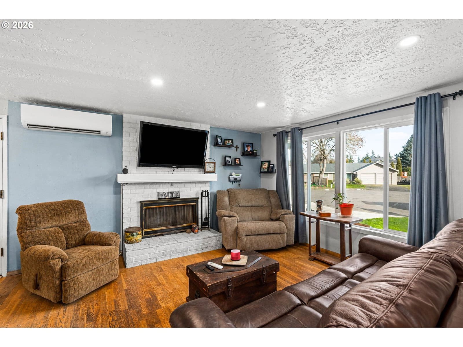 Tucked into a quiet cul-de-sac in Eugene’s desirable Santa Clara neighborhood, this well-maintained single-level home offers a thoughtful blend of recent updates and functional outdoor space. The kitchen features all-new appliances—including a refrigerator, oven, microwave, and dishwasher—all just a few months old. The open-concept dining area connects to a cozy living room anchored by a wood-burning fireplace and hardwood flooring.The primary bedroom includes a half bath with updated flooring and countertop, as well as a closet with double doors. Hardwood floors continue throughout most of the home. A ductless heating and cooling system and vinyl windows, both added within the last few years, enhancing year-round comfort and energy efficiency.Outside, the corner lot delivers standout features: spacious RV parking with 19-foot wide gates, additional fenced side yard parking, a stamped concrete patio, and a small greenhouse/workspace—ideal for projects or gardening. The widened driveway and sidewalk, finished with newer concrete, offer improved access and curb appeal.Set in a quiet residential area, this home offers easy access to Santa Clara Community Park, shopping centers, local schools, and main roadways for commuting. A solid opportunity in a sought-after neighborhood with practical updates already in place.