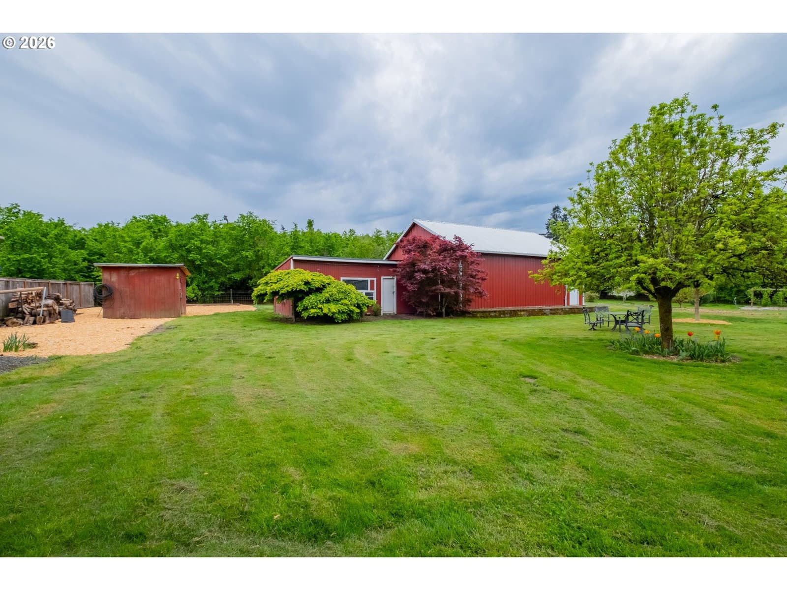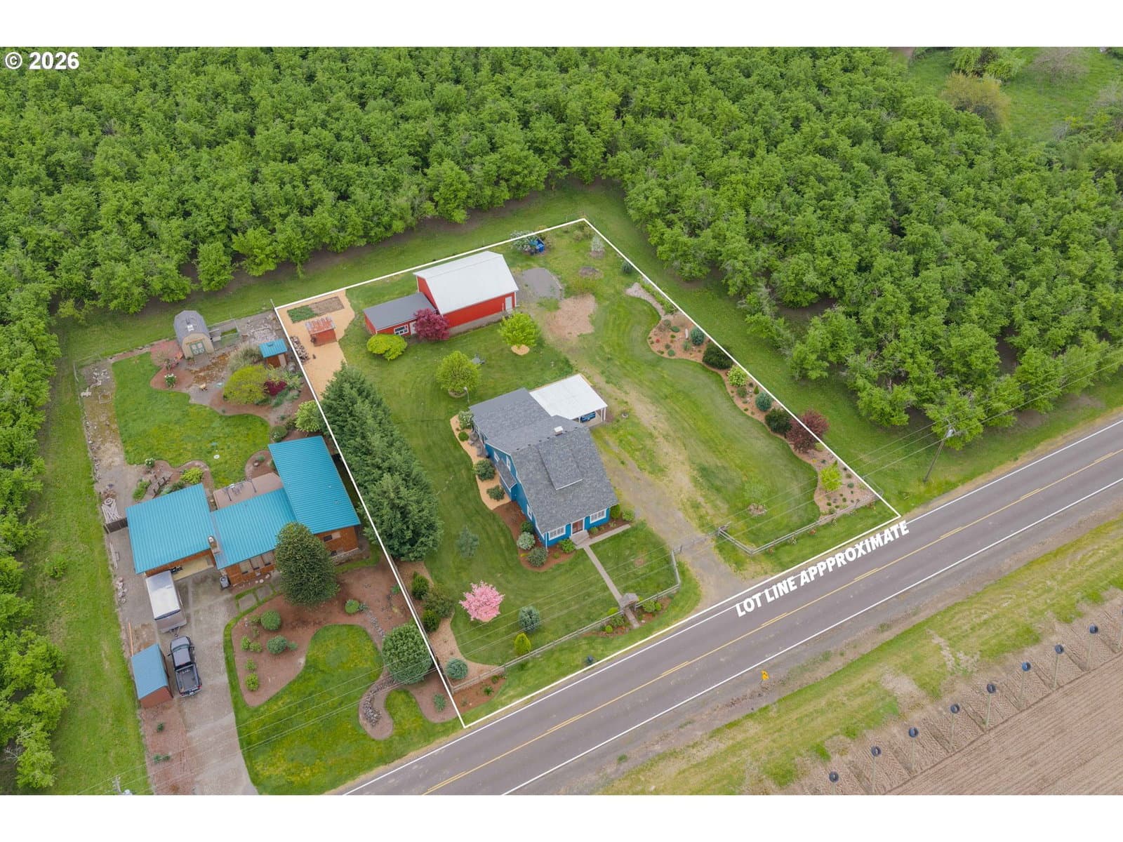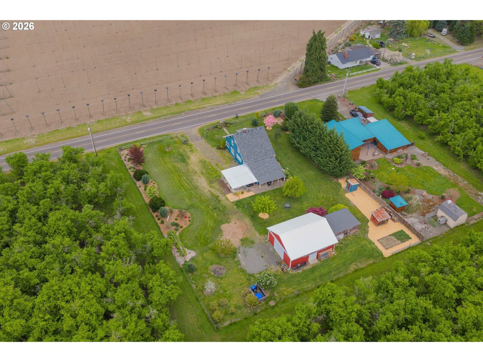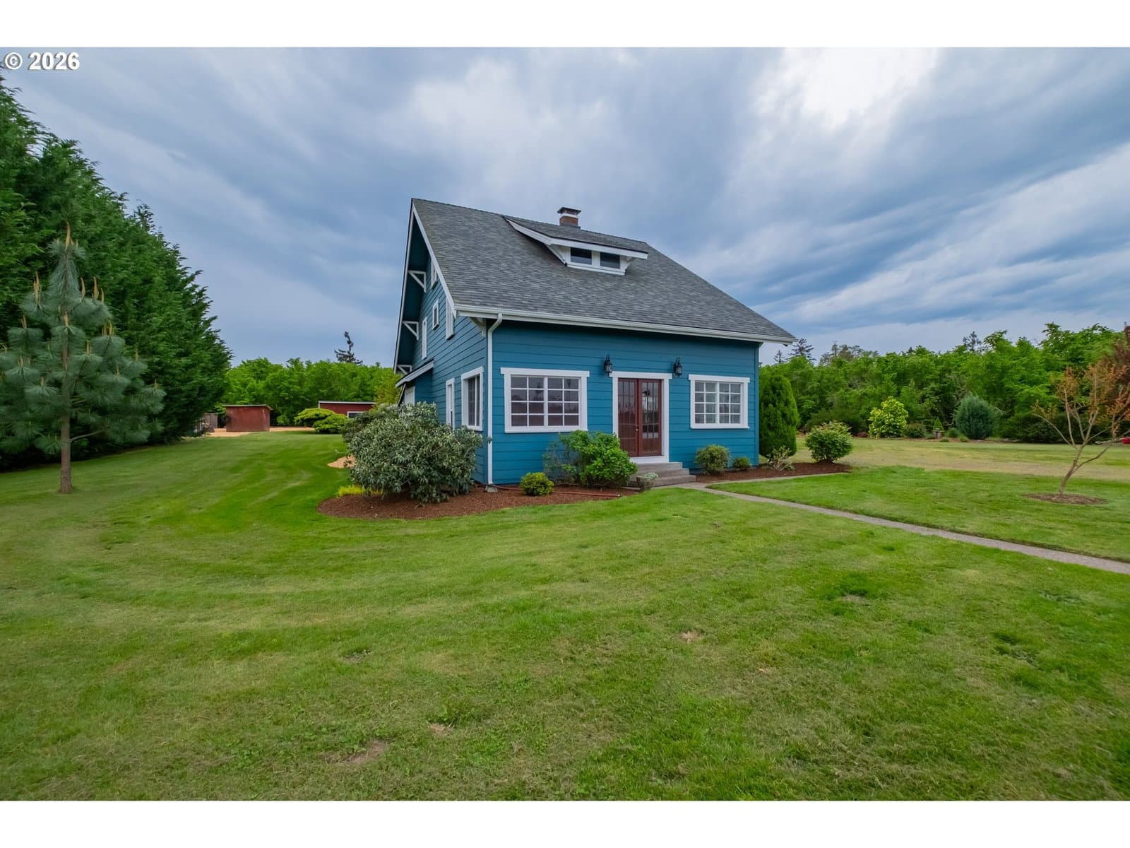Step into a rare blend of history, comfort, and country living in this beautiful 1910 Craftsman on 0.85 acres, surrounded on three sides by orchards and farmland. With low county taxes, usable land, multiple outbuildings, and flexible living spaces, this home offers rare affordability and long term versatility in a lovely community. Thoughtfully updated while preserving its original character, this home features a new roof (March 2024), updated windows (2021), fresh interior and exterior paint, and a new stainless steel refrigerator. The kitchen features butcher block countertops [that flows] into a formal dining room with built in buffet and hutch. Original hardwood floors are preserved in many rooms, complemented by new LVP flooring in select areas. Additional spaces include a traditional wood pantry, sunroom, reading nook, flex room, and utility room. The main home rests on a poured foundation and is heated by forced air, with high speed internet available. The well system was updated in 2016 with a new pump and raised casing. Outdoors, the property features a fully fenced perimeter, solar powered gate opener (2021), ample parking, and a two car carport. The 30 x 36 barn has a 6 inch concrete floor and100 amp subpanel. While the adjacent 25 x 15 historic wood shop is equipped with 50 amp power. Here you have year round beauty with drought tolerant perennials, flowering shrubs, ornamental grasses, and seasonal blooms. A strawberry patch, large garden area, established fruit trees and berries including Bartlett pear, sweet cherry, Honeycrisp apple, marionberries, and blueberries. Located only 4 minutes to Jones Farm Produce, 10 minutes to Keizer Station, and 12 minutes to Woodburn Premium Outlets. Quick access to I5 makes commuting simple, while Wheatland Ferry and Willamette Mission State Park are nearby.