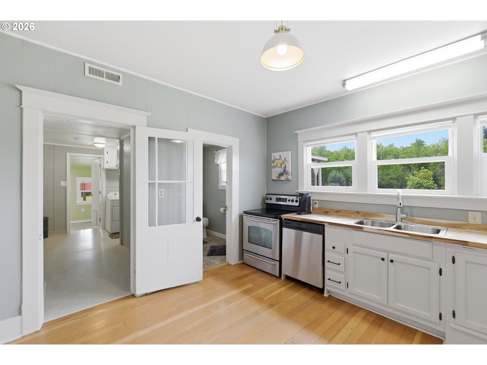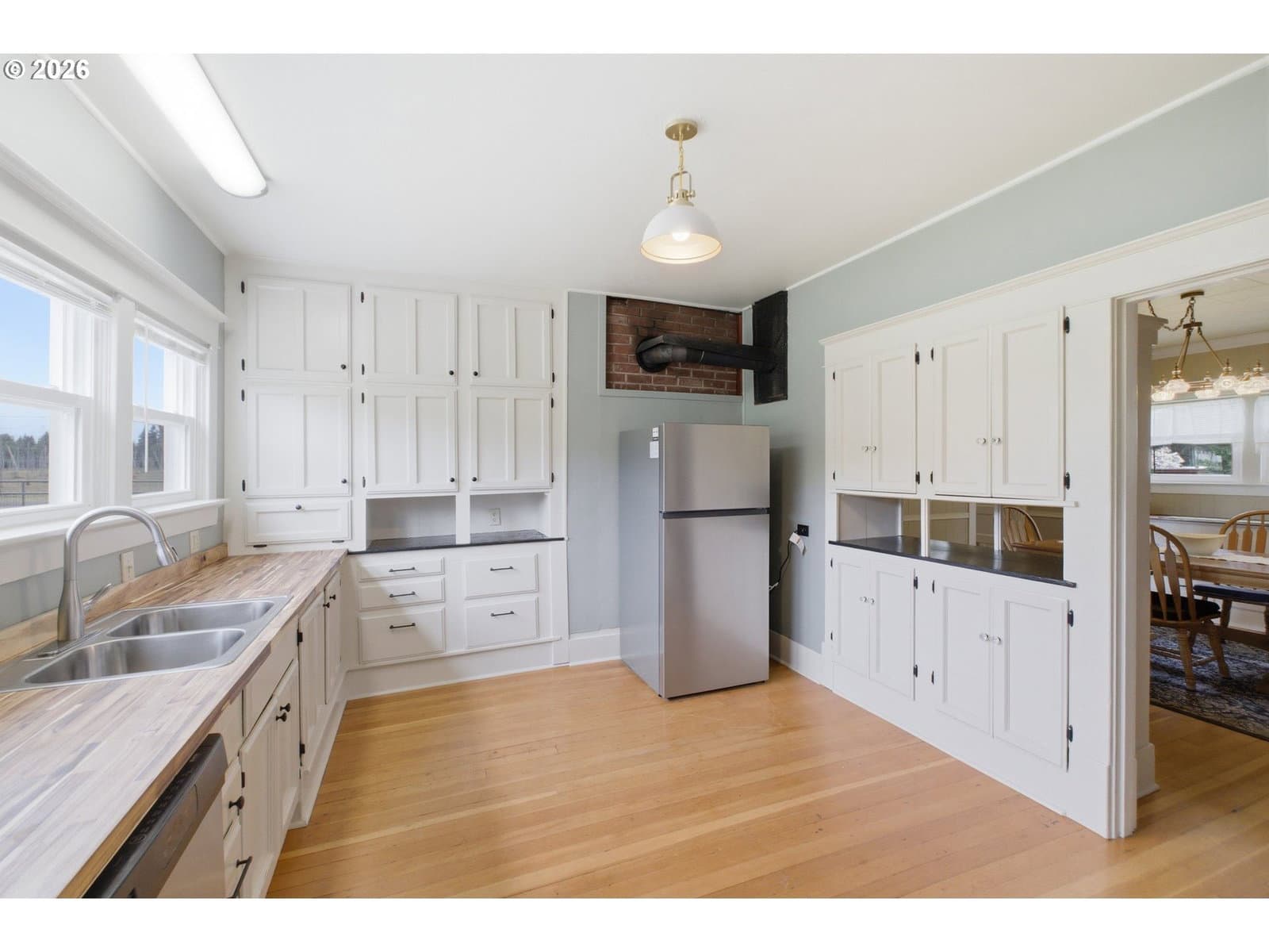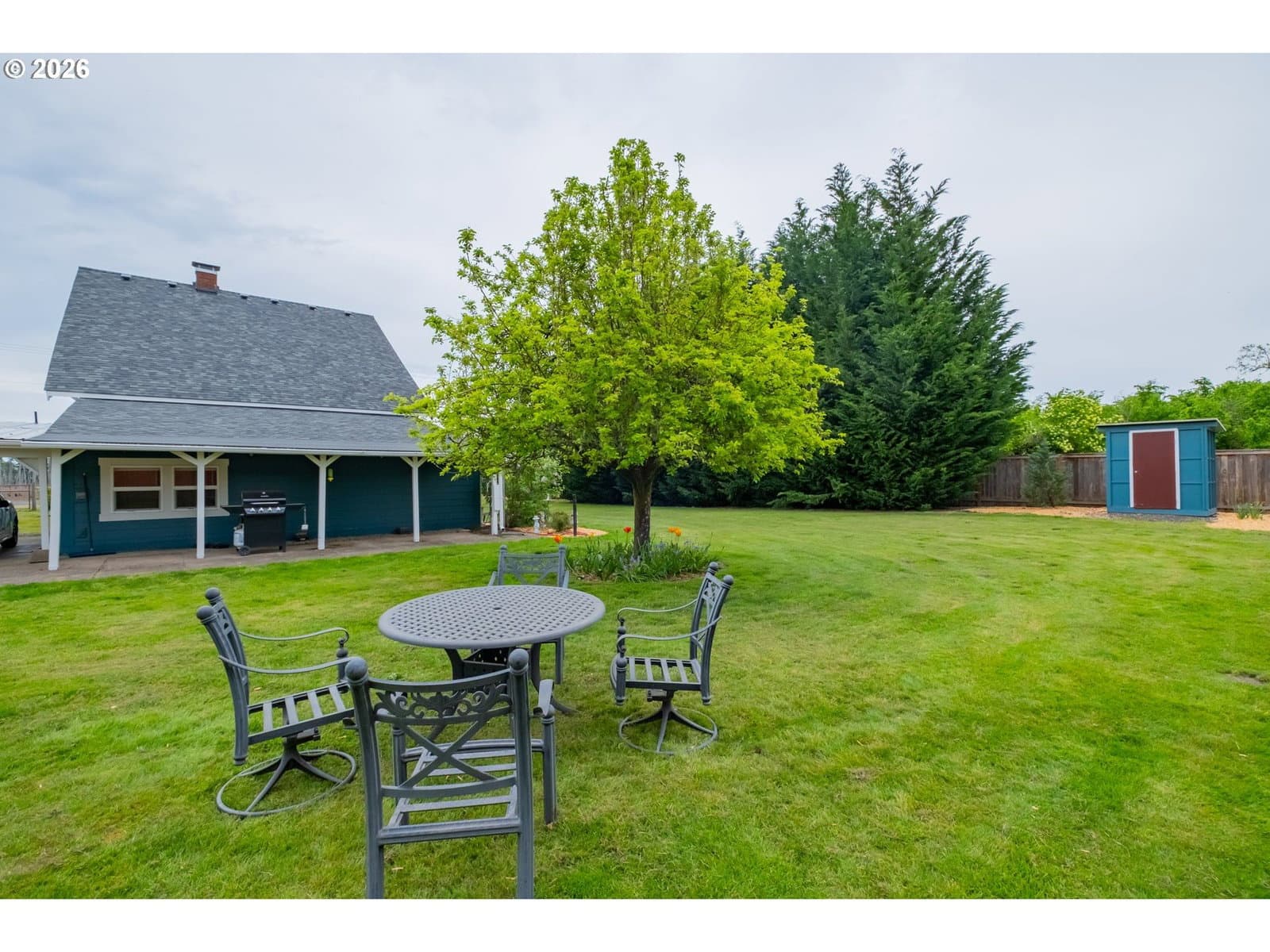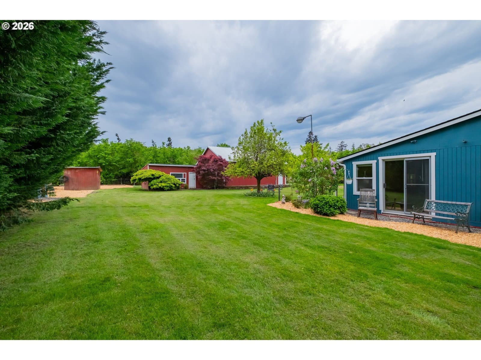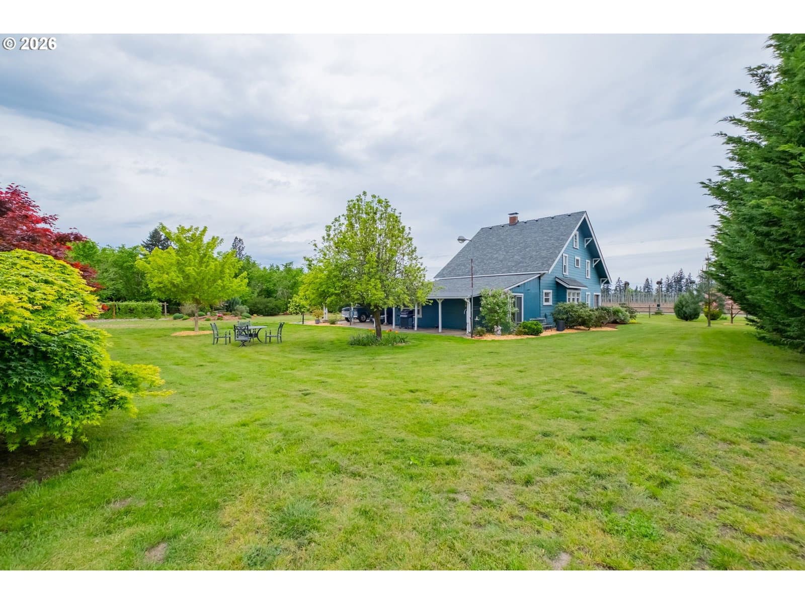 Step into a rare blend of history, comfort, and country living in this beautiful 1910 Craftsman on 0.85 acres, surrounded on three sides by orchards and farmland. With low county taxes, usable land, multiple outbuildings, and flexible living spaces, this home offers rare affordability and long term versatility in a lovely community. Thoughtfully updated while preserving its original character, this home features a new roof (March 2024), updated windows (2021), fresh interior and exterior paint, and a new stainless steel refrigerator. The kitchen features butcher block countertops [that flows] into a formal dining room with built in buffet and hutch. Original hardwood floors are preserved in many rooms, complemented by new LVP flooring in select areas. Additional spaces include a traditional wood pantry, sunroom, reading nook, flex room, and utility room. The main home rests on a poured foundation and is heated by forced air, with high speed internet available. The well system was updated in 2016 with a new pump and raised casing. Outdoors, the property features a fully fenced perimeter, solar powered gate opener (2021), ample parking, and a two car carport. The 30 x 36 barn has a 6 inch concrete floor and100 amp subpanel. While the adjacent 25 x 15 historic wood shop is equipped with 50 amp power. Here you have year round beauty with drought tolerant perennials, flowering shrubs, ornamental grasses, and seasonal blooms. A strawberry patch, large garden area, established fruit trees and berries including Bartlett pear, sweet cherry, Honeycrisp apple, marionberries, and blueberries. Located only 4 minutes to Jones Farm Produce, 10 minutes to Keizer Station, and 12 minutes to Woodburn Premium Outlets. Quick access to I5 makes commuting simple, while Wheatland Ferry and Willamette Mission State Park are nearby.