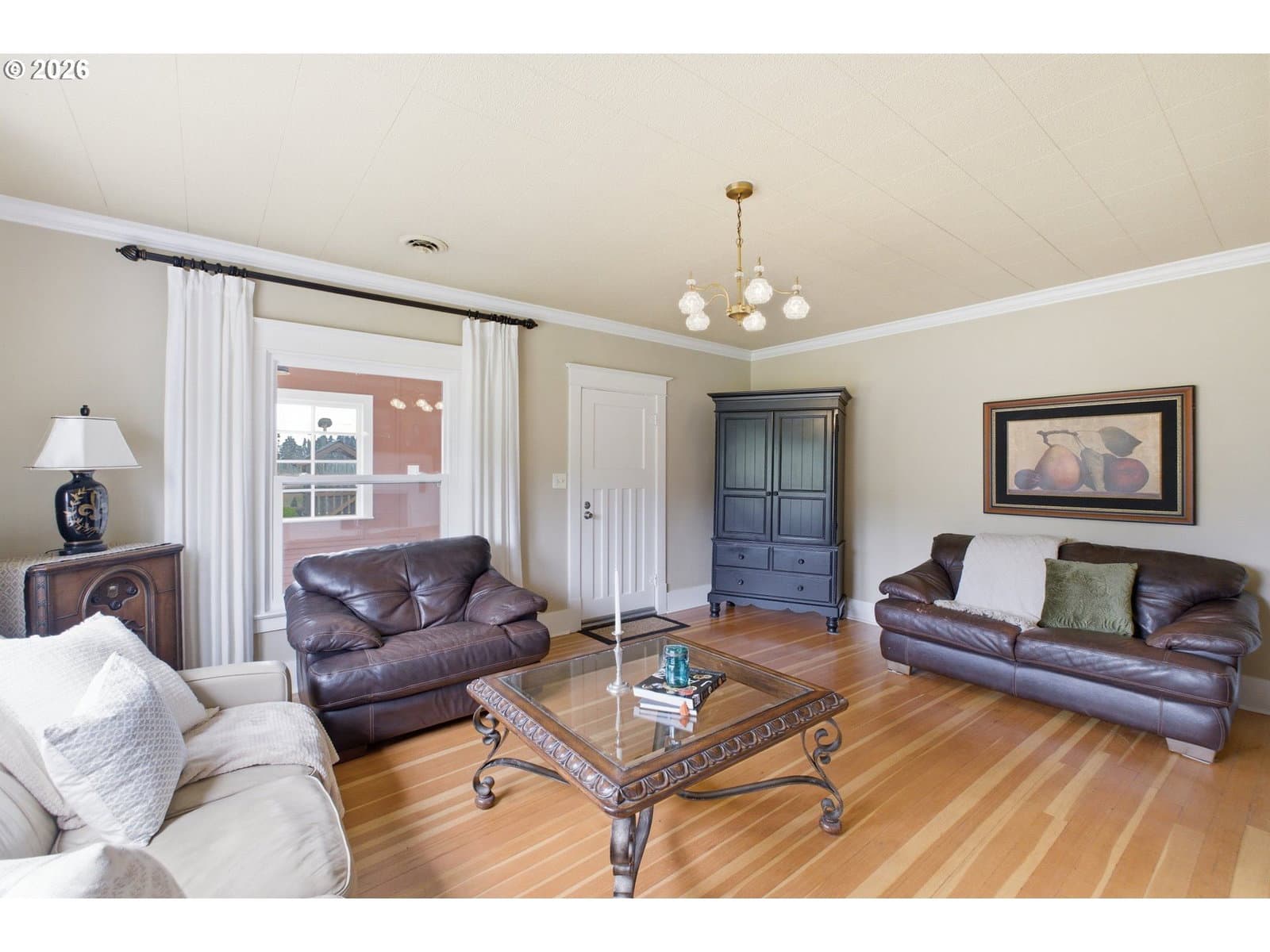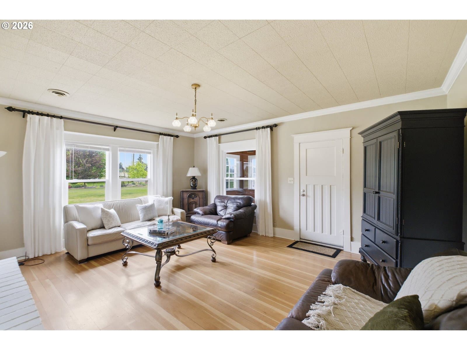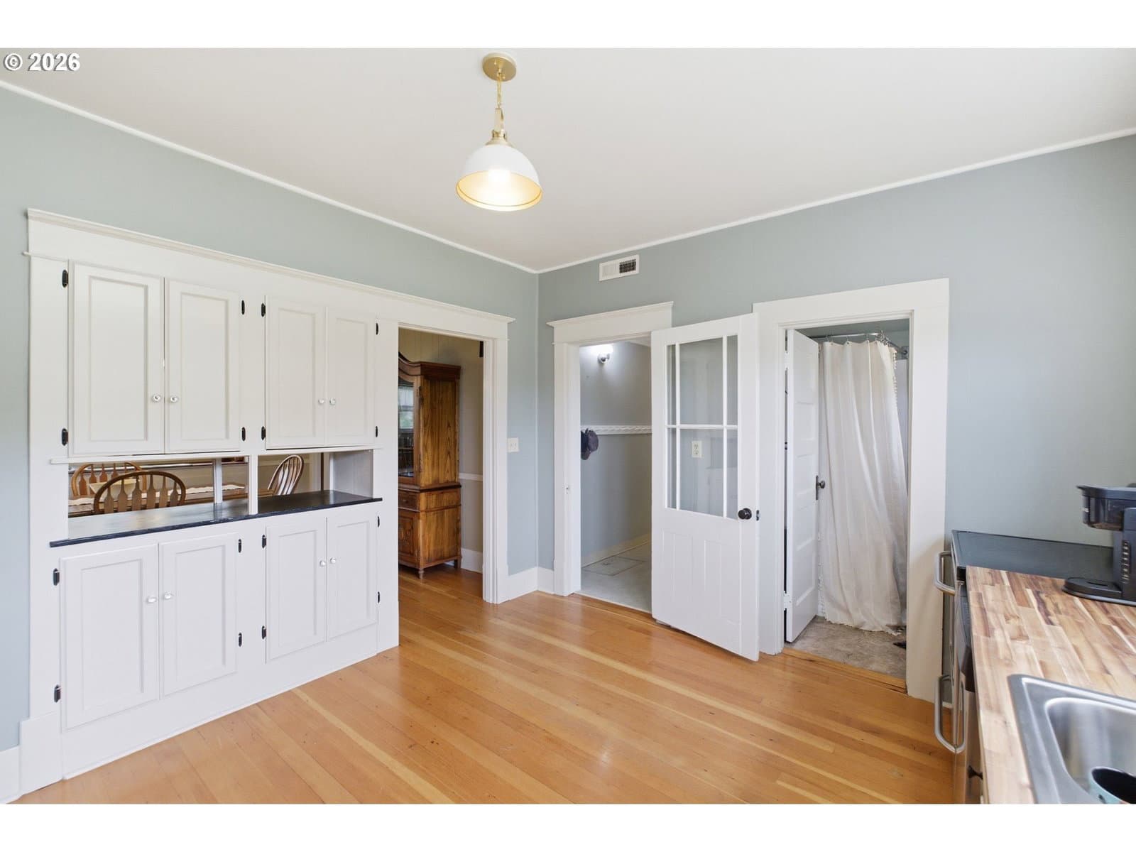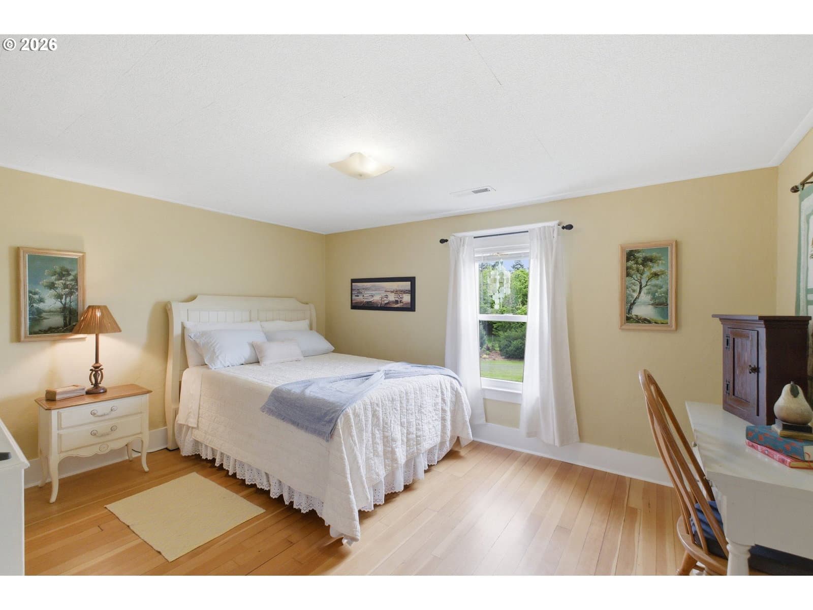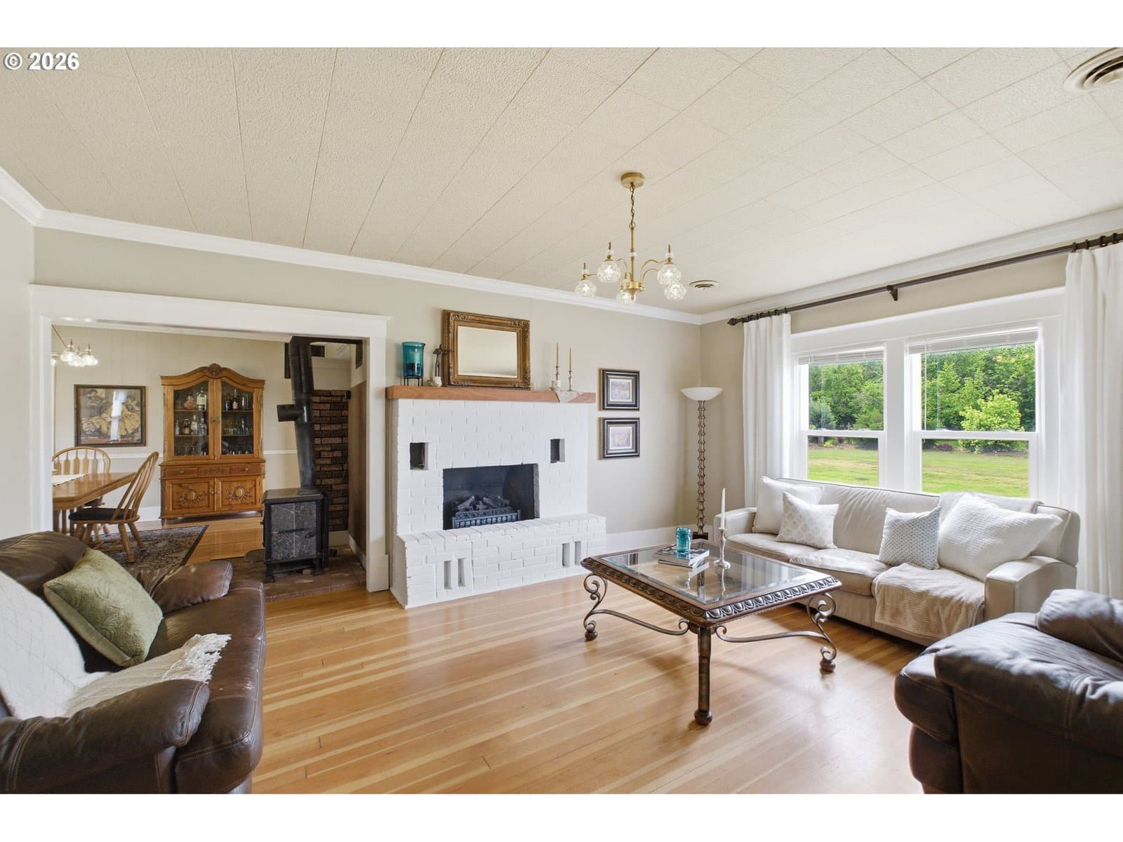 Step into a rare blend of history, comfort, and country living in this beautiful 1910 Craftsman on 0.85 acres, surrounded on three sides by orchards and farmland. With low county taxes, usable land, multiple outbuildings, and flexible living spaces, this home offers rare affordability and long term versatility in a lovely community. Thoughtfully updated while preserving its original character, this home features a new roof (March 2024), updated windows (2021), fresh interior and exterior paint, and a new stainless steel refrigerator. The kitchen features butcher block countertops [that flows] into a formal dining room with built in buffet and hutch. Original hardwood floors are preserved in many rooms, complemented by new LVP flooring in select areas. Additional spaces include a traditional wood pantry, sunroom, reading nook, flex room, and utility room. The main home rests on a poured foundation and is heated by forced air, with high speed internet available. The well system was updated in 2016 with a new pump and raised casing. Outdoors, the property features a fully fenced perimeter, solar powered gate opener (2021), ample parking, and a two car carport. The 30 x 36 barn has a 6 inch concrete floor and100 amp subpanel. While the adjacent 25 x 15 historic wood shop is equipped with 50 amp power. Here you have year round beauty with drought tolerant perennials, flowering shrubs, ornamental grasses, and seasonal blooms. A strawberry patch, large garden area, established fruit trees and berries including Bartlett pear, sweet cherry, Honeycrisp apple, marionberries, and blueberries. Located only 4 minutes to Jones Farm Produce, 10 minutes to Keizer Station, and 12 minutes to Woodburn Premium Outlets. Quick access to I5 makes commuting simple, while Wheatland Ferry and Willamette Mission State Park are nearby.