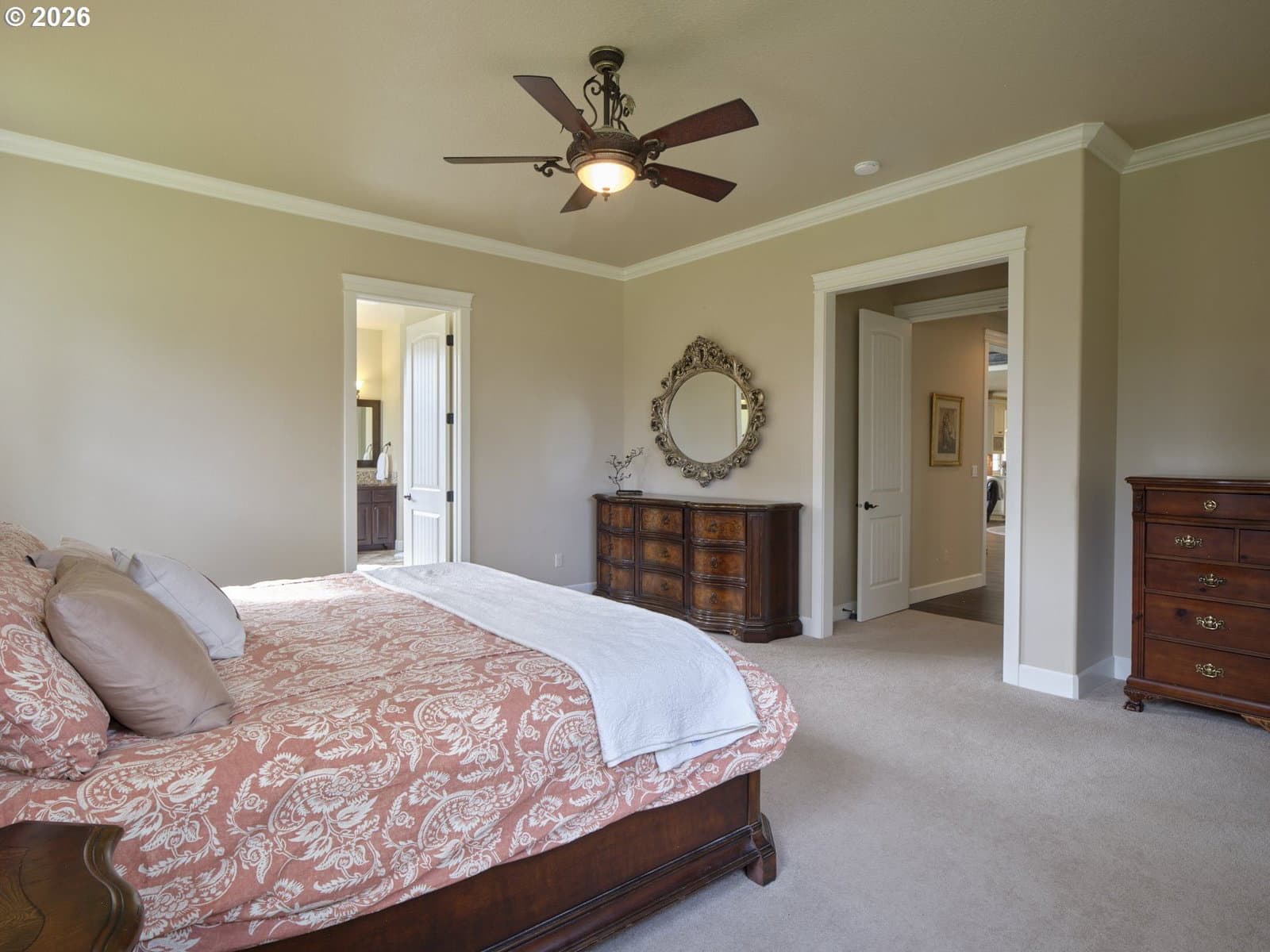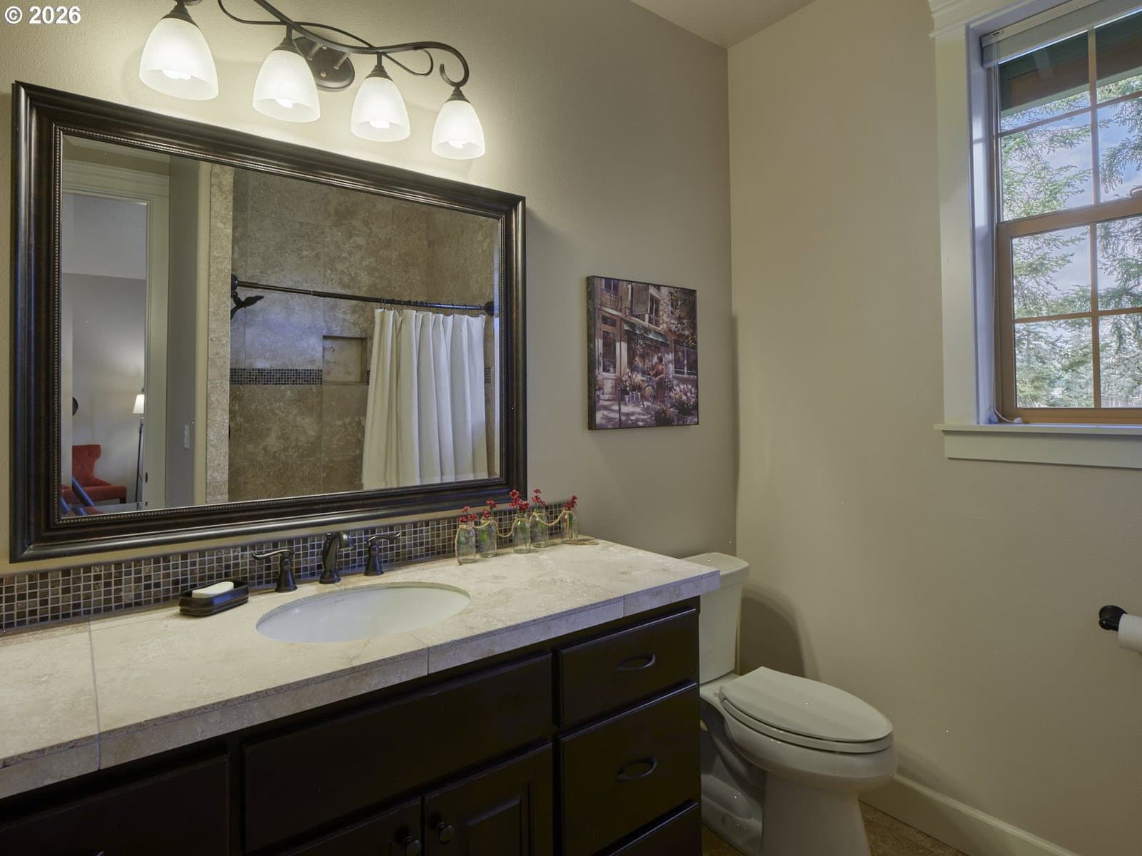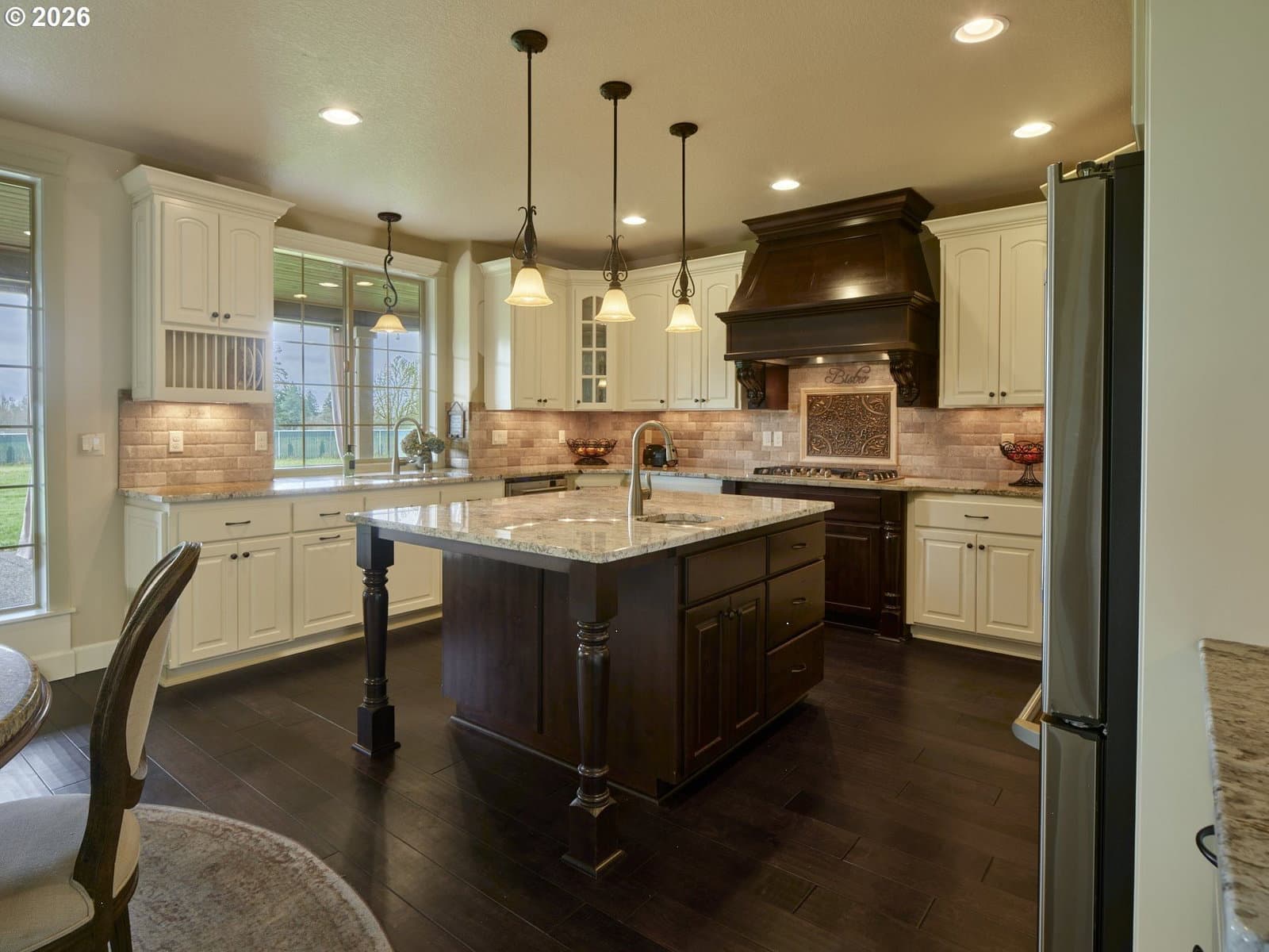 Come experience and fall in love with this exceptional French Country home- CUSTOM BUILT to perfection & nestled on 5 lovely acres! Take in breathtaking Pacific Northwest sunrises & sunsets! Here, you'll find peace, privacy, and endless possibilities! NO HOA means abundant space for outbuildings, ADU, animals, or whatever you desire! Set back from the road and adjacent to gated community makes for a tranquil setting ideal for walking & outdoor enjoyment. *The EXPANSIVE GREAT ROOM showcases soaring 20-FOOT CEILING, a dramatic west-facing wall of windows, dual ceiling fans, and impressive floor-to-ceiling stone fireplace flanked by custom built-in bookcases with elegant glass doors. *A private office features double glass French doors and built-in custom cabinetry. *The GOURMET KITCHEN is beautifully appointed with custom cabinetry, decorative oven hood, granite countertops, large island with sink, butler’s pantry, and an expansive walk-in pantry— perfect for entertaining & daily living. *The MAIN FLOOR PRIMARY SUITE is a luxurious retreat, offering a spacious bedroom, spa-inspired bath with dual vanities, jetted soaking tub, massive doorless dual-head shower, and a generous walk-in closet. High ceilings throughout (10’ in primary, 9’+ in main living areas), solid wood French entry door, and Italian travertine entry add to the home’s refined elegance. *Upstairs features a vaulted 2nd bedroom with full bath, abundant storage including a bedroom-sized storage room, and walk-in closets in all bedrooms. *A hidden custom bookcase door leads to a 415 SQ FT BONUS ROOM with LED lighting, refrigerator, direct-vent fireplace heater, and attic storage access— ideal for media, fitness, or hobby space. Oversized 1,500 sq ft garage has 4.5 bays and SHOP area- w/ LED lighting, workbench, utility sink, 220V outlets. *Dual zoned heat pump w/ back-up furnace & oversized propane tank. Gazebo with slate floor & path, Sprinklers & RV PAD. NOT ONE THING MISSING- THIS ONE TRULY HAS IT ALL!