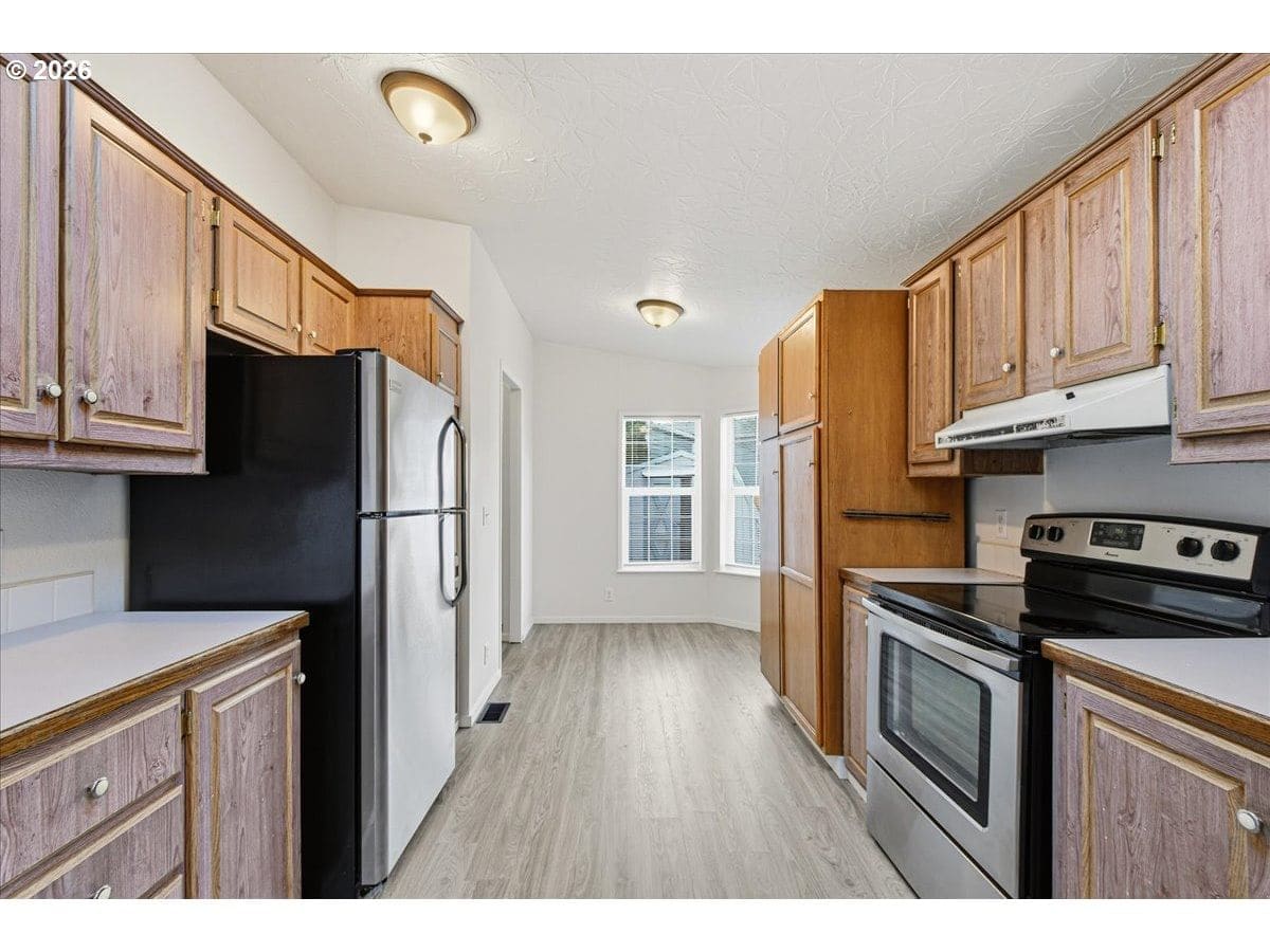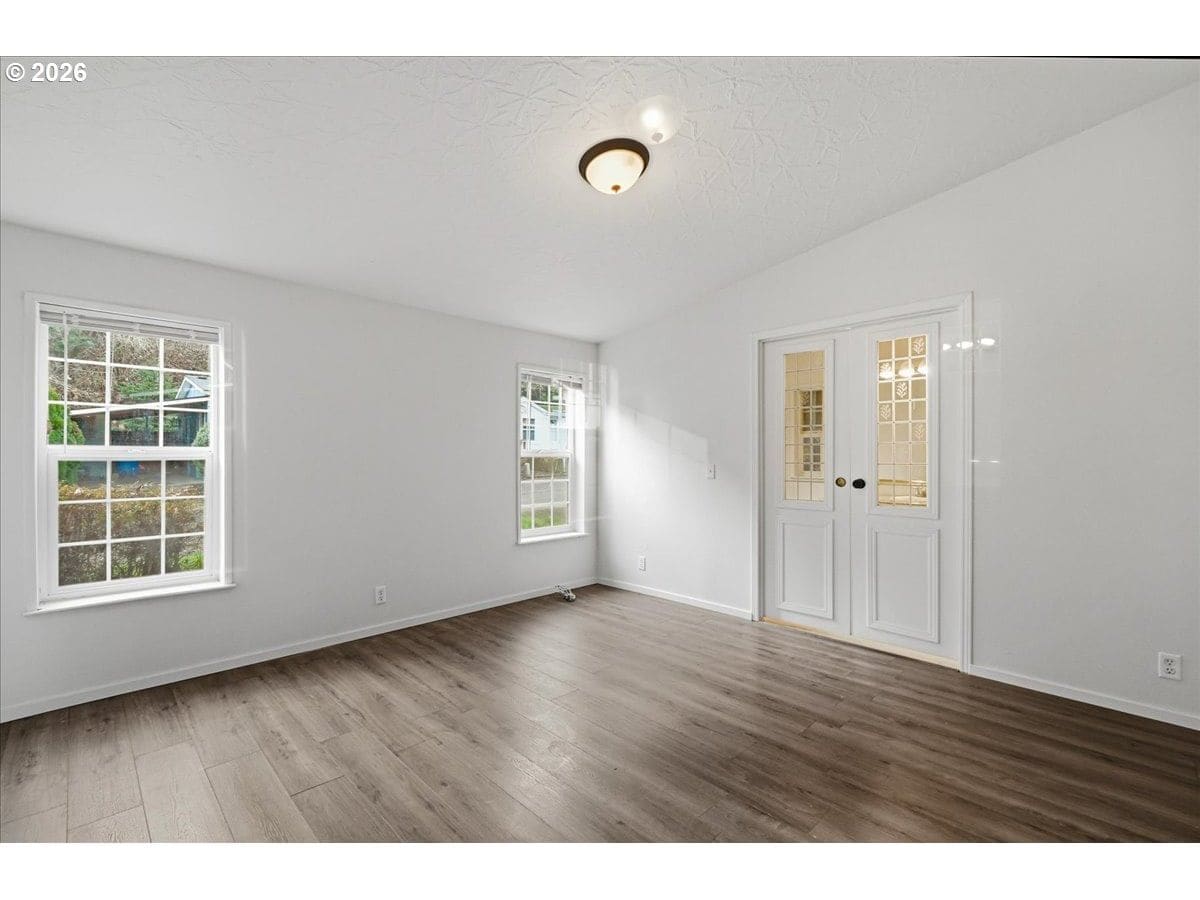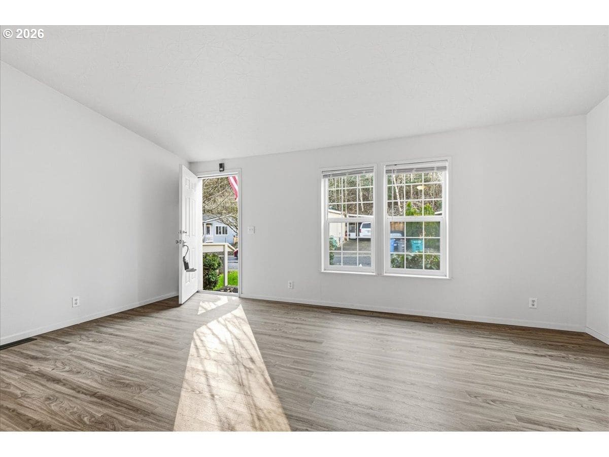 Desirable Ridgefield location just minutes to shopping, restaurants, Costco, and easy freeway access. This spacious ranch-style home, built in 1995 with recent updates, offers 3 bedrooms, 2 baths, and two bonus rooms providing flexible living space. Situated on a hard-to-find, nearly quarter-acre owned fenced lot—no space rent and no HOA dues. From the moment you enter, you’ll appreciate the open, spacious feel. The vaulted living room flows into the formal dining room and kitchen and features new laminate flooring. The light and bright kitchen offers a vaulted ceiling with skylight, abundant cabinet and counter space, a pantry, and a casual eating area. Updated stainless steel appliances are included, along with the refrigerator. The king-sized primary bedroom features newer laminate flooring and an ensuite bath with a soaking tub and separate shower. The conveniently located utility room includes storage cabinets and a washer and dryer are both included. The oversized, extra-deep two-car garage includes two bonus rooms—ideal for hobbies, a workshop, or flex space—or remove them to enjoy approximately 700 square feet of garage space. An additional parking pad provides extra parking. A wheelchair ramp from the garage to the home enhances accessibility. The private, fenced backyard includes a storage shed and ample room for gardening or outdoor activities. Backyard decks have covered outdoor enclosures for dogs or cats with access to pet doors inside the home. A quiet, low-traffic loop adds to the neighborhood’s privacy. Don't miss out on this great opportunity to call home. OPEN HOUSE TODAY (1/23) 3-5PM