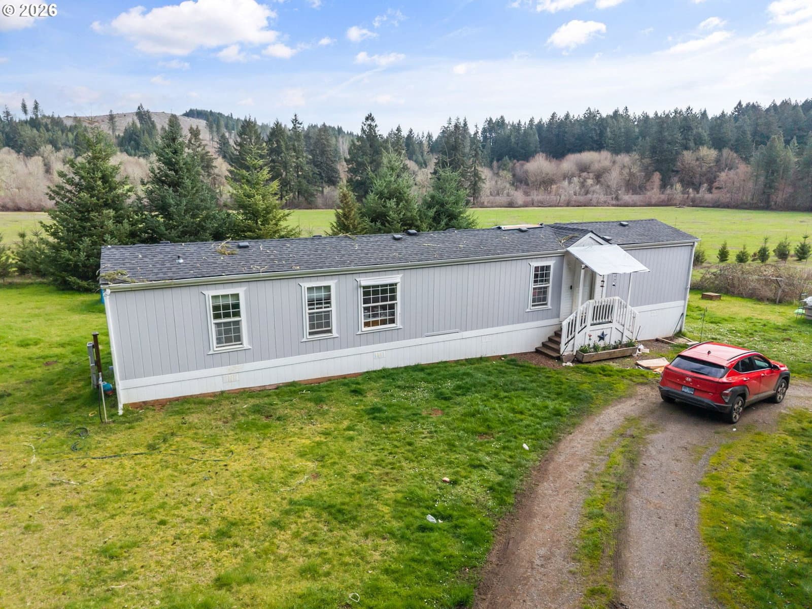21days on marketGorgeous 57.74 acre riverfront property! Two separate parcels w/forest zonings. Established residence, barn, storage, office & full RV hookups! Enjoy approximately 26 forested acres w/roads and trails for easy access. A logging company roughly estimated merchantable timber of 425,000 board feet & over $300,000 in gross income potential. Buyer to complete their own investigation and verification of merchantable timber potential. Approximately 26 pasture acres, fenced and cross-fenced for your horses, cows, and farm activities! Over 620ft of Long Tom River Frontage. Two Creeks. 1995 Manufactured Home set in a private cove of trees. Spacious Barn (50'x60') w/dual sliding doors on opposite ends for easy pass-through, overhead lighting & 220V power. Storage Building (50'x16') w/concrete floor, lights, power, and new roof in 2025. Heated Office (19'x25') w/full bathroom! Multiple wells, with the newest drilled in 2023 and yielding 120 gallons per minute! Standard septic system installed new in 2012. The tranquility and acreage you've been looking for- just 10 minutes to Fern Ridge Lake & 15 minutes to Eugene!