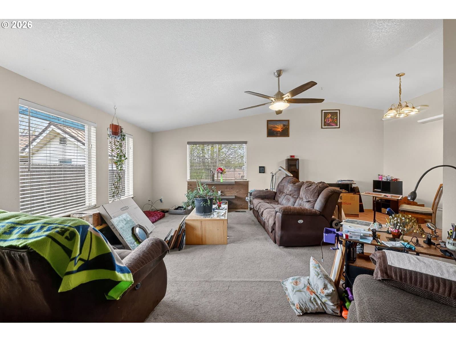 This beautifully maintained one-level home offers comfort, space, and stunning surroundings, featuring 3 bedrooms and 2 bathrooms with an easy, accessible layout ideal for a variety of lifestyles. High vaulted ceilings and generously sized rooms create an open and airy feel throughout the home.The living room is warm and inviting with wall-to-wall carpet, a ceiling fan, and plenty of space to relax or entertain. The dining area features sliding doors that bring in natural light and provide seamless access to the outdoors. The kitchen is both functional and welcoming, complete with a built-in dishwasher, pantry, and ample workspace. All bedrooms offer wall-to-wall carpet, including the spacious primary suite, which features a ceiling fan and a private ensuite bathroom for added comfort.Step outside to enjoy the beautiful yard, complete with a tool shed and plenty of space for gardening or outdoor activities. An attached garage adds convenience, while the home’s location on the edge of town provides peaceful living with amazing, unobstructed mountain views—protected by the nearby school and football field. With easy access and a layout suited for limited mobility, this home combines practicality, charm, and a truly special setting.