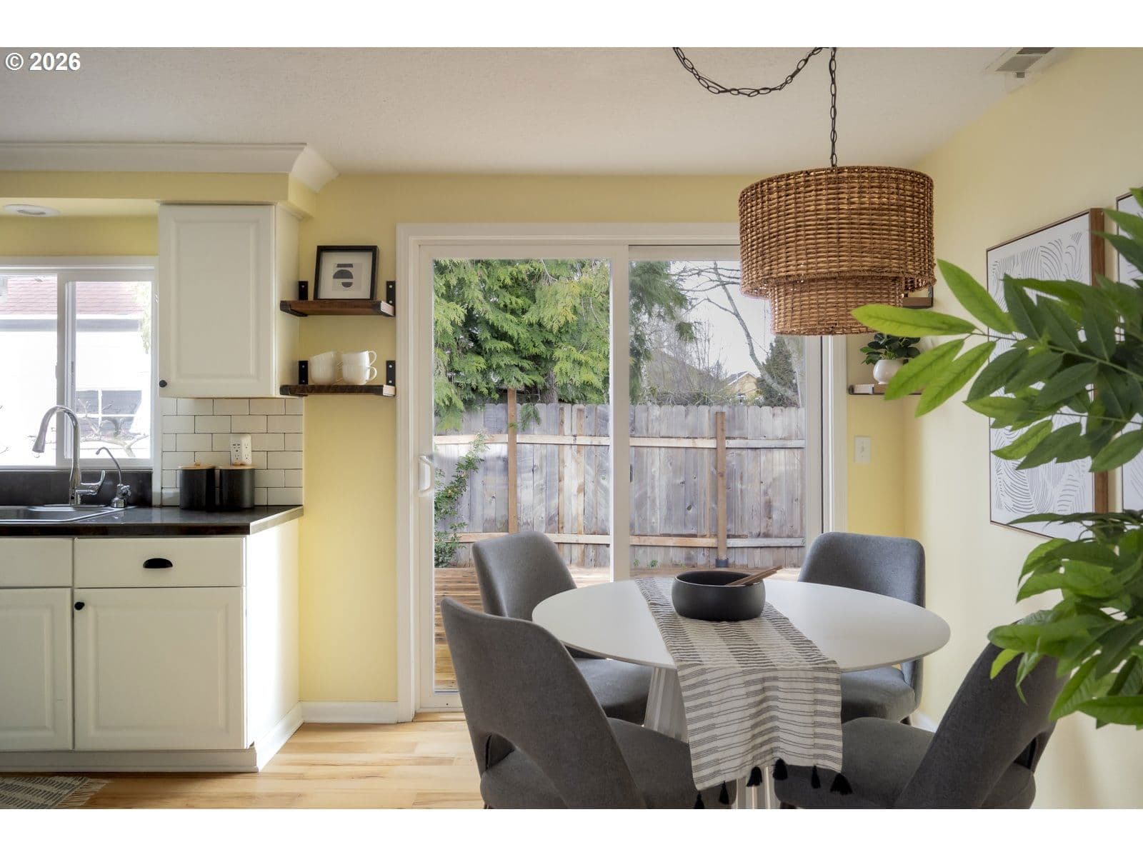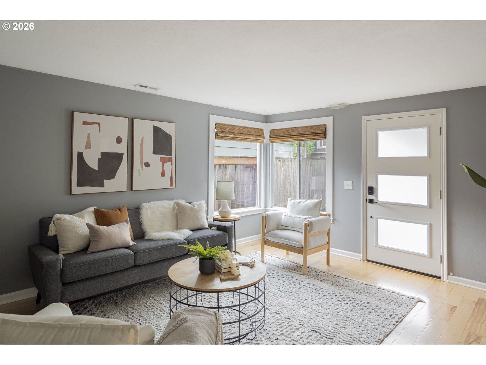This sweetheart Portsmouth ranch has been deeply loved and it shows- the many upgrades over the years were done with care and thoughtfulness, focusing on making the house not just livable, but a true joy to live in! The efficient floor plan flows well, with the entertaining space at the front of the house and three spacious bedrooms, including a primary with full ensuite bath, in the back. The comfortable kitchen is open to the dining space, and connects directly to the fully fenced yard, which features a spacious deck, low-maintenance native plantings and a convenient tool shed for gear storage. The two car garage is icing on the cake! Numerous updates include: engineered wood floors, a newer induction range in the kitchen, an added slider out to the backyard deck, a repaved driveway, a rehabbed crawlspace, plumbing updates, and newer systems, including a 2012 furnace, 2018 a/c, and a 2026 hot water heater. Located about a half mile from both the lovely Columbia Park and the food carts at Chill N Fill, with easy access to UoP! [Home Energy Score = 6. HES Report at https://rpt.greenbuildingregistry.com/hes/OR10245100]