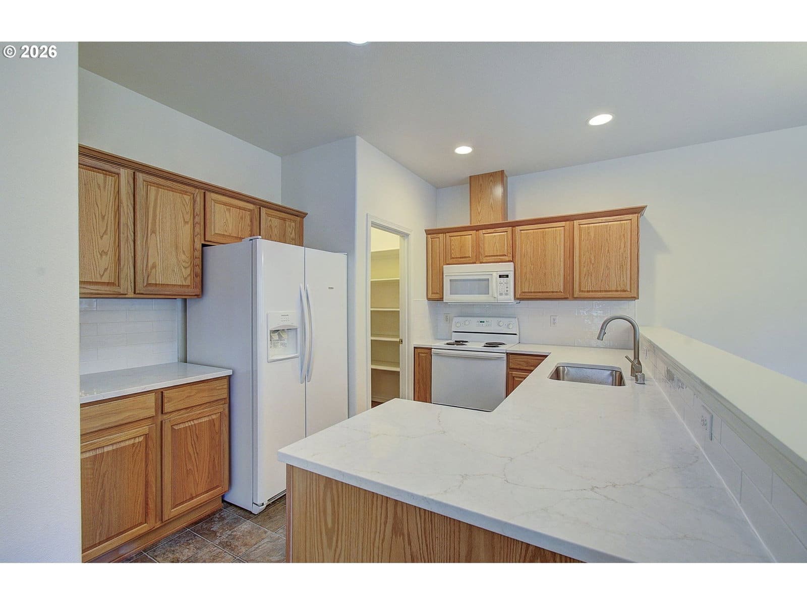 Super nice home located in north Hazeldell with easy access to highways, freeways and all services. Large and roomy with new quartz countertops, luxury vinyl flooring on the main floor, all new interior paint last year and all new carpeting upstairs. Primary bedroom is quite large with WI closet, private bathroom and new bathroom fixtures with quartz top. 2nd bedroom is also quite large with a WI closet. Utility room is located on the upper floor and has a sink with cabinet plus upper cabinets over the appliances. This home provides lots of storage! On the main floor the kitchen has an abundance of counter workspace plus a lrg walk in pantry; newer electric range, refrigerator, dishwasher, BI microwave and garbage disposal. New roof in 2024 with a complete tear off; new HVAC system (furnace and AC condenser) in 2023. This nice home has fibre cement siding, gas furnace and hot water heater for energy efficiency and AC to keep cool in the summer! Yard has sprinklers for ease of lawn care; covered front porch to enjoy sitting outside! Seller will provide a one year home warranty for buyer. Washer and dryer in home can stay if buyer would like. Seller is a licensed Washington Realtor. Seller may elect to do a 1031 Exchange at no cost to buyer.