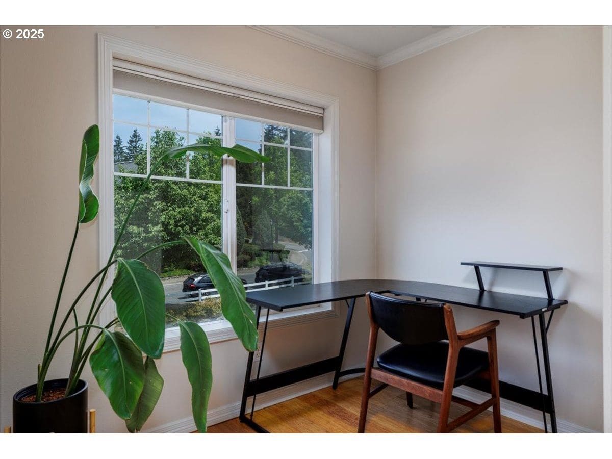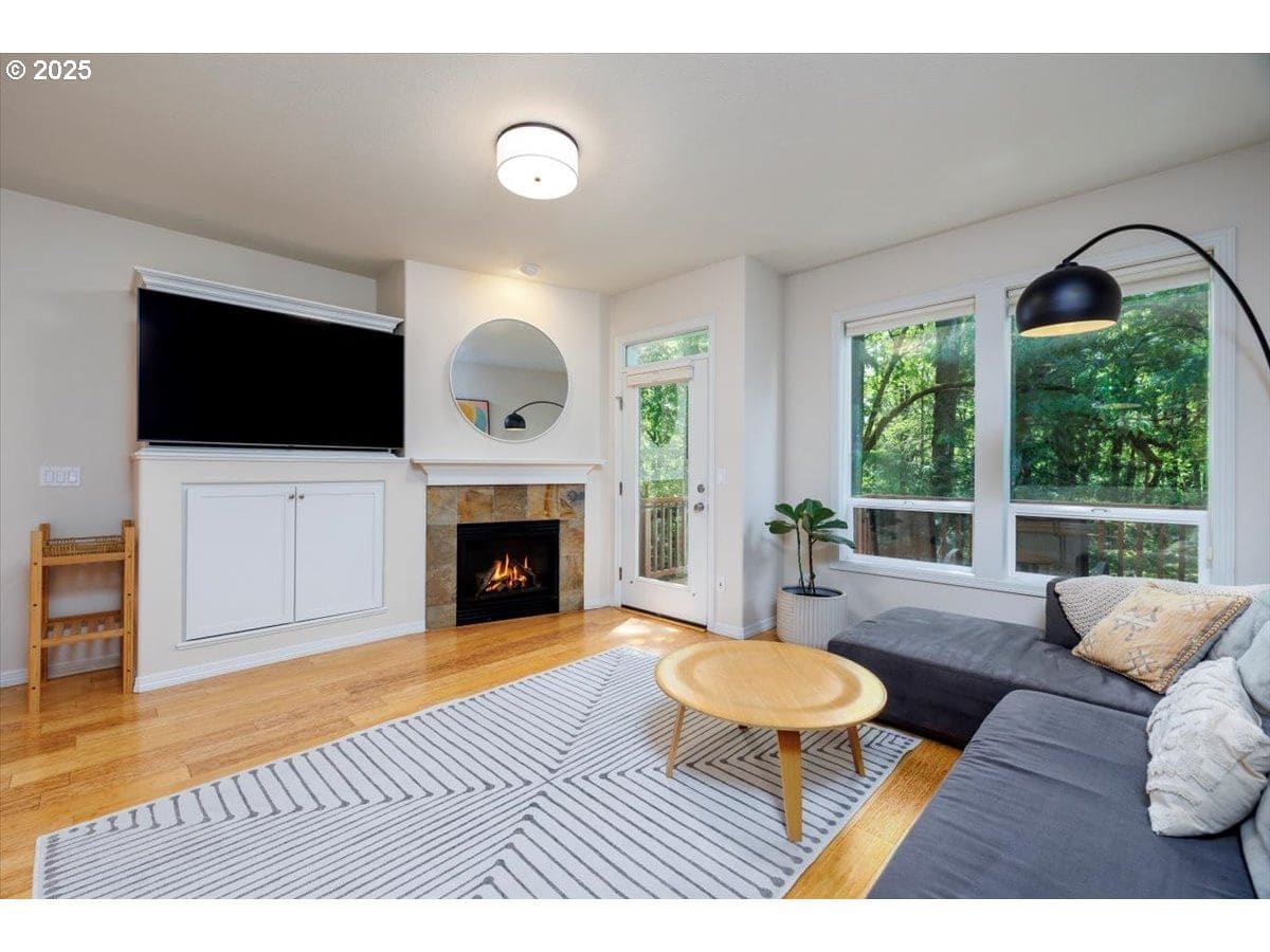 Welcome to this meticulously maintained townhouse nestled in the tranquil tree-lined setting of Cedar Mill and Forest Heights. This light-filled home features beautiful bamboo flooring throughout the main living areas and a slate tile entryway that sets the tone for refined living.The spacious living room opens to a private entertaining deck with serene views of lush green space—perfect for relaxing or hosting guests. The kitchen boasts granite countertops, gas range, and ample cabinetry for all your culinary needs. The generous primary suite includes an en-suite bath, while the expansive second bedroom spans the width of two rooms and features two full closets. The third bedroom offers direct access to a second deck through a sliding glass door, ideal for a home office or guest retreat. Enjoy three distinct outdoor living areas, a deep two-car garage with an electric car charging station, and additional storage space. Conveniently located near Cedar Hills shopping center, grocery stores, and popular restaurants. Minutes from Forest Heights trails, Mill Pond Park, and scenic walking paths. Experience the perfect blend of nature, comfort, and accessibility in this exceptional townhouse.