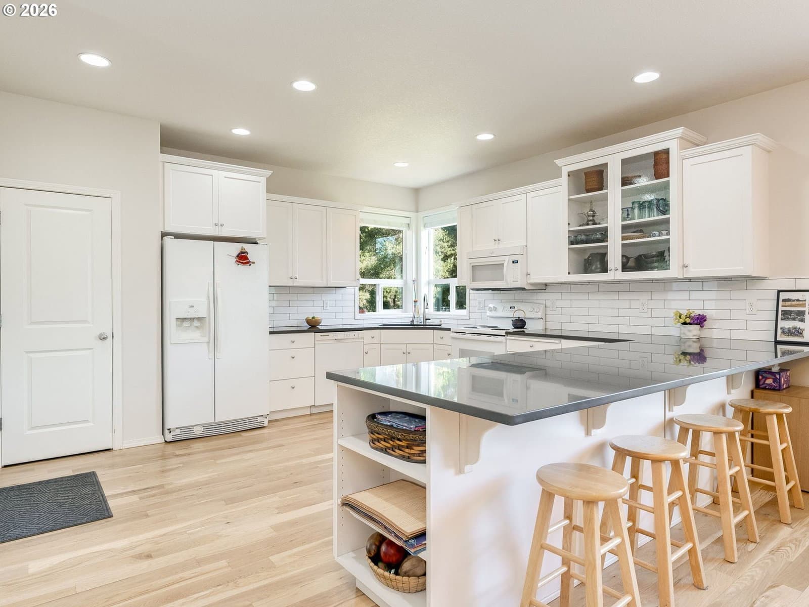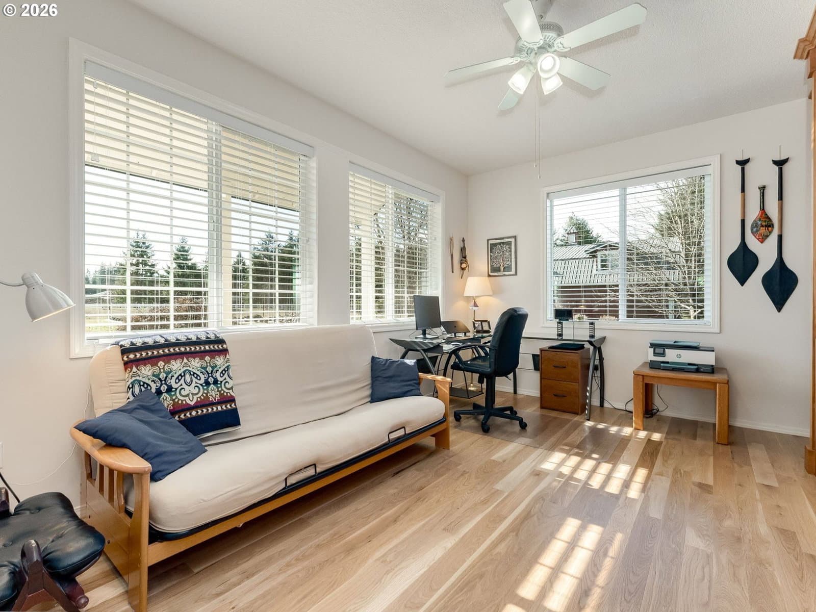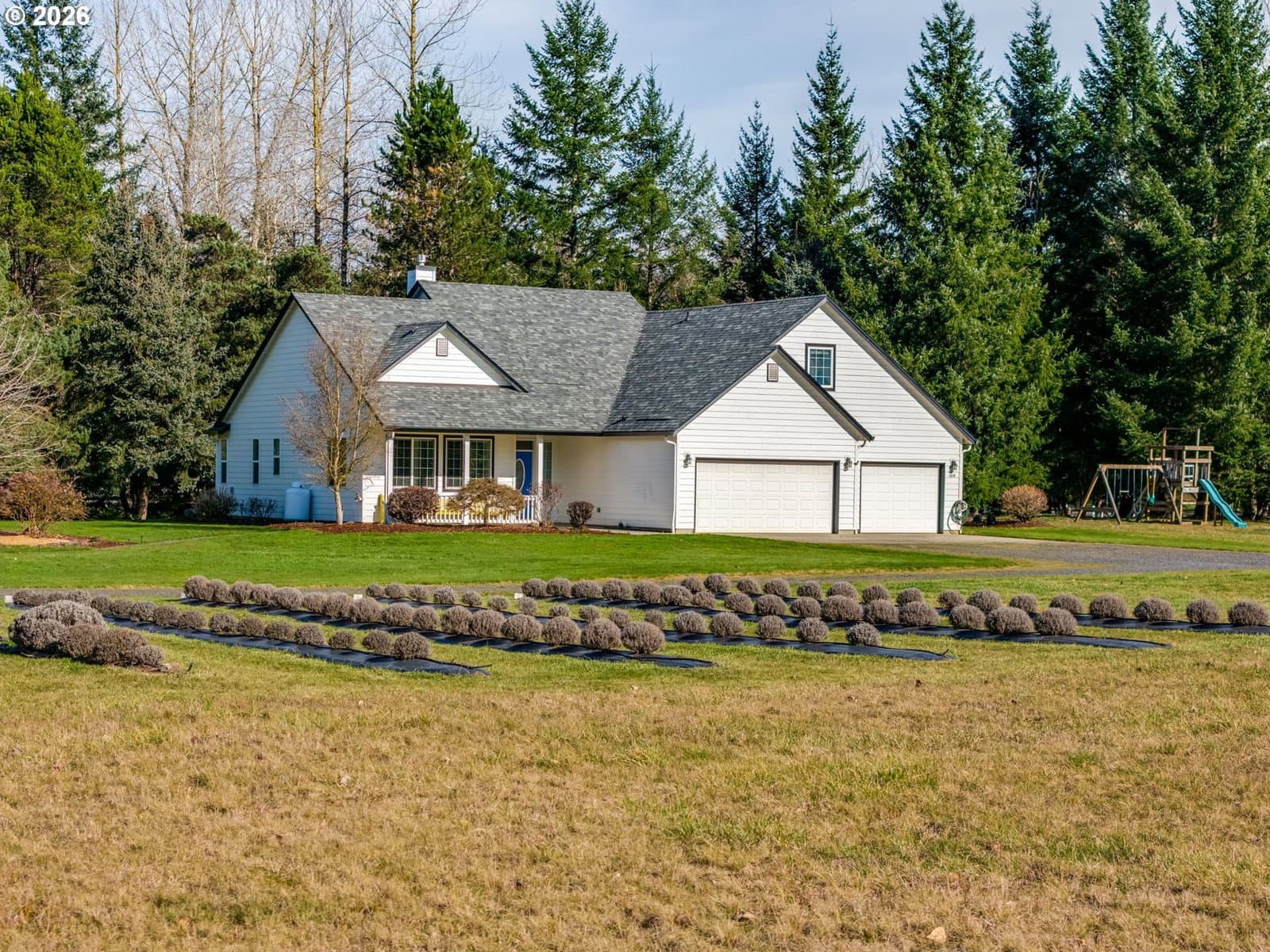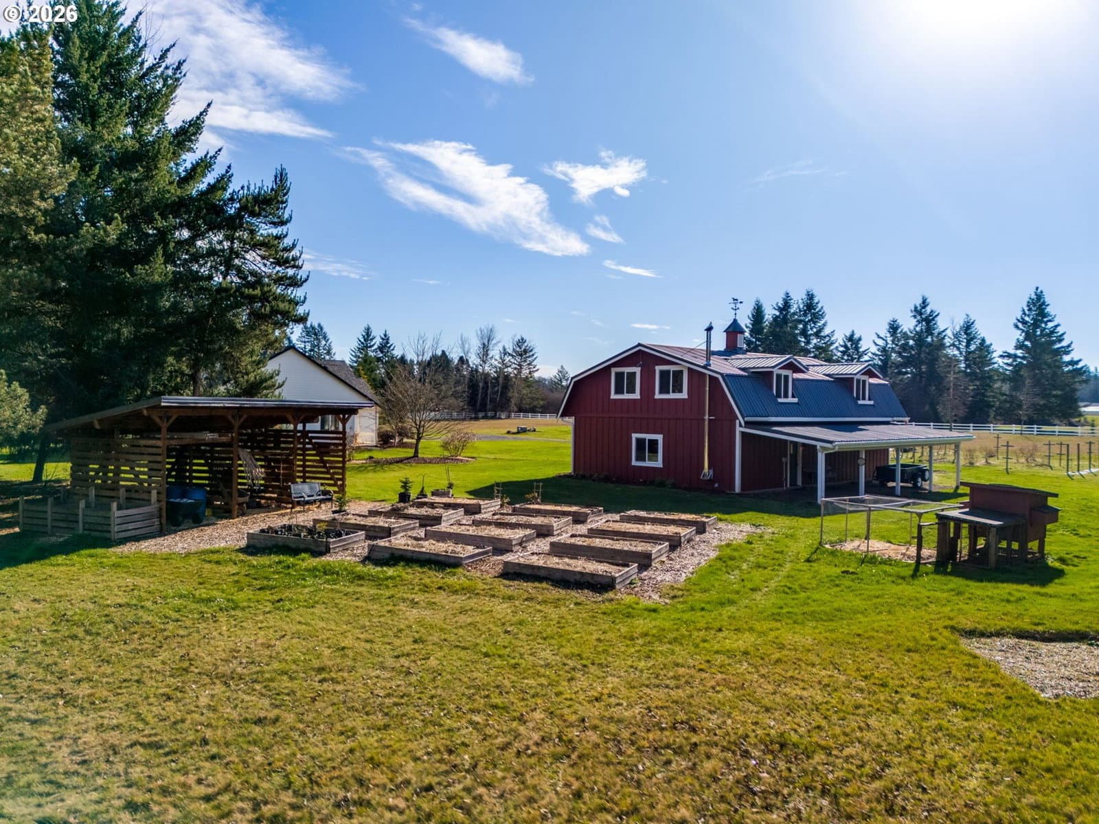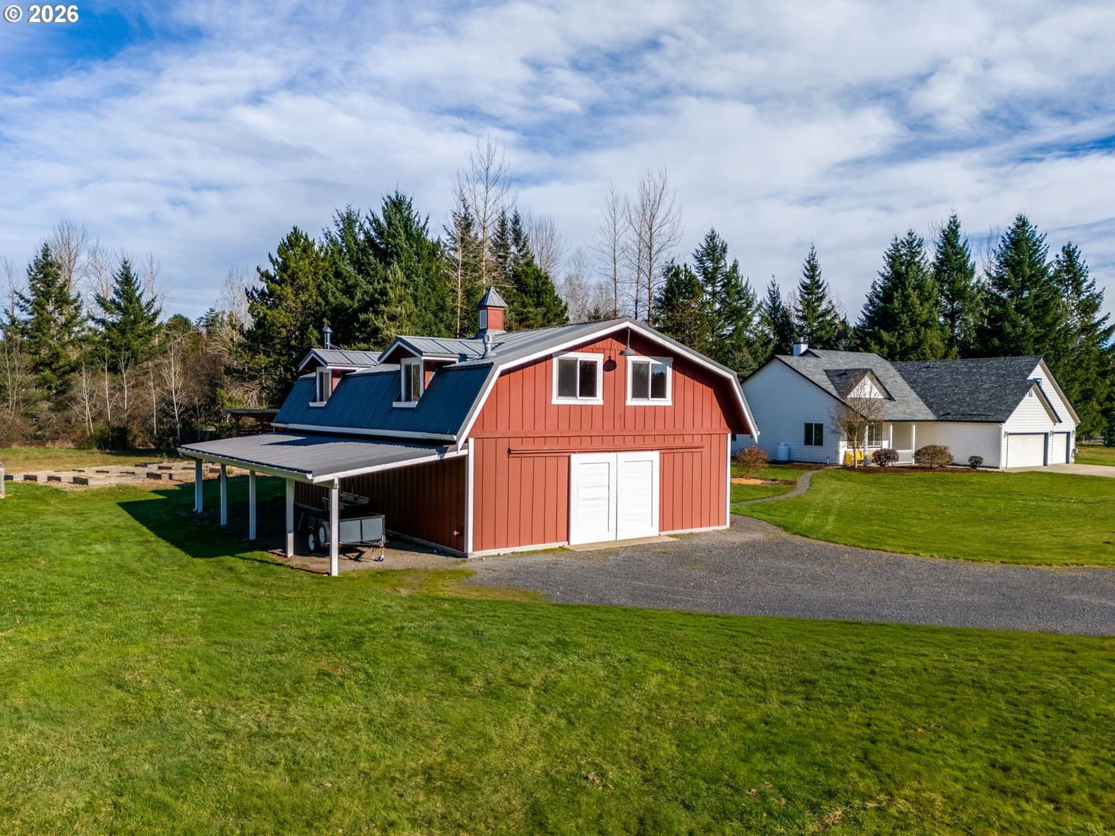 Hobby farm perfection just minutes from downtown Camas in Camas School District. This gated, partially fenced 5-acre flat parcel offers privacy, productivity, and versatility with a seasonal pond, mature evergreen grove, and established irrigation throughout. The land is truly turnkey for hobby farming with irrigated raised garden beds, nearly 100 mature English lavender plants, and thriving grapes, raspberries, blueberries, and apple trees. The 2006 custom-built home with thoughtful design and timeless finishes. The main level features a spacious primary suite, hardwood oak floors, a gas fireplace, and a den/office with custom cherry wood cabinetry. Flexible living continues with a bonus room w/closet, 3 bedrooms/3 full bathrooms, laundry room, pantry, and covered patio ideal for year-round enjoyment. Recent updates include a new roof (Sept 2025). Adding exceptional value is the 2017-built barn/guest house (ADU)—a 2,472 square foot insulated structure designed for work, recreation, or multi-generational living. The lower level includes a 46’ x 32’ shop, rec room/storage room, full bathroom, woodstove, washer/dryer hookups, built-in shelving, plus a 552 SF covered carport and outdoor double farm sink. Upstairs, the charming apartment features a great room with kitchenette, large bedroom, full bathroom, gas fireplace, wood floors, open beams, pantry, and dormers with Cedar-lined window seats. A rare opportunity to enjoy peaceful rural living with income potential, guest accommodations, or workspace—all just three miles from downtown Camas.