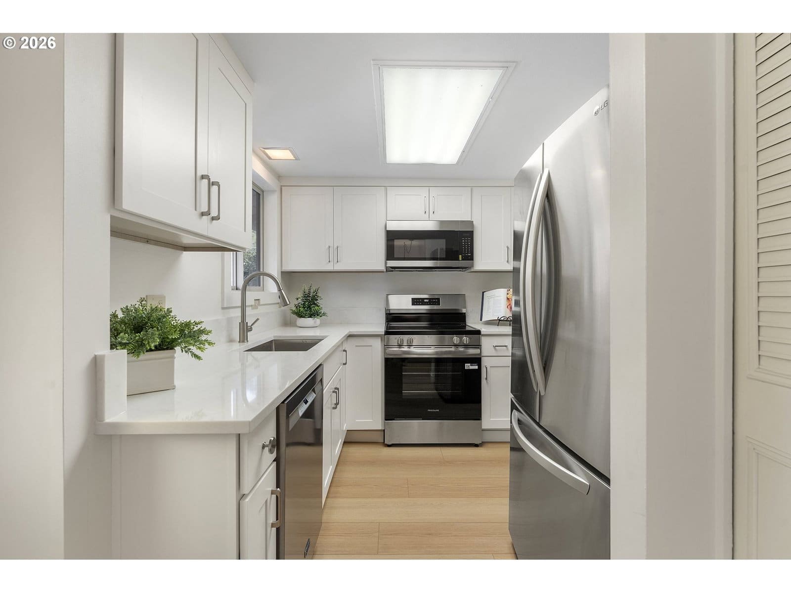 2days on marketTucked into a quiet corner of the sought-after King City Civic Association, this charming 1-bedroom, 1-bath condominium at 11575 SW Crown Ct Unit #2 offers the perfect blend of ground floor access with no step entry, comfort, style, and easy living—all in a beautifully updated 672 sq ft package. Step inside and feel instantly at home. Fresh interior paint, new doors, molding, and baseboards create a crisp, modern feel, while luxury vinyl plank flooring flows throughout (with cozy carpet in the bedroom). Sunlight pours through vinyl windows and the sliding glass door, illuminating a thoughtfully refreshed interior. The kitchen shines with new cabinetry, sleek countertops, stainless steel appliances, and a built-in microwave—making everyday living and entertaining effortless. The bathroom has been tastefully updated with a new vanity and a stunning walk-in tile shower. Year-round comfort is yours with an efficient mini-split system for heating and cooling. Step outside to your large view deck—perfect for morning coffee as the sun rises or unwinding at the end of the day. Just a short “Par 3” stroll to the clubhouse, you’ll enjoy access to golf, a pool, a library, and a vibrant calendar of activities. The HOA simplifies life by covering water, sewer, garbage, cable, exterior maintenance, landscaping, and more. With parking right in front (plus optional carport rental) and a dedicated storage unit, convenience is built in. Ideally located near shopping and major routes, this home offers both tranquility and accessibility. Whether you're relaxing at home or embracing the active community lifestyle, this inviting condo is your gateway to the best of King City living.