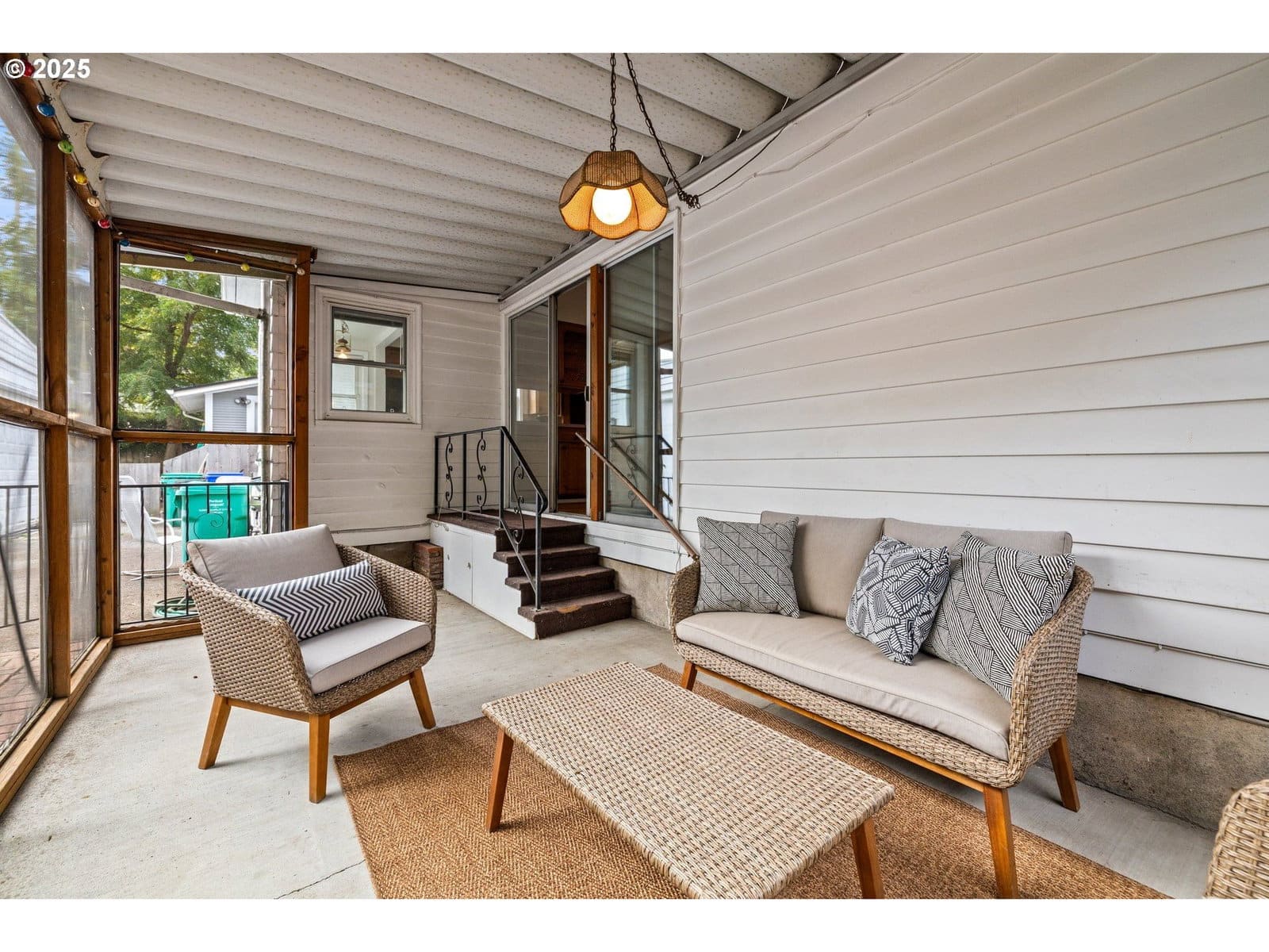Sweet Grant Park Bungalow on quiet street. The main floor features two comfortable bedrooms and a full bath, along with a formal living room anchored by a fireplace, a bright dining room, and a cheerful kitchen with a sunny eating nook. Fresh interior paint and hardwood flooring has just been refinished, adding warmth and shine to the home’s original character. Upstairs you’ll find a third bedroom with extra space for guests, hobbies, or a home office. The lower level has vintage knotty pine character, complete with a family room and fireplace, full bathroom, laundry room, and generous storage. It’s the perfect spot for game nights, movie marathons, or simply hanging out. Outdoors features a fun screened-in back porch that lets you enjoy summer evenings bug-free while overlooking a private backyard ready for your planting additions. A detached two-car garage adds even more value and flexibility. With nearby parks, schools, shopping, and cafés just blocks away, this community offers comfortable living and convenience. [Home Energy Score = 1. HES Report at https://rpt.greenbuildingregistry.com/hes/OR10242181]