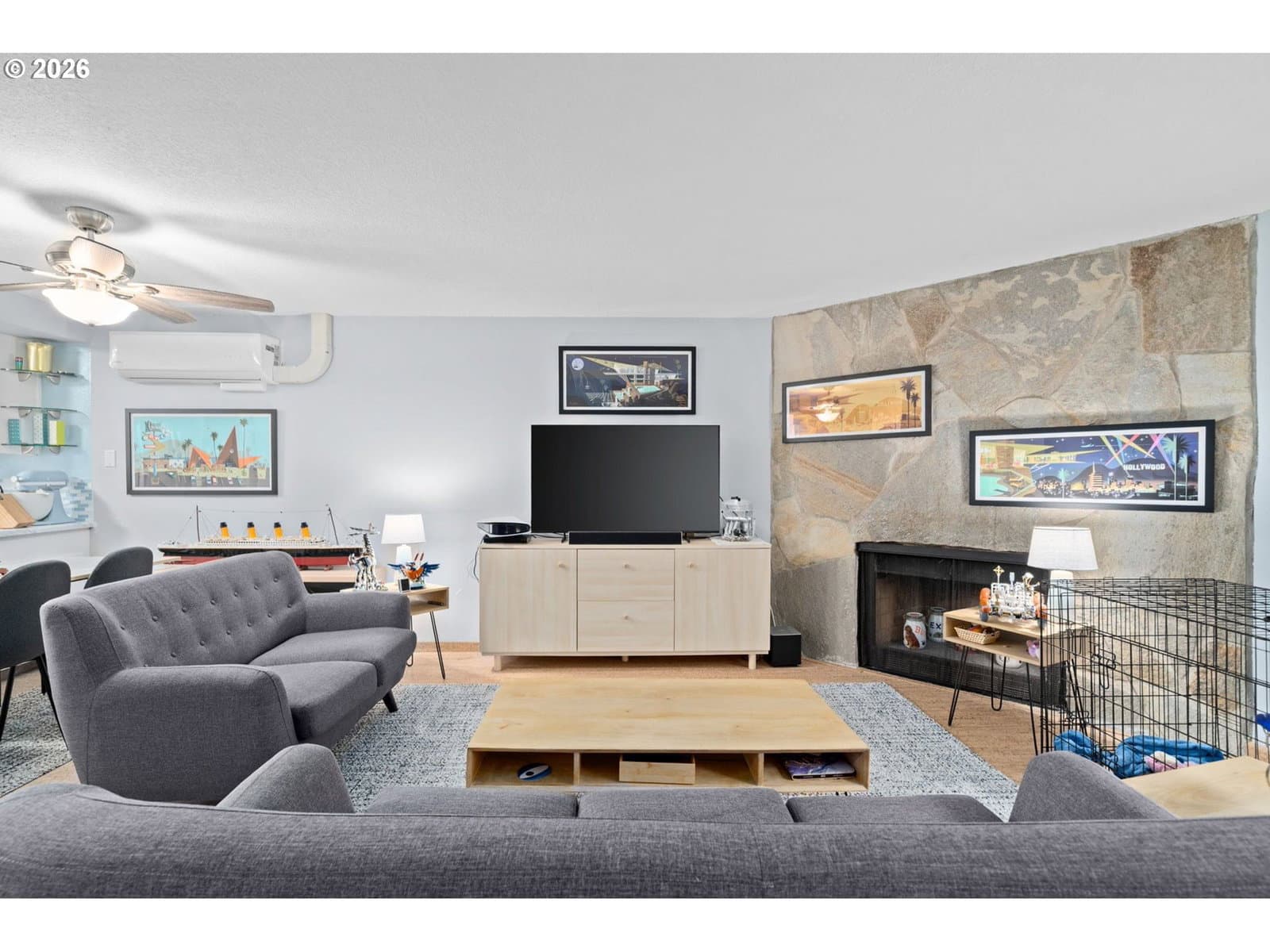 Nestled in the trees of Wood Village, this townhome on Treehill Drive is more than meets the eye. From the front of the home, an oversized garage encompasses the full lower level with room to park and store all your favorite things in one place. Down a tree filled path at the back of the property, a deck leads you to the back door or the second level of the town home. An open concept living space with remodeled kitchen, cork flooring and wood burning fire place make for an even more cozy feel amongst the trees. The top floor features two bedrooms both with ensuite bathrooms and a laundry closet. A mini-split heat pump system was recently installed for energy efficient heating and cooling. Schedule a showing and see why we love Wood Village!