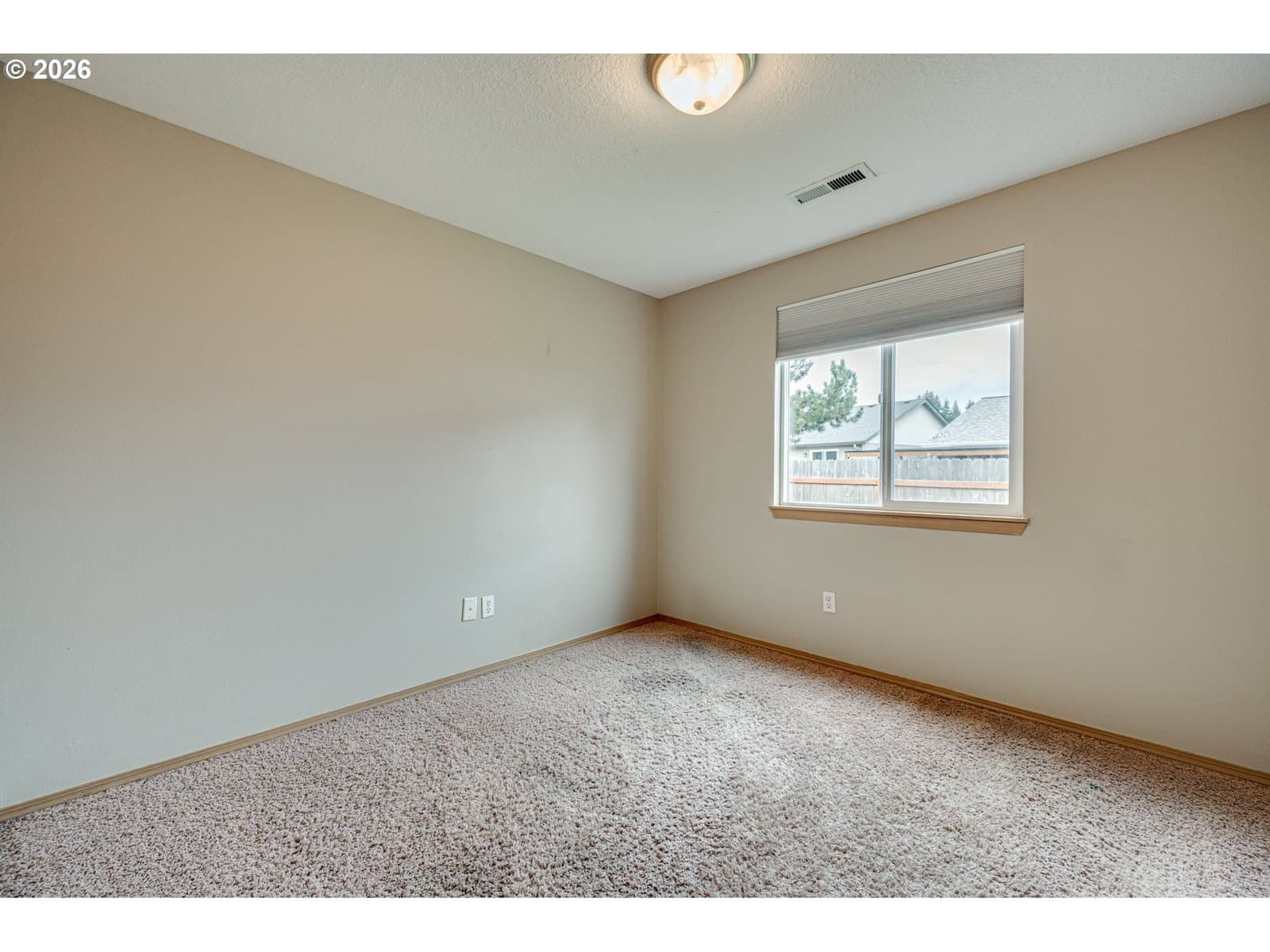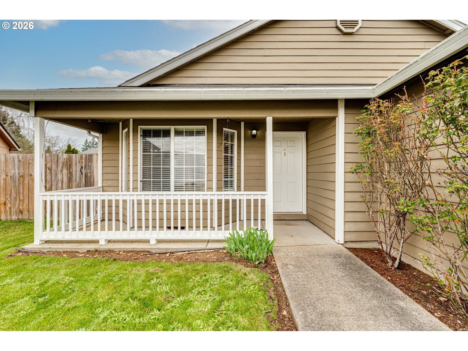 Welcome to this charming, move-in-ready ranch home nestled in a well-established Vancouver neighborhood! Featuring 1136 square feet of comfortable living space, this 3-bedroom, 2-bathroom property offers an inviting open-concept layout perfect for modern living. Step inside a bright and airy great room featuring vaulted ceilings, a cozy gas fireplace with a stacked stone tile surround, and a beautiful bay window that floods the space with natural light. The living area flows seamlessly into the dining space and kitchen, creating an ideal environment for entertaining. The kitchen is a standout with updated gray cabinetry, sleek countertops, a subway tile backsplash, and a convenient center island. The well-designed floor plan provides a private primary suite complete with a walk-in closet and an en-suite bathroom. Two additional bedrooms offer versatility for guests, a home office, or a growing family. A dedicated laundry room with built-in cabinetry adds to the home's practicality. Enjoy your morning coffee on the welcoming covered front porch, or host summer barbecues on the wood deck in the backyard. The large, fully fenced, level backyard is a private oasis, complete with a newer cedar privacy fence, mature trees, lush green lawn, and plenty of space for gardening or play. The home also features a spacious 2-car attached garage and an extended driveway for extra parking.