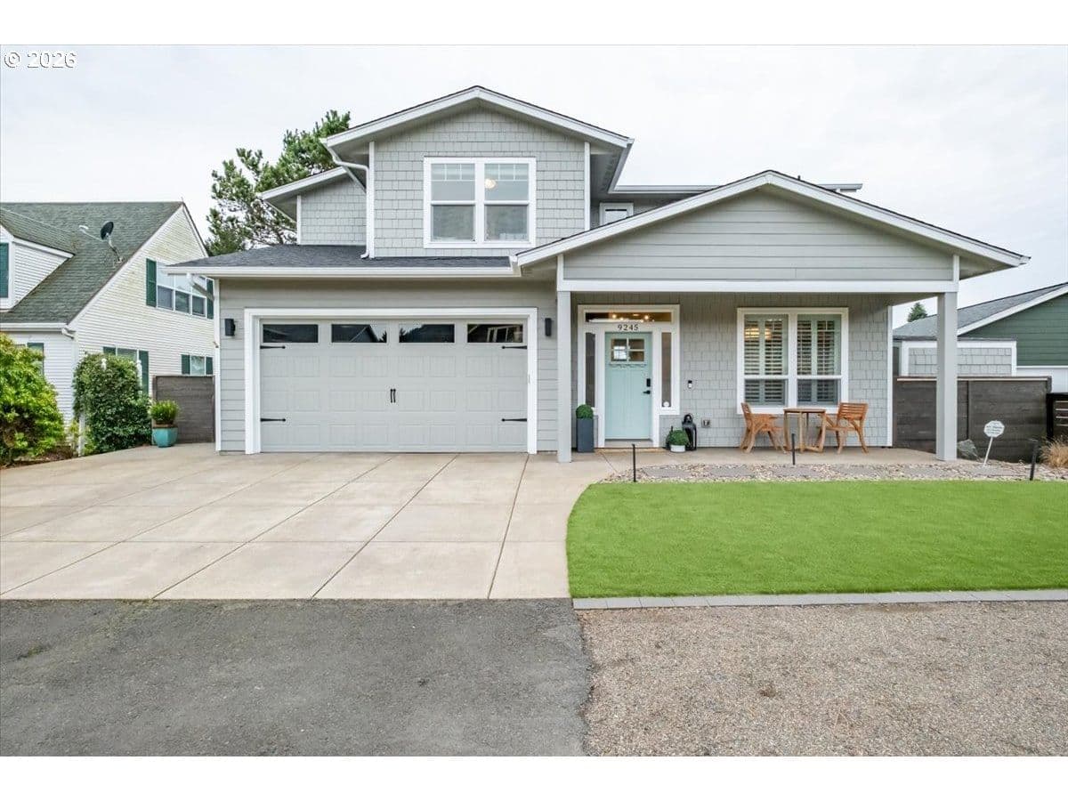 Upscale landscaping frames this beautifully maintained 2,080 sq ft coastal retreat, ideally located within an easy stroll to the beach and just minutes from Bandon Dunes Golf Resort, local dining, shopping, and Old Town Bandon. Thoughtfully designed and filled with natural light, the home offers 4 bedrooms, 2 bathrooms, and a versatile bonus room perfect for a home office, library, or creative studio. The attached two-car garage includes a built-in workbench and convenient hanging bike storage. The fully fenced backyard is designed for both relaxation and entertaining, featuring a multi-level deck and patio, fire pit, built-in Lion 32" BBQ, sink with dedicated hot water heater, and a concrete bar beneath a pergola. Inside, the open-concept living area features vaulted ceilings, an electric fireplace, and plantation shutters, flowing seamlessly into the kitchen and dining area. The gourmet kitchen is anchored by an oversized granite island with seating and appointed with GE Monogram stainless steel appliances, an induction range, and granite countertops with matching backsplash. A sliding glass door enhances indoor-outdoor flow, while the nearby laundry room with Electrolux washer and dryer offers additional storage. The primary suite is a private retreat with a newly remodeled walk-in closet and direct access to a secluded deck and patio. The en-suite bathroom features a large walk-in shower, deep soaking tub, and dual vanities. Meticulously cared for and thoughtfully designed, this coastal home is move-in ready.