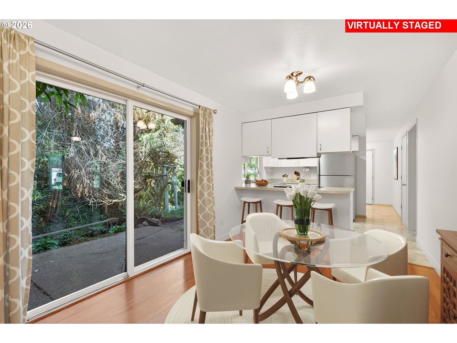 Set on a 0.27-acre lot where Cozine Creek traces the back of the property, this home offers a rare combination of privacy, space, and in-town convenience. The backyard is framed by mature trees with a park-like patio and generous side yard — a setting that feels worlds away from the neighbors. Inside, the major decisions are already behind you: new windows, ductless heat pump, and a full plumbing re-pipe (2026) are complemented by a newer roof, exterior paint (2018), and updated washer/dryer (2019). The kitchen has been refreshed with updated countertops, sink, and appliances and is genuinely ready to use. A light-filled finished garage with multiple windows opens up possibilities as a studio, workshop, or hobby space. The primary suite looks out over the surrounding greenery, keeping the home connected to its natural setting at every turn. With key updates in place, a fun circular driveway, and a beautiful backdrop, this one is ready to be enjoyed from day one.