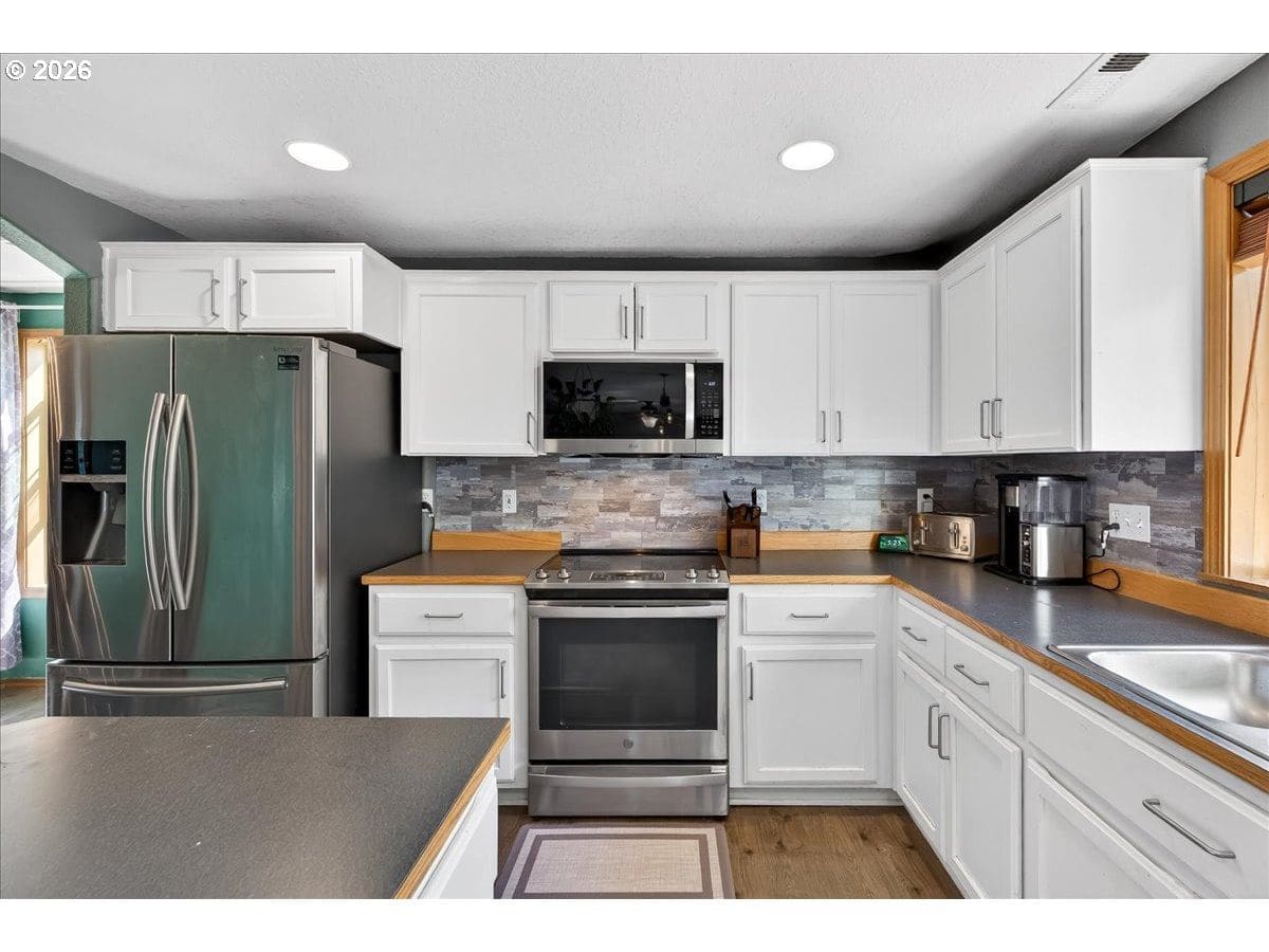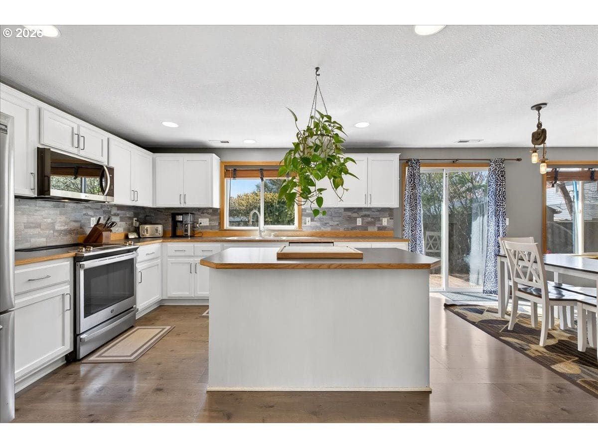 Light, bright, and beautifully maintained—this inviting 4-bedroom, 2.5-bath home offers comfort, functionality, and space to truly enjoy. Situated on a spacious lot in the community of Lafayette—nestled in the heart of Oregon wine country—this property offers the perfect blend of small-town charm and convenience, just a short drive to both Newberg and McMinnville.The thoughtfully designed kitchen serves as the heart of the home, opening seamlessly to the family room, formal dining, and living areas—perfect for hosting gatherings or relaxing with loved ones. Features include a central island, eat bar, stainless steel appliances, and a pantry for added convenience. Durable laminate flooring flows throughout the main level, enhancing both style and ease of maintenance. Upstairs, the generously sized primary suite provides a private retreat, complete with double sinks and a walk-in closet. Three additional bedrooms offer flexibility for guests, home office space, or hobbies. Step outside to a fully fenced backyard featuring a deck—ideal for outdoor dining, entertaining, or simply unwinding. A toolshed adds extra storage for all your needs. New roof just installed, offering peace of mind for years to come. This well-appointed home combines space, comfort, location, and key updates—ready for its next chapter.