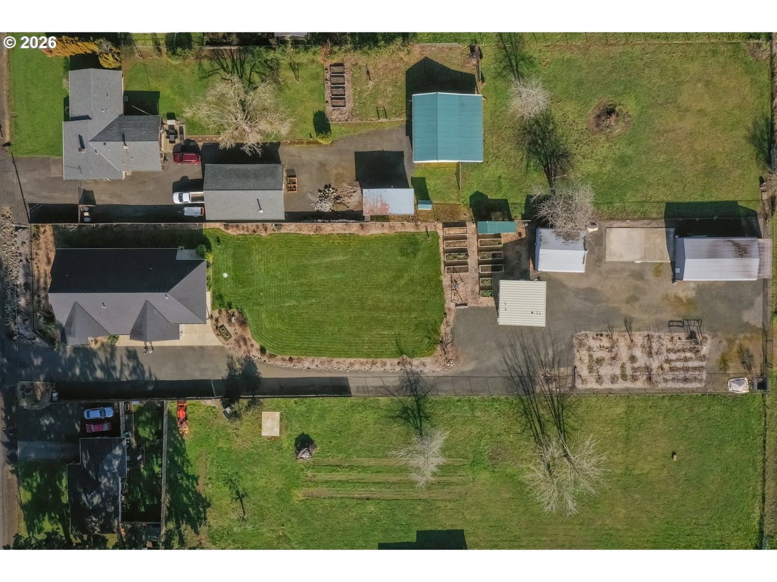 This stunning custom-built home, completed in 2014, sits proudly on a level one-acre lot just minutes from the heart of Dallas. Thoughtfully designed as a productive micro-farm, the propertyis loaded with a mix of abundant edible gardens, fruit trees, berries, flowers, and herbs. The grounds include two detached shops, a greenhouse, orchard, chicken coop, raised garden beds, and a 400 sqft ADU with vaulted ceilings. There is ample space both inside and outside for projects, toys and storage. The primary residence was built with exceptional care and quality materials. Warm wooden doors, cabinetry, and trim add character, while vaulted ceilings create a sense of space and refinement. The chef’s kitchen opens seamlessly to an expansive living area with a gas fireplace, offering effortless flow for everyday living and entertaining. The private primary suite occupies the first floor and features two walk-in closets and a spa-like shower with dual shower heads. Two additional bedrooms and a dedicated office provide flexible living and work spaces. The detached ADU offers the perfect guest studio, multigenerational living option, or income-producing rental. Lovingly maintained and thoughtfully cultivated, this one-of-a-kind property is a special combination of self-sufficient living with close-in convenience.