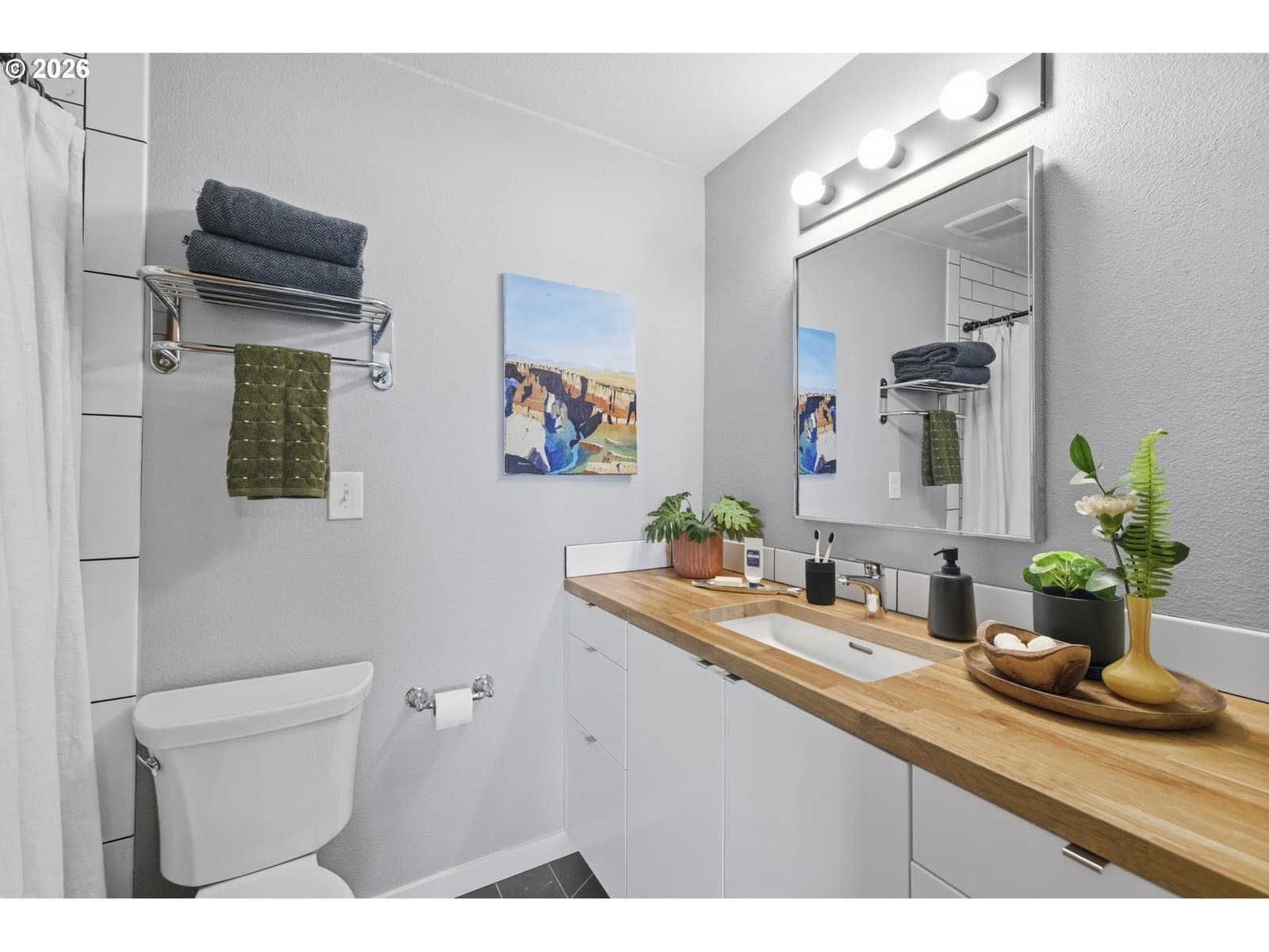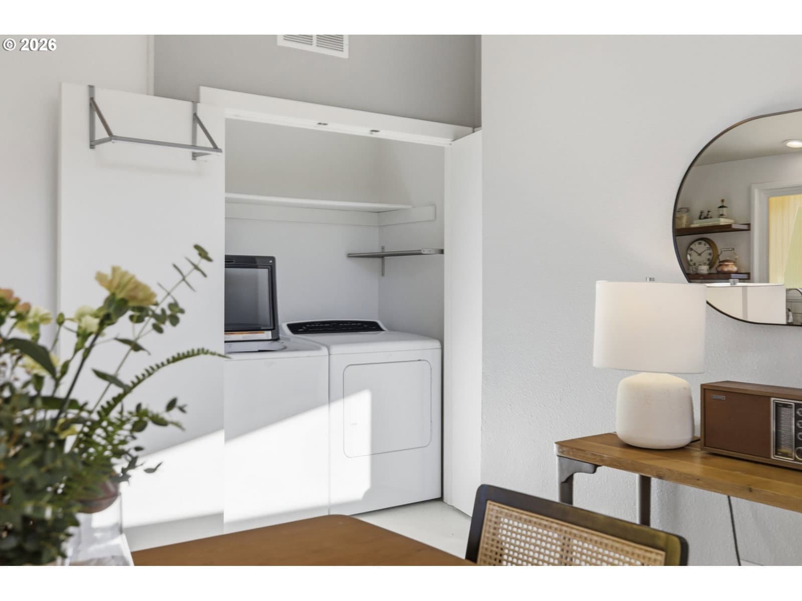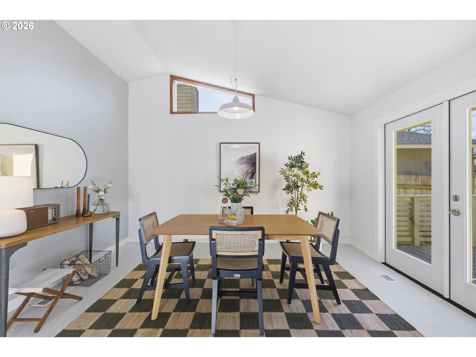 This thoughtfully updated 1979 ranch blends classic one-level living with standout curb appeal and modern upgrades. The home welcomes you with a charming front deck, beautifully planted yard, and a unique vestibule-style entry that sets it apart. Inside, the spacious living room features vaulted ceilings and a wood-burning fireplace, creating a warm and inviting space filled with natural light. The home offers 3 bedrooms and 2 bathrooms, including an ensuite primary, all on a highly accessible single level—ideal for easy, everyday living. The beautifully updated kitchen opens seamlessly to the light and bright dining area, where French doors lead to the back deck, creating a natural flow for entertaining or enjoying the private backyard. Fun architectural windows throughout bring in great natural light and add character you don’t often find in a ranch-style home. Major updates include vinyl windows, a new roof (2023), new HVAC system (2024), and fresh exterior paint (2023), providing both comfort and peace of mind. Additional features include a high crawlspace, two-car garage, and multiple outdoor living spaces with both front and back decks. Located just blocks from Dickinson Park and nearby walking trails, fresh air becomes part of the daily routine. With excellent proximity to Washington Square, Multnomah Village, Gabriel Park, and easy access to I-5, this home offers the perfect balance of quiet neighborhood living, everyday convenience, and commuter access. [Home Energy Score = 4. HES Report at https://rpt.greenbuildingregistry.com/hes/OR10105859]