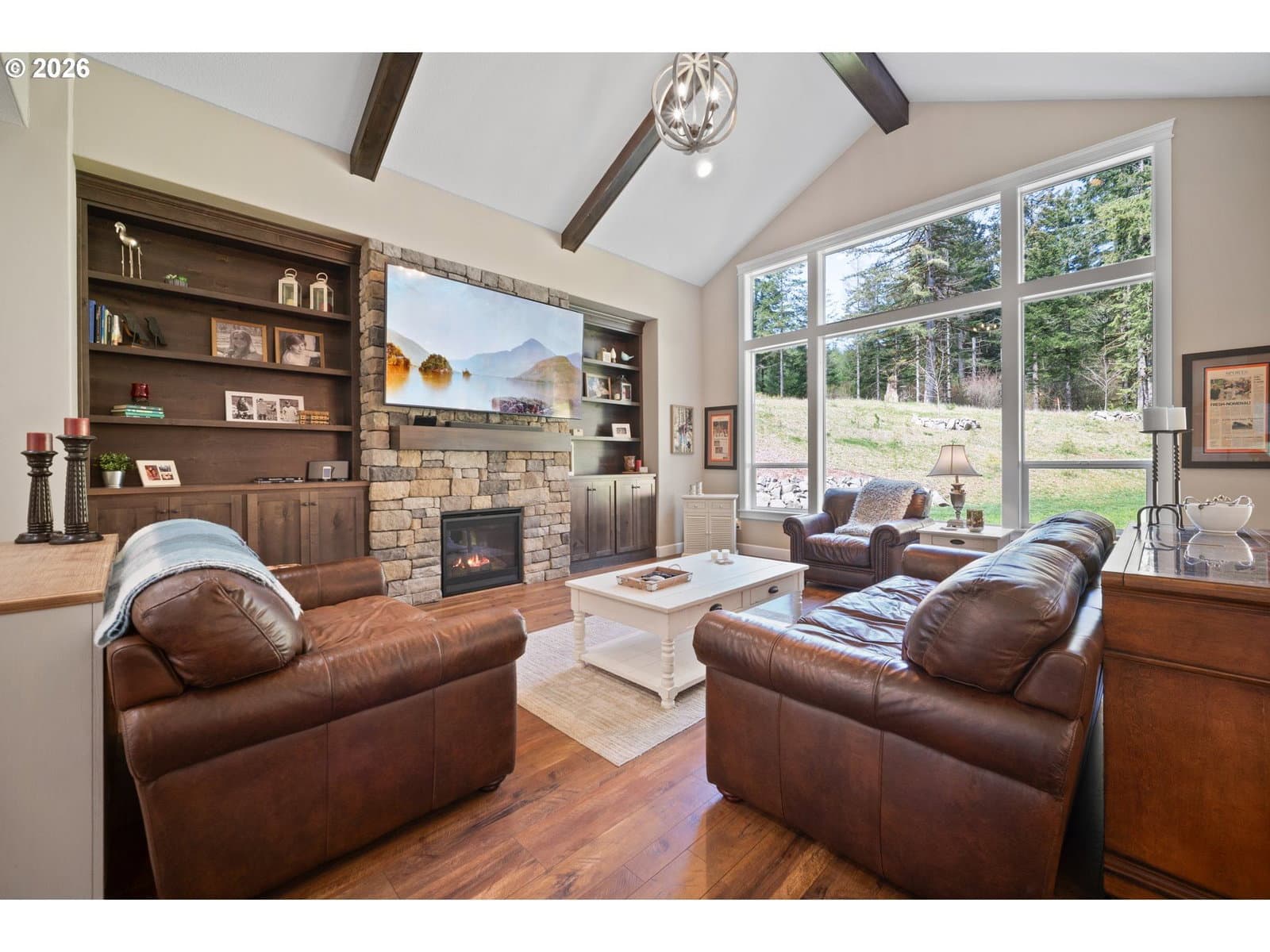 Set on 3.18 acres in a quiet, gated community, this 3,172 sq ft home offers the kind of space and privacy that’s getting harder to find, paired with a layout that just makes sense. With single-level living at its core, the main floor includes a spacious primary suite, dedicated office with custom built-ins, and open living areas designed for everyday comfort. Vaulted ceilings and large windows bring in natural light and frame the surrounding wooded setting, while the stone fireplace anchors the main living space. The kitchen is set up for both daily use and hosting, with a large island, double ovens, and plenty of storage. Outside, the property really opens up; over three acres to enjoy, with room to spread out and unwind. The shop adds serious flexibility for projects, storage, or hobbies, with potential for future ADU conversion depending on your needs. If you’re looking for privacy, usable acreage, and a home that lives comfortably day-to-day with room to grow, this one delivers.