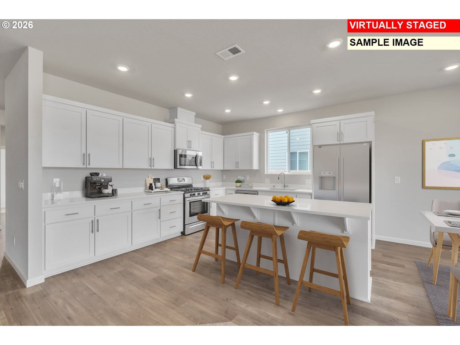 This new construction home is part of Brandis Estates, a community surrounded by greenspace with walking trails and close to local parks and shopping. The Elmhurst plan is a single-level design featuring an open great room that connects the kitchen and dining area, extending outdoors to a patio with a fully fenced and landscaped backyard. All three bedrooms surround the living space, including a well-appointed primary suite with a private bathroom and walk-in closet. Set on a cul-de-sac homesite, this home also offers a three-car garage for added storage and convenience. Interior highlights include quartz countertops, Shaker-style cabinets, and a gas fireplace. Other upgraded premium features include a separate tub and shower in the primary bath and two-tone interior paint. This home also includes central air conditioning, a refrigerator, washer and dryer, and blinds—all at no extra cost! Located on homesite 14, this home is currently being used as the Welcome Home Center, so the garage has not yet been converted. Photos are of a similar home, features and finishes will vary. Flex credit/closing cost incentive available when financing with preferred lender! Use towards rate buydown and closing costs.