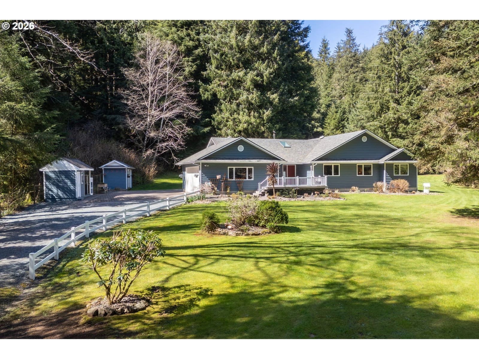 THE ULTIMATE ADVENTURE ESTATE: 8+ ACRES, 30 X 52 ENCLOSED SHOP AND PRIVATE TRAILS. Make this your Family Basecamp for Amazing Adventures. House is centered in a private park-like setting with gated entry and fully-fenced front and back acres. New Roof in 2024, large front deck and expanded back deck both face a recreational paradise with Gazebo, Working Waterwheel, Picnic Tables, Firepit, Horseshoes, Lawn Sports and unlimited Outdoor Fun. Walk the trail or take your ATV up to the Waterfall and acres of Personal Camping Grounds. The 1,500 sq ft, 3-Bay Shop can handle all your big and tall toys, with high ceilings, concrete floors and metal roof. Shop is all-weather with heat and 220 power. The home is a canvas of classic design and exquisite care waiting for your special touches. Spacious one-story with 3 large bedrooms, plus an enviable office/den with solid oak built-ins and floors. Kitchen has room for a chef to spread out and a breakfast bar where everyone gathers. For the Green Thumbs, there is a heated greenhouse and fenced garden. Plenty of RV parking with Four 30 amp hookup sites. Even a Heated Dog Kennel! All this is tucked away in a quiet, private setting you may never want to leave.... but if you do, you are minutes from the amenities of Nehalem, Garibaldi, Tillamook and the Oregon Coast. See it to believe it!