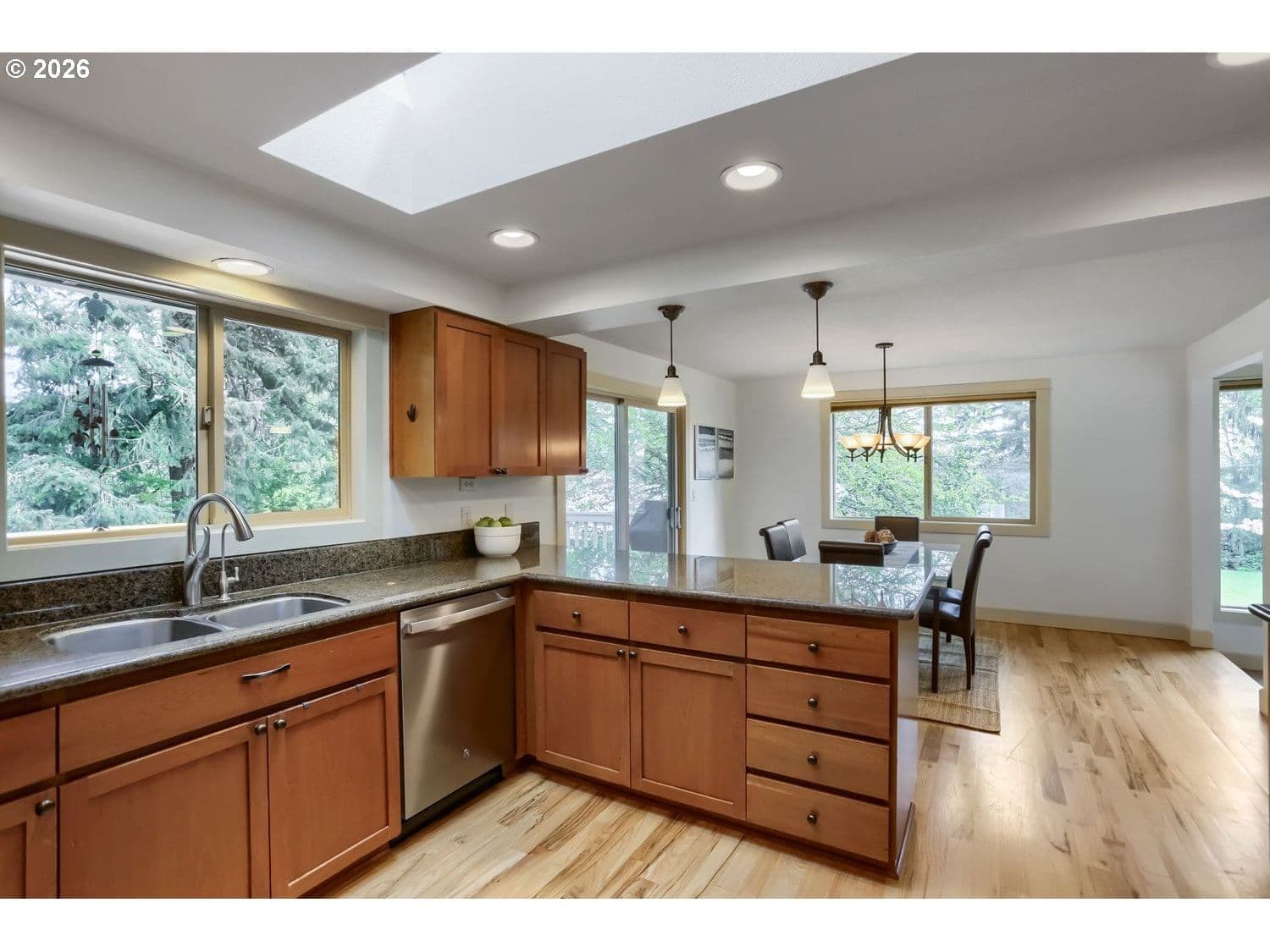 4days on marketLarge windows open to the serenity of this private .43 acre lot where the fawns wander through and bird songs welcome the new day. The home has been beautifully updated and maintained, and major systems were replaced in the last 5 years: electrical panel, furnace, AC, water heater, water filtration in kitchen, deck, fridge, dishwasher, new 4" Cured in place "sewer" pipe liner with a 45-year warranty, and a 22kw Whole Home Generac generator plumbed in for peace of mind. Two living spaces offer family flexibility and privacy. Lower level: large game room with bar, family room with wood burning fireplace, dedicated laundry room, bedroom and full bath. Upper level: Primary with walk- in closet, ensuite bathroom with soaking tub and a view to this peaceful back yard, 2 additional bedrooms and full bath, family room with wodd burning fireplace, kitchen, and dining area. RV or boat parking, plus ample space for more vehicles. The neighborhood offers multiple parks, swimming pools (membership required), a nearby public boat launch on the Willamette River is located close to major expressways, downtown PDX, and shopping. If you are looking for serenity and convenience, this is it!